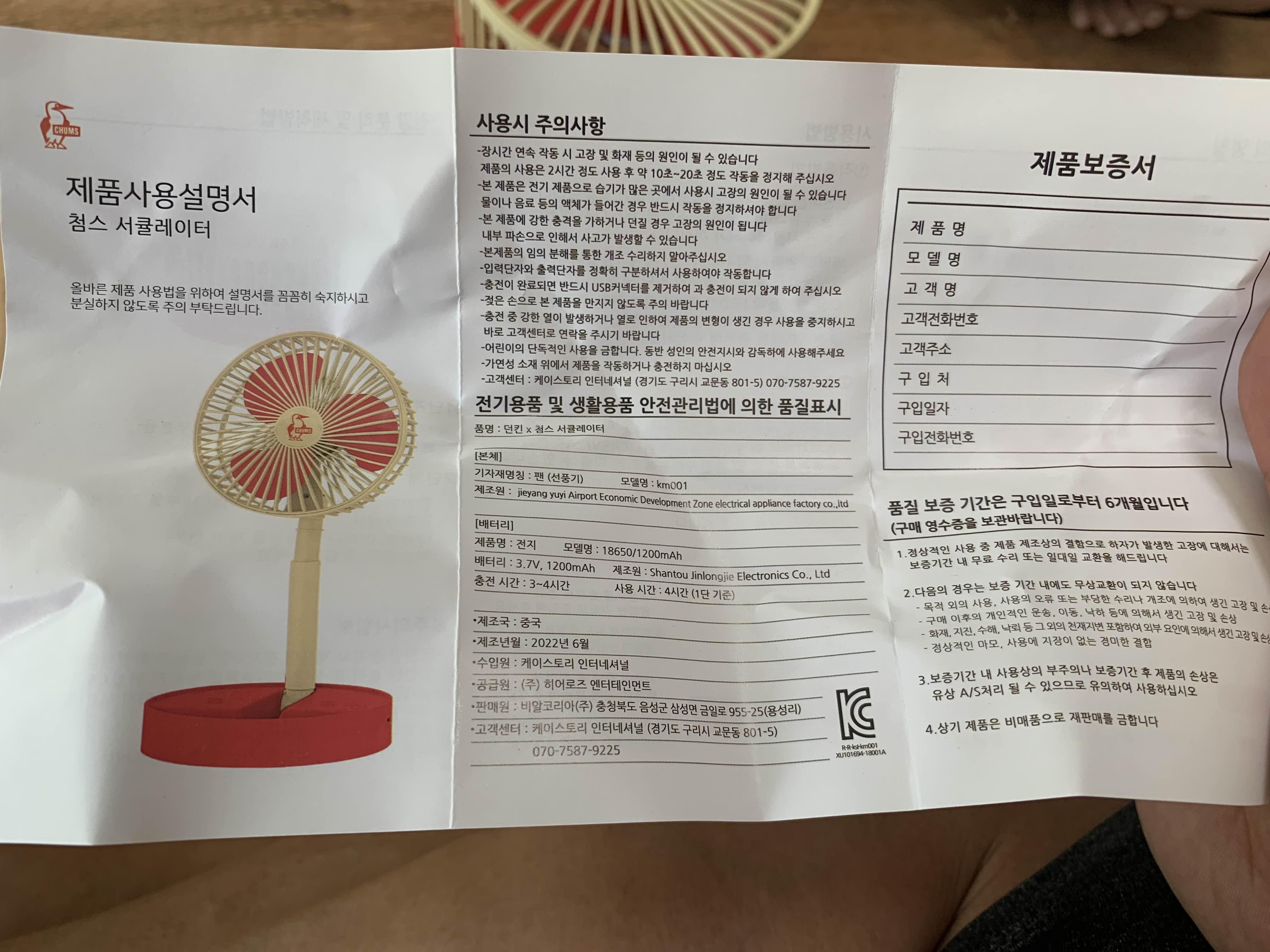 무더운 여름 휴대용 선풍기로 나름 좋은 제품이네요. 아내가 사 왔을 때 웃었는데.... 사용해보니 나름 괜찮은 제품!!! 휴대하기 좋고, 무게 가볍고 스탠딩 가능하니~^^