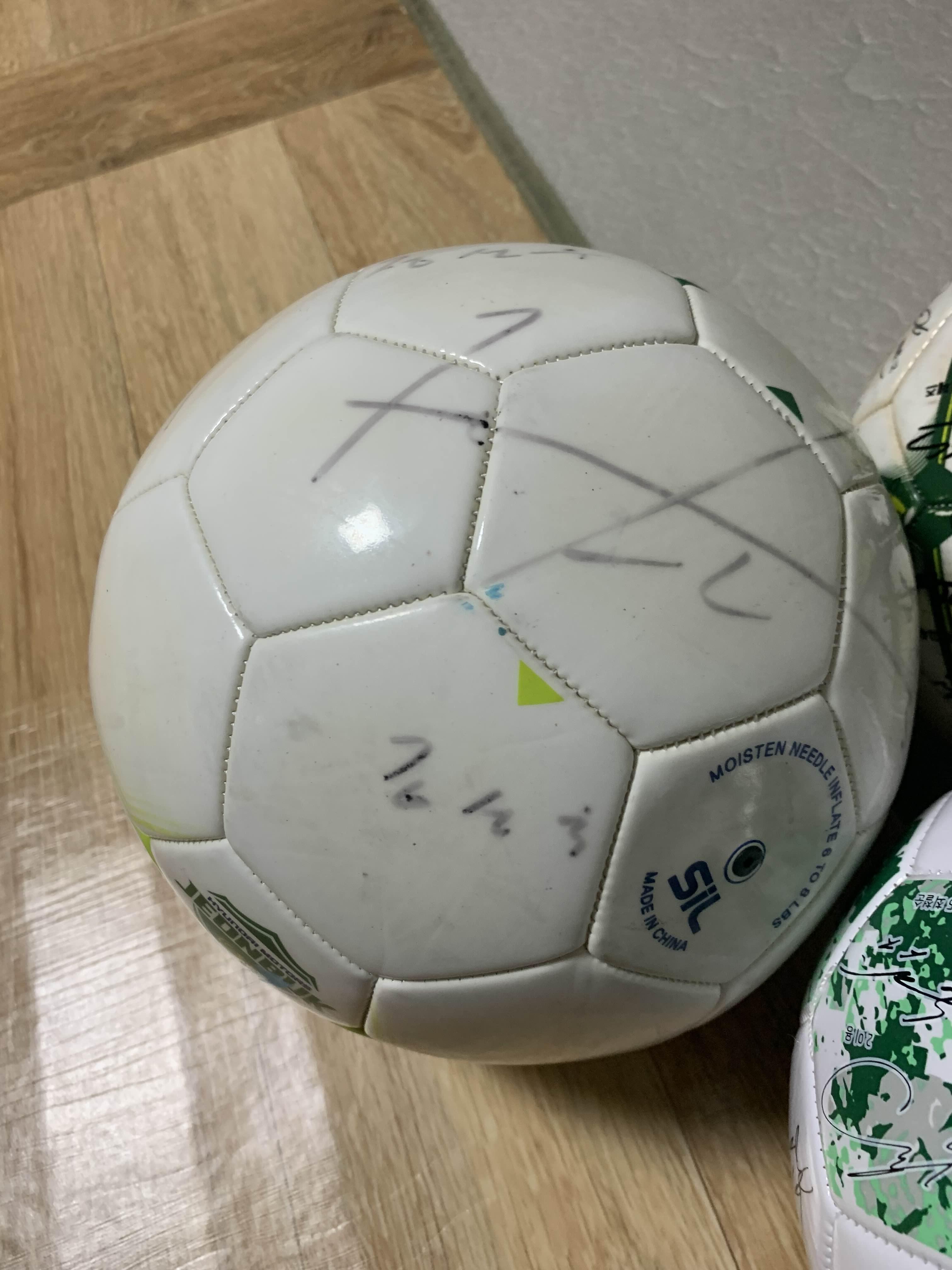 아이가 축구를 좋아하니.... 집에는 다양한 공이 많다!!! ㅎㅎ 사인볼은 그린스쿨 다니며 가입 상품으로 받은 공도 있고, 축구장에서 선수들이 차준 공을 잡은 경우도 3번? 정도 있고.... 지금은 전북 현대 출정식이 없지만, 예전 출정식에서 이벤트에 참여하여 김신욱 선수에게 받은 사인볼도!!ㅎㅎ