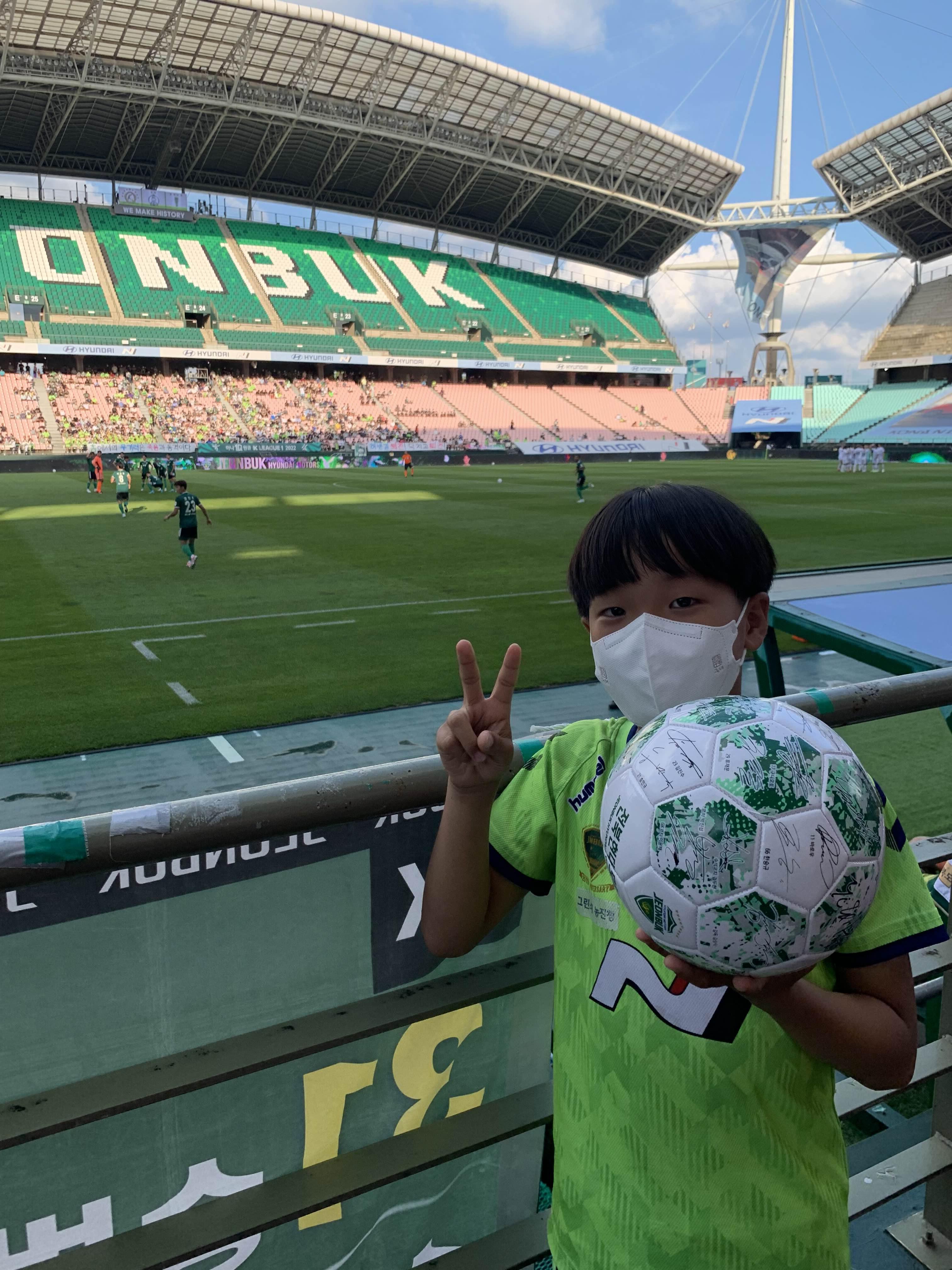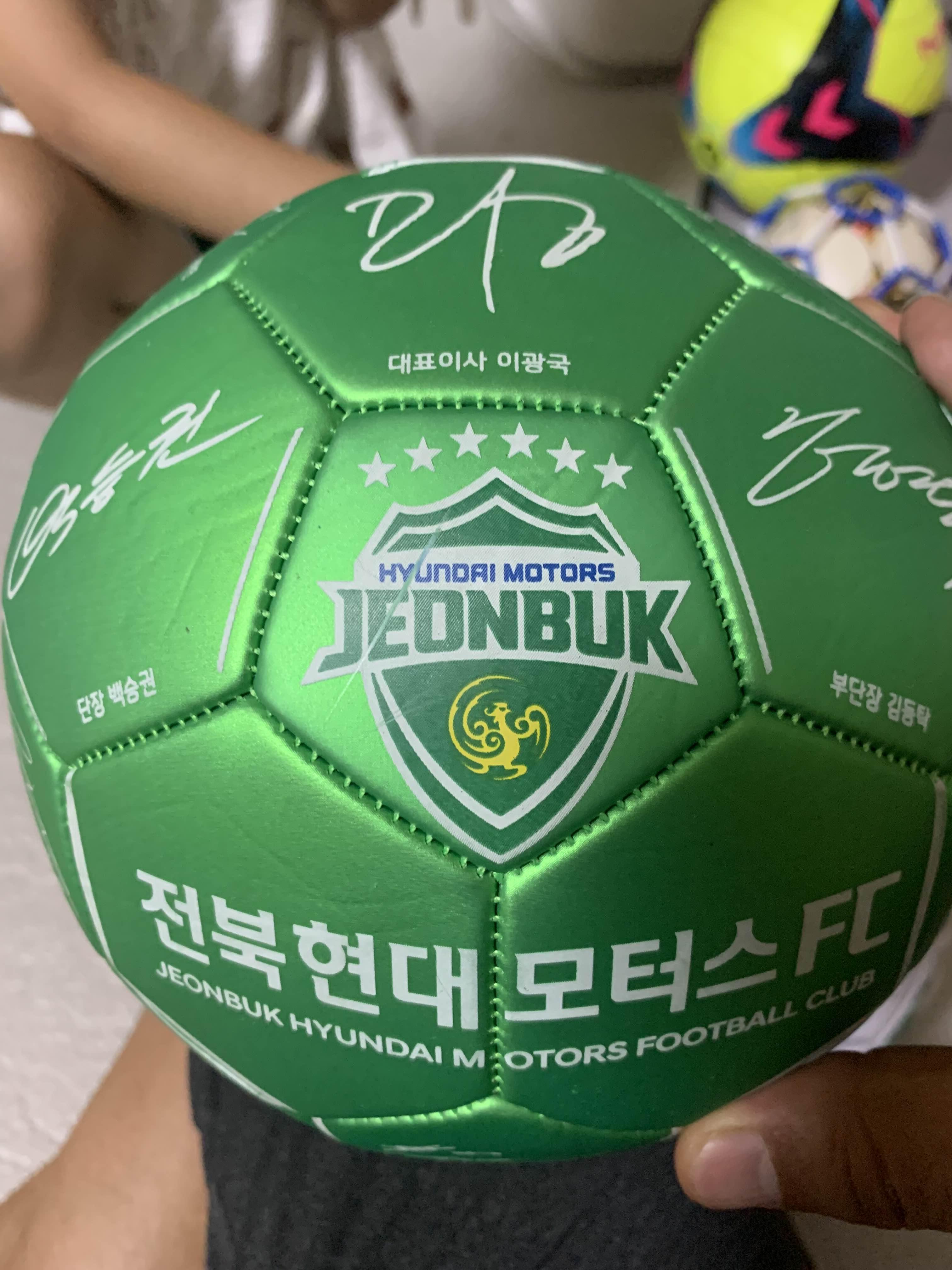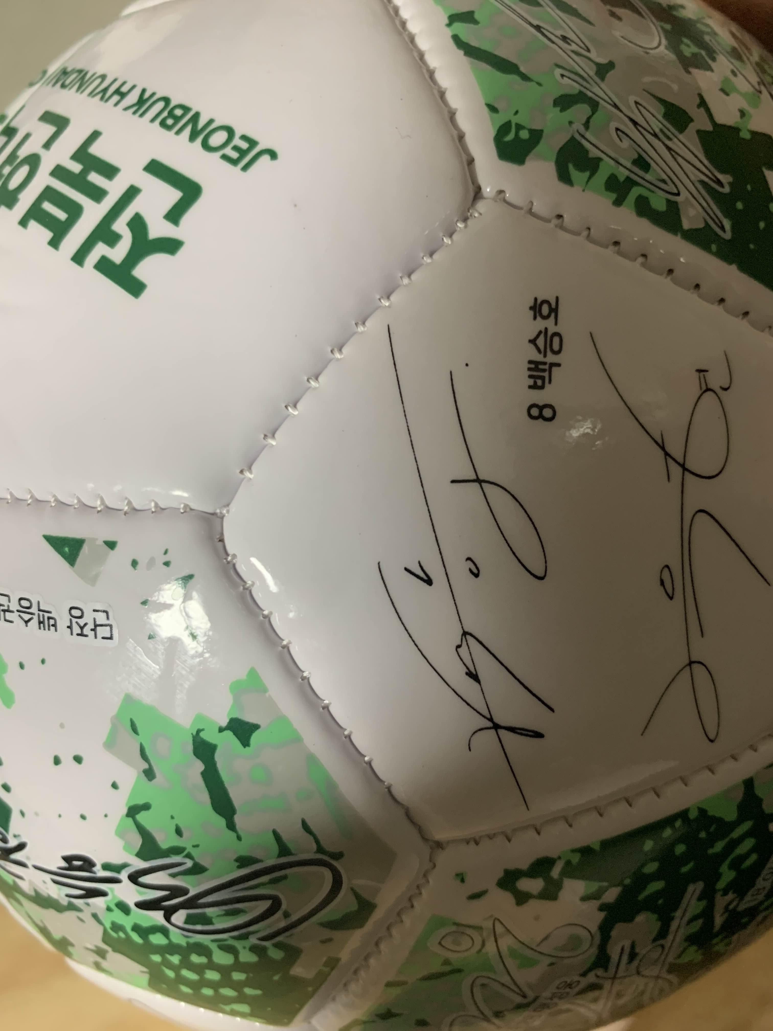 전주 월드컵경기장에 전북 현대 홈경기가 있으면 자주 방문합니다. 아이가 그린스쿨 축구교실을 다니고부터.... 2017년도부터 주~~ 다니기 시작했네요. 이제 어느덧 6년 차 축구장을 다녔네요.ㅎㅎ 축구장을 다니며 사인볼을 받았는데.... 오늘은 좀 특별하게 사인볼을 받아서 기분이 좋은 날이네요.ㅎㅎ
