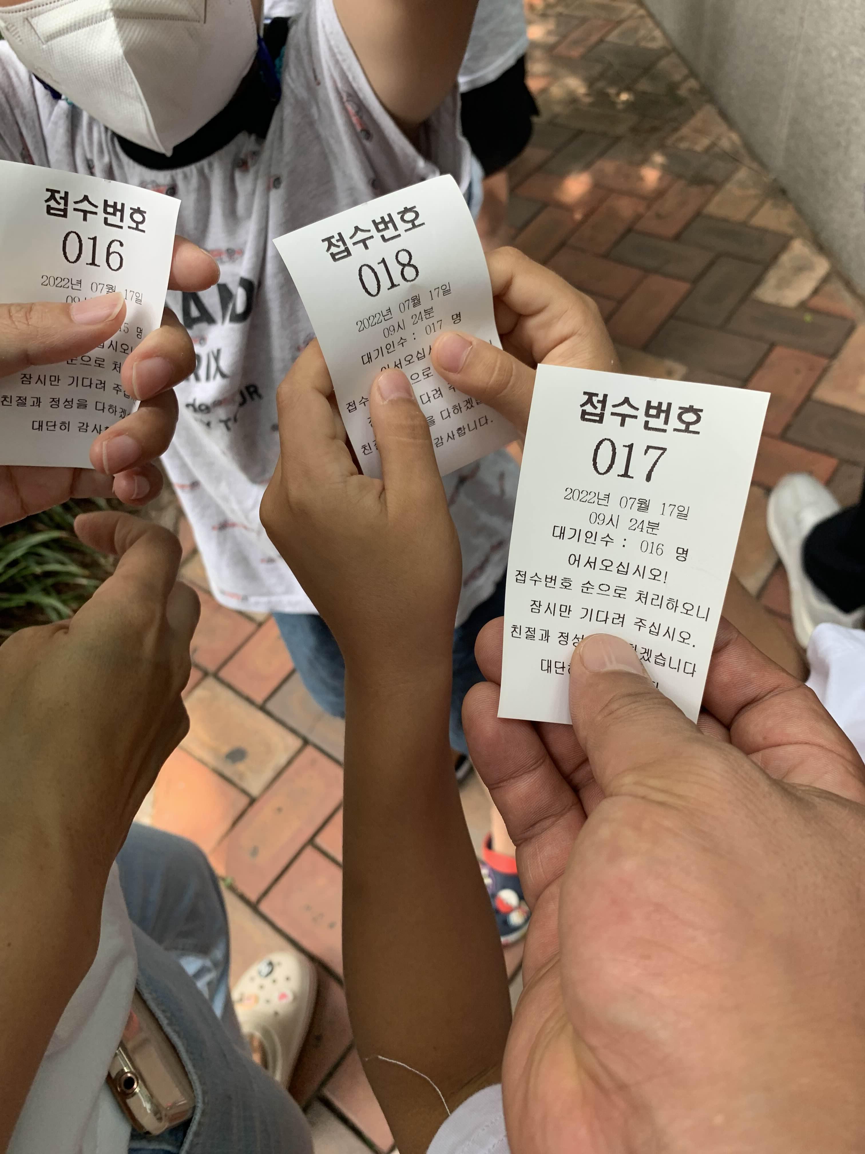 대기줄이 너무 길어서.... 대기 번호표를 못 받겠다는 생각이 들더군요. 도착하고 얼마 안 되어 번호표를 나누어 주더군요. 번호표 마지막 번호에 가까워 나에게도 번호표 지급!ㅎㅎ