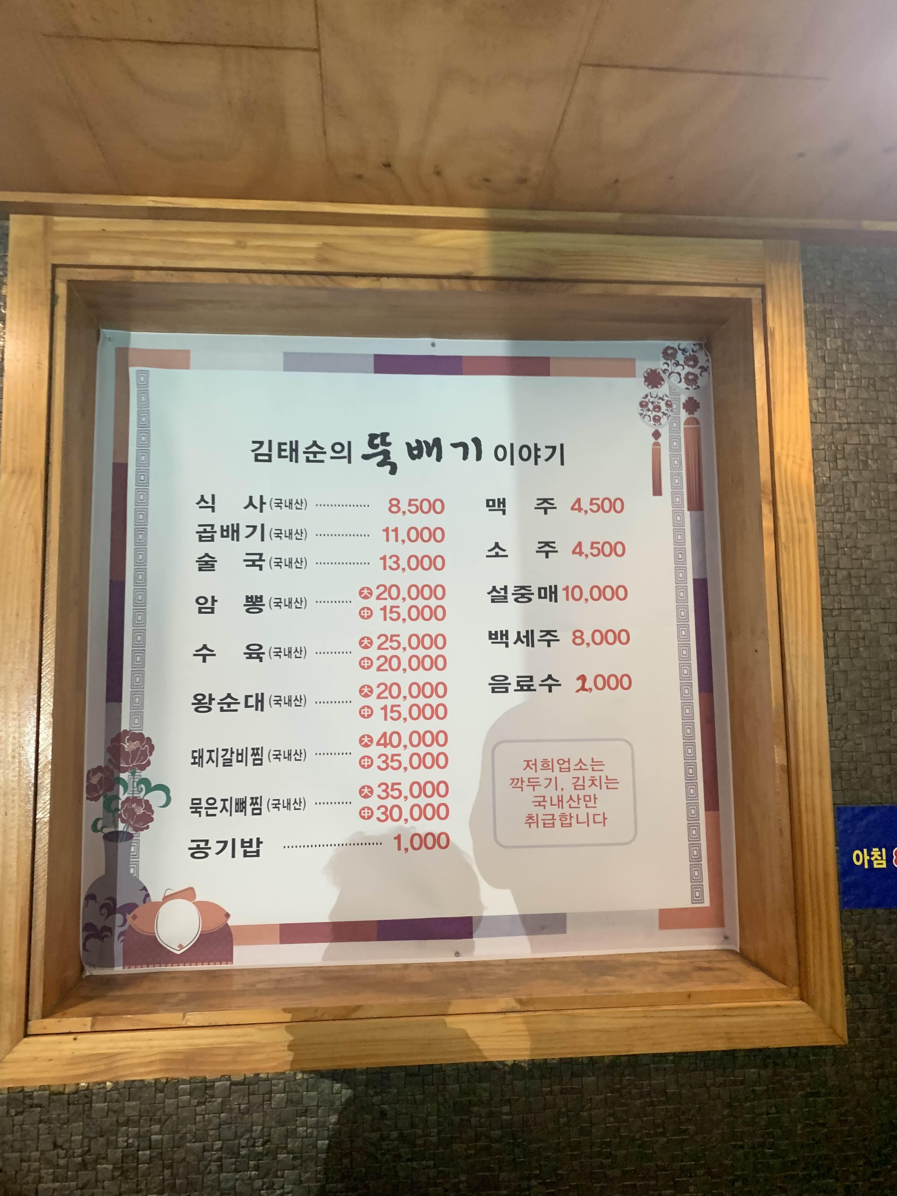 식당에 들어가며.. 다른 테이블은 쟁반 위 뼈다귀 해장국을 모두 드시더군요. 테이블에 앉으며, 서빙하시는 분께서 몇 명인지 물어보시는데 "2명이요"....... 2개요?라는 대답으로 주문이 들어가더군요.ㅎㅎ 주문은 다름 아닌 메뉴판의 식사 8,500원 뼈해장국이 바로 주문이 들어가더군요.