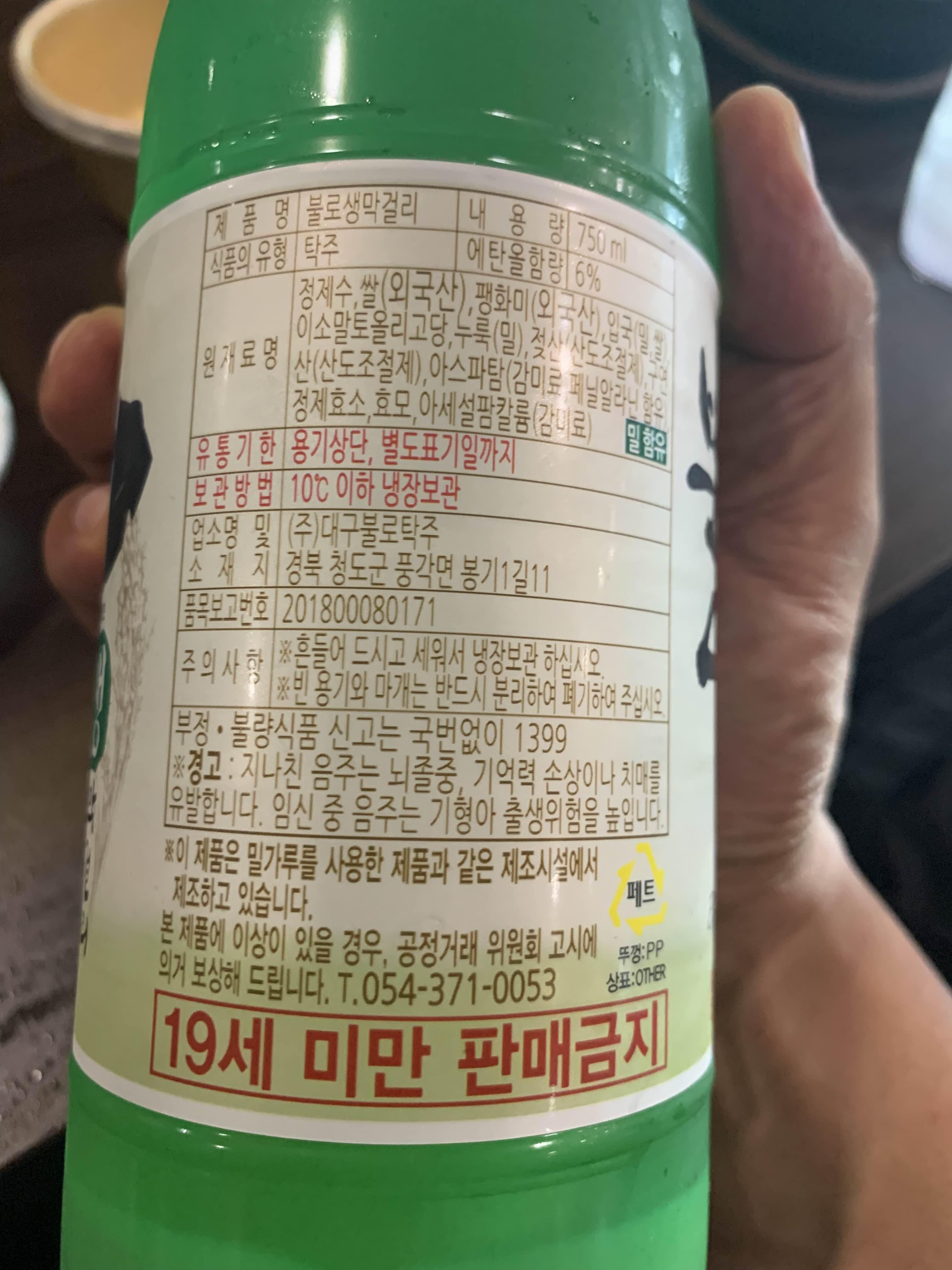 대구에서 많은 분들이 드시는 불로 생막걸리!!! 대구 막걸리라고도 불리기도 하지만!!! 주조장은 경북 청도군^^ 전통적인 막걸리의 둔탁한 맛보다는 탄산음료 같은 청량함이 강한 막걸리입니다.