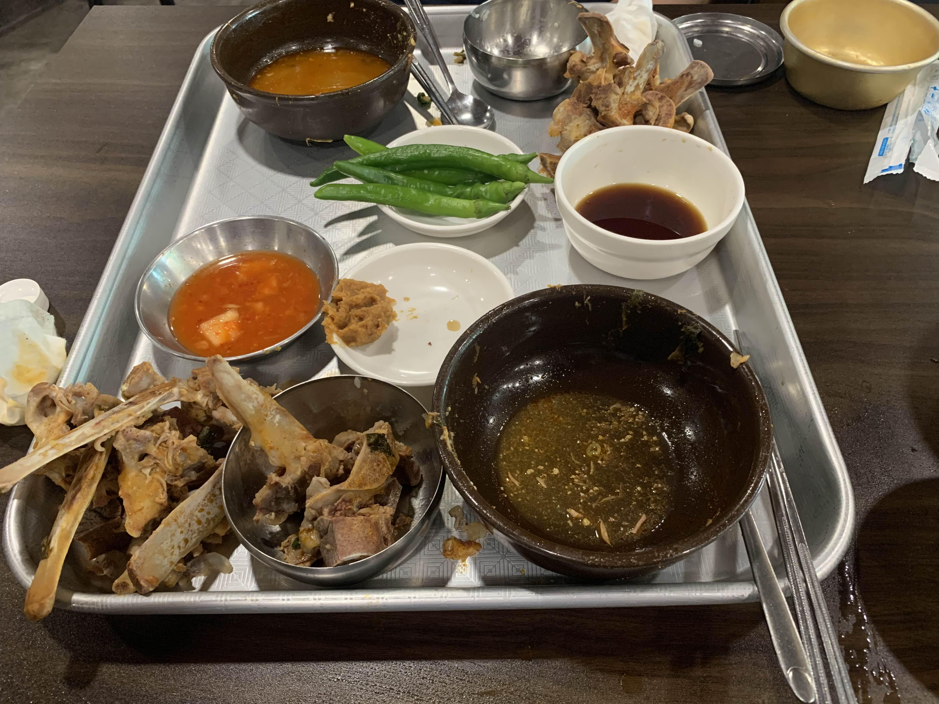 오랜만에 먹어본 뼈해장국!!! 식당 메뉴판에는 "식사"라는 메뉴!! 어느 것 하나 나무랄 때 없는 식당이었네요. 밑반찬이면 밑반찬(특히 간장 양파), 뼈해장국의 국물/살코기 그리고 가격까지! 많은 손님이 찾는 이유가 있나 봅니다.