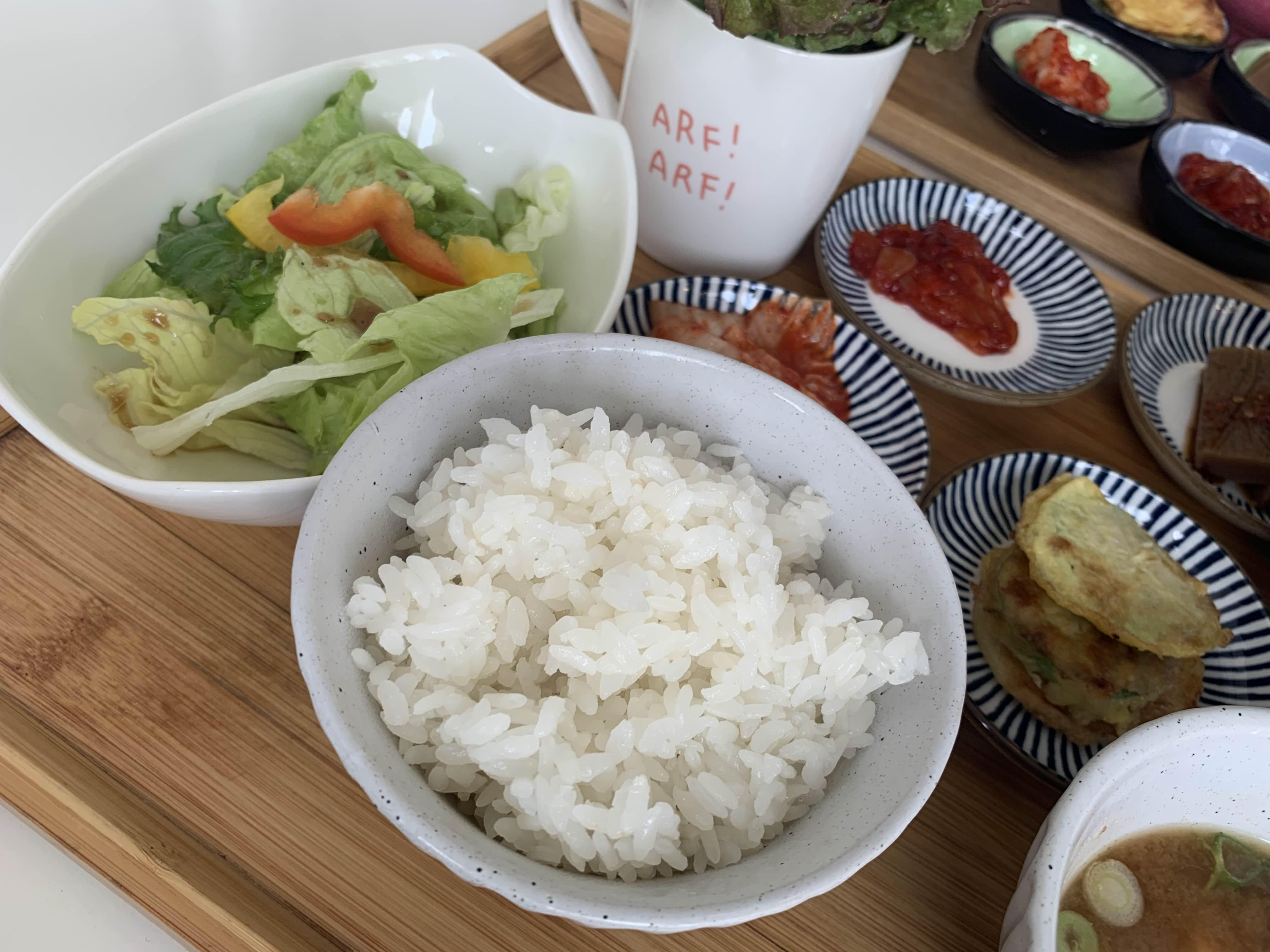 그리고 국으로 된장찌개, 상추와 샐러드가 나오더군요. 고기양에 비해서 밥이 부족해 보이더군요. 여성들이 많이 방문하는 식당이라... 밥양을 적게 담으신 거 같더군요. 메뉴판에 "밥이 부족하시면 편하게 말씀해주세요."라는 문구가 보여... 편하게 밥을 더 달라고 이야기하니... 바로 가져다주시더군요.^^ 고기와 쌈채소가 있으니 쌈을 싸서 먹어야겠죠?