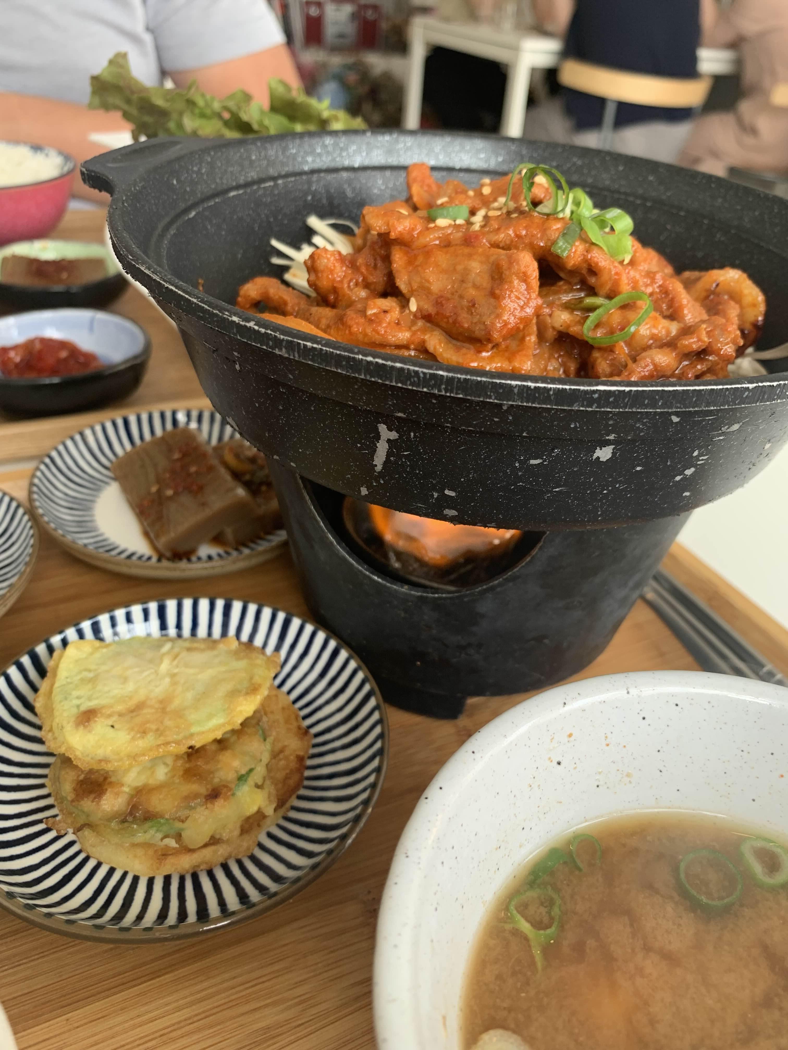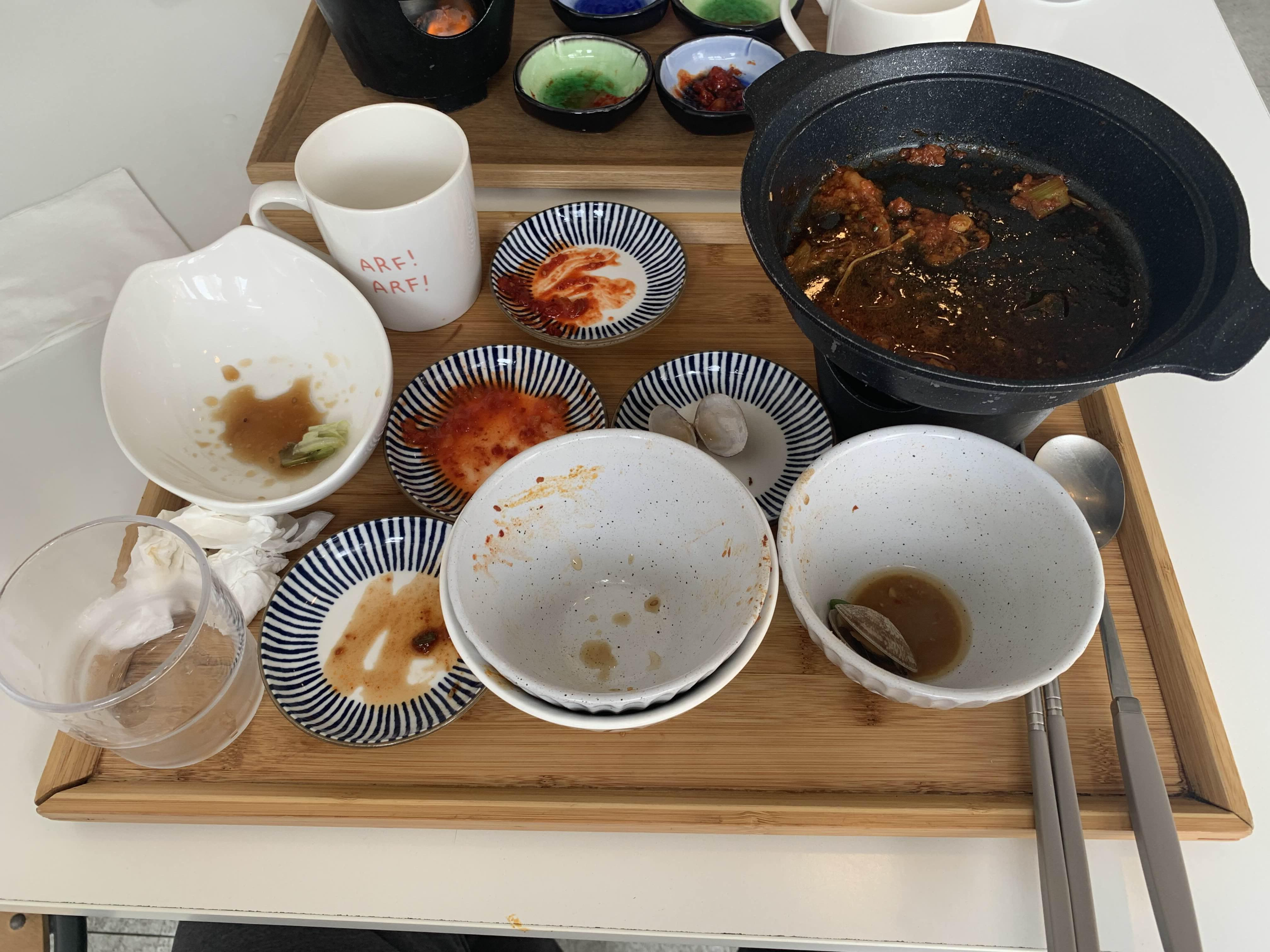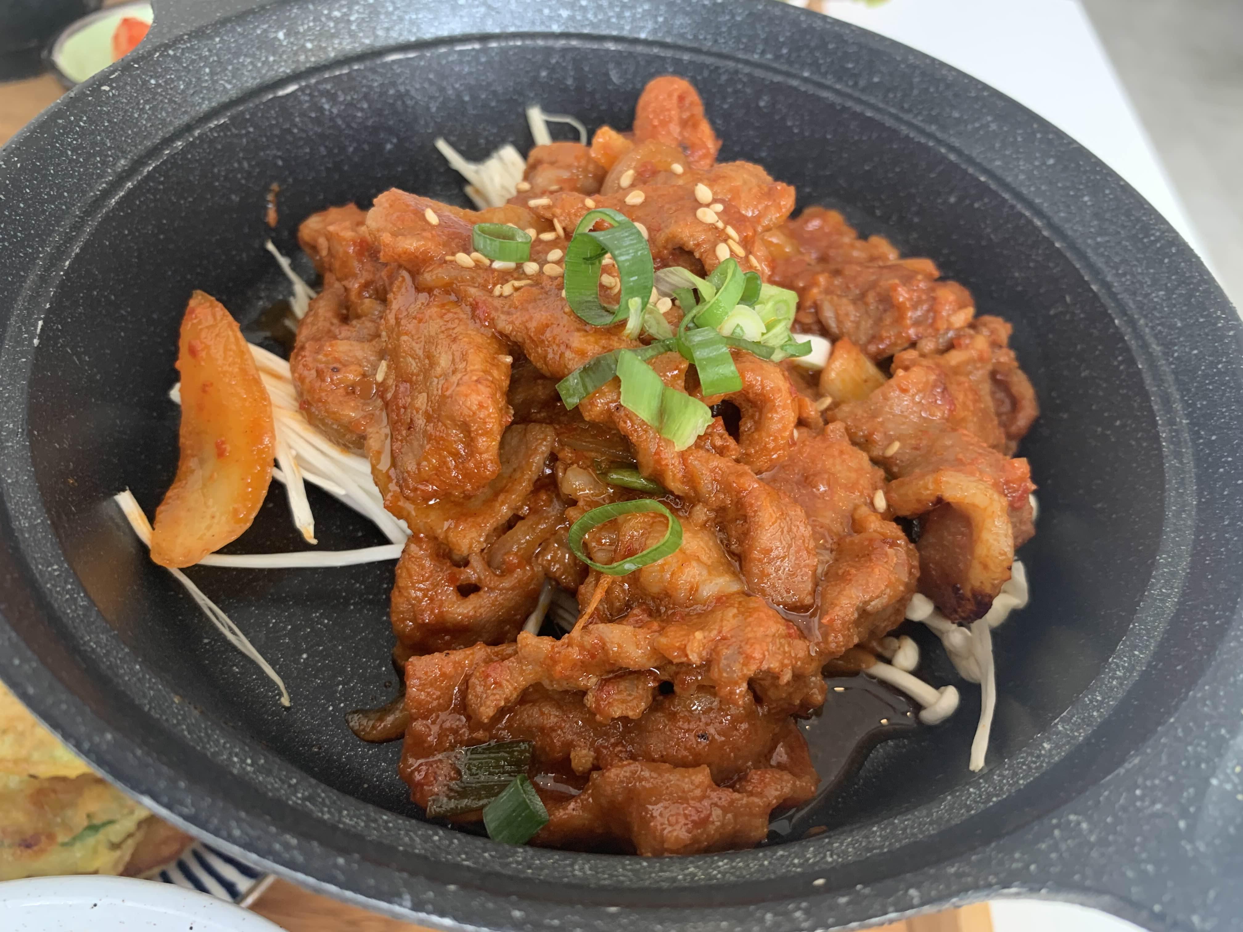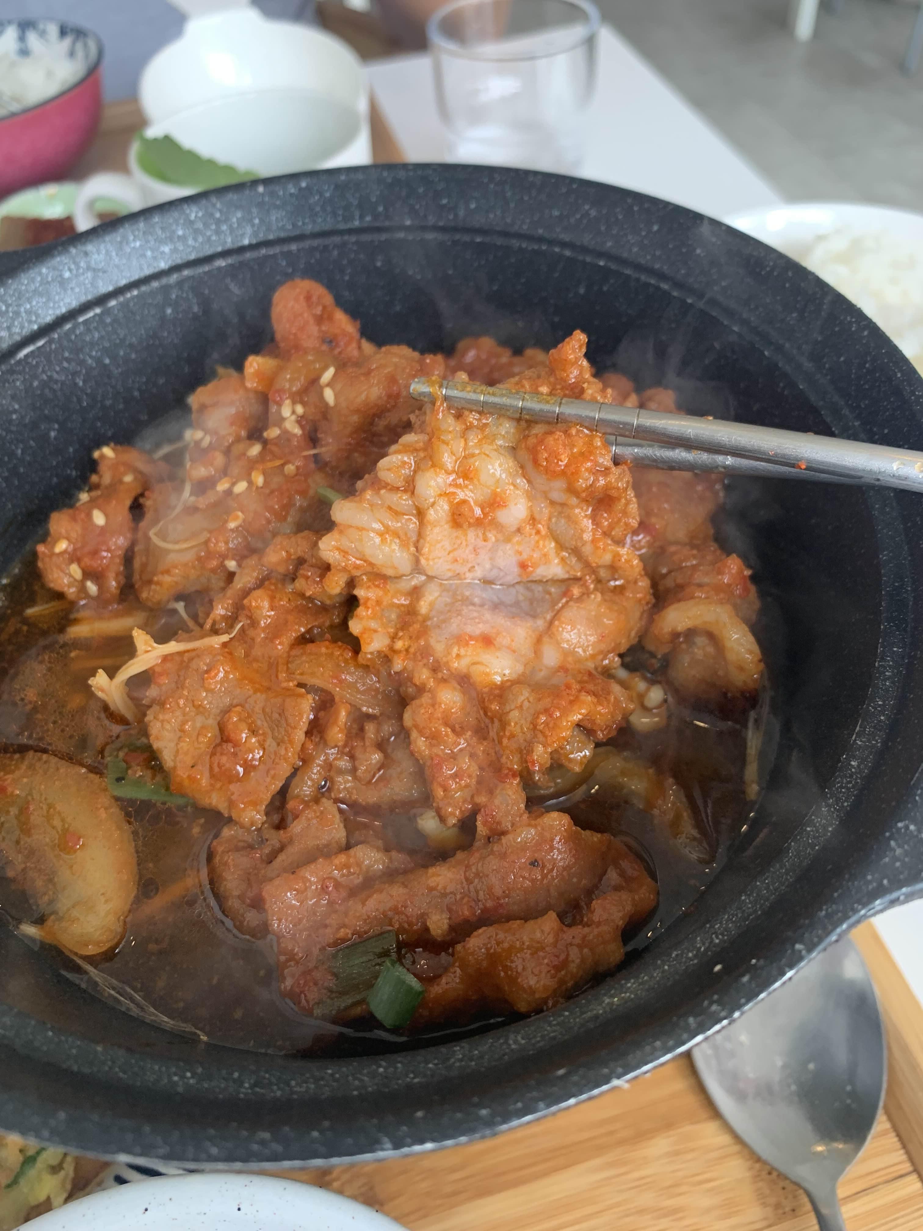 어느 순간 하나의 공깃밥이 순삭 해버렸습니다. 고기가 반절도 더 남았는데... 음식이 처음 나올 때, 고기양이 그리 많다고 생각 안 했는데... 먹다 보니 고기 양이 꽤 많더군요.(밥 양이 적어서 고기 양도 적다고 생각이 들었나 봅니다.)