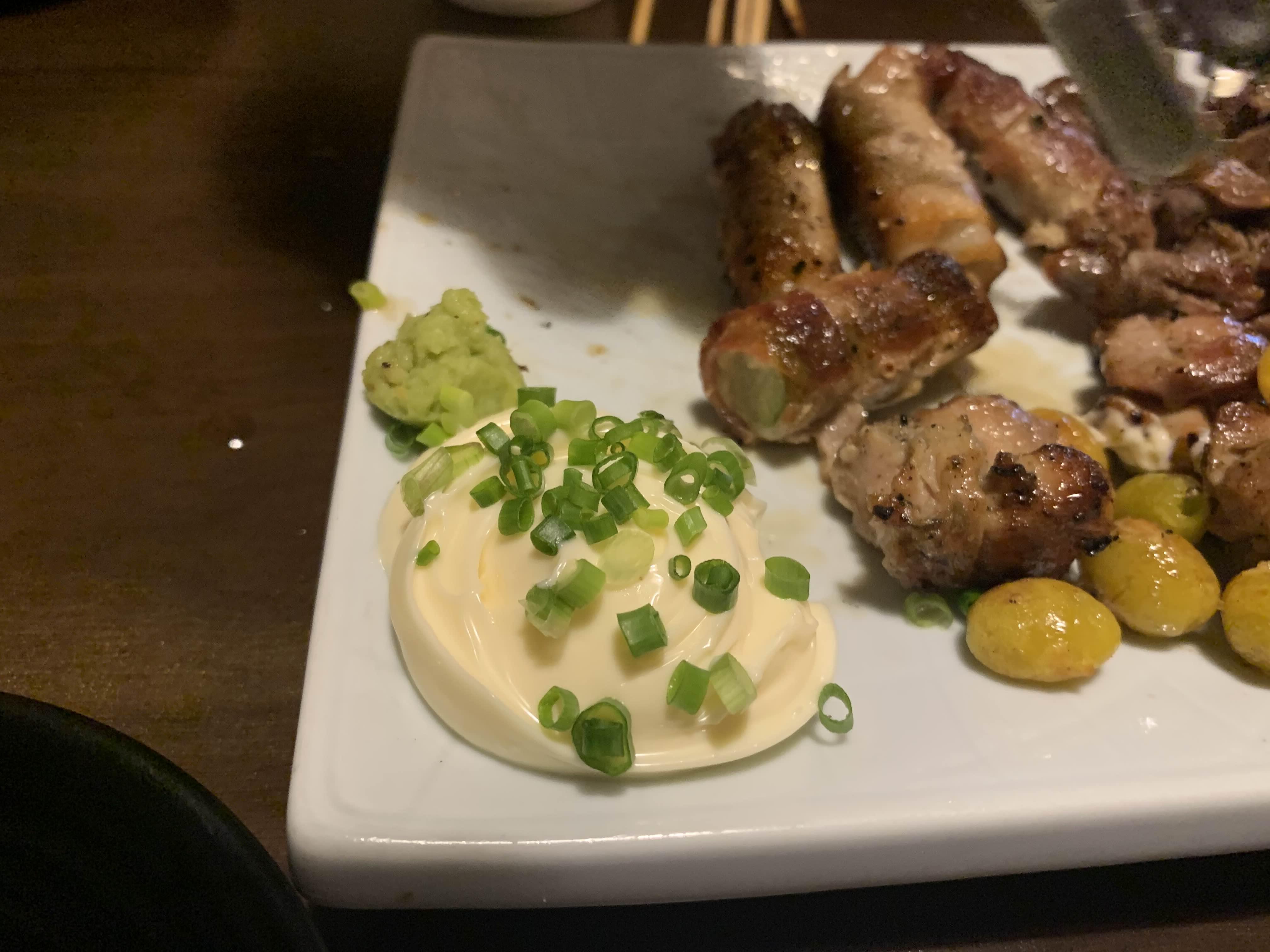 기다리고 기다리던 꼬치구이가 나왔습니다. 꼬치 하나하나 맛보는데.... 꼬치 구 느는 8가지 세트메뉴로 종류는 닭다리살, 아스파라 삼겹, 닭 목살, 닭껍질, 새우, 모래집, 염통, 은행이 나온다고 하는데.... 가장 맛나게 먹었던 꼬치는 염통이나 모래집이 아닌.... 중앙에 있는 새우!!! 새우살이 탱글탱글하니 식감이 상당이 좋더군요.