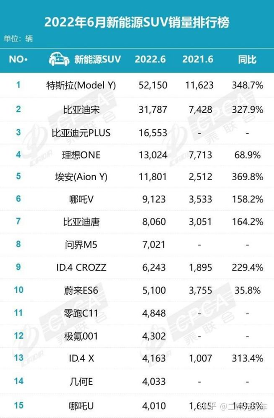 중국여객운송협회(China Passenger Transport Association)가 발표한 2022년 6월 신에너지 SUV 판매 목록에 따르면 Tesla Model Y는 52,150대, Ideal ONE은 13,024대, NIO ES6는 5,100대만 판매되어 여전히 1위입니다.