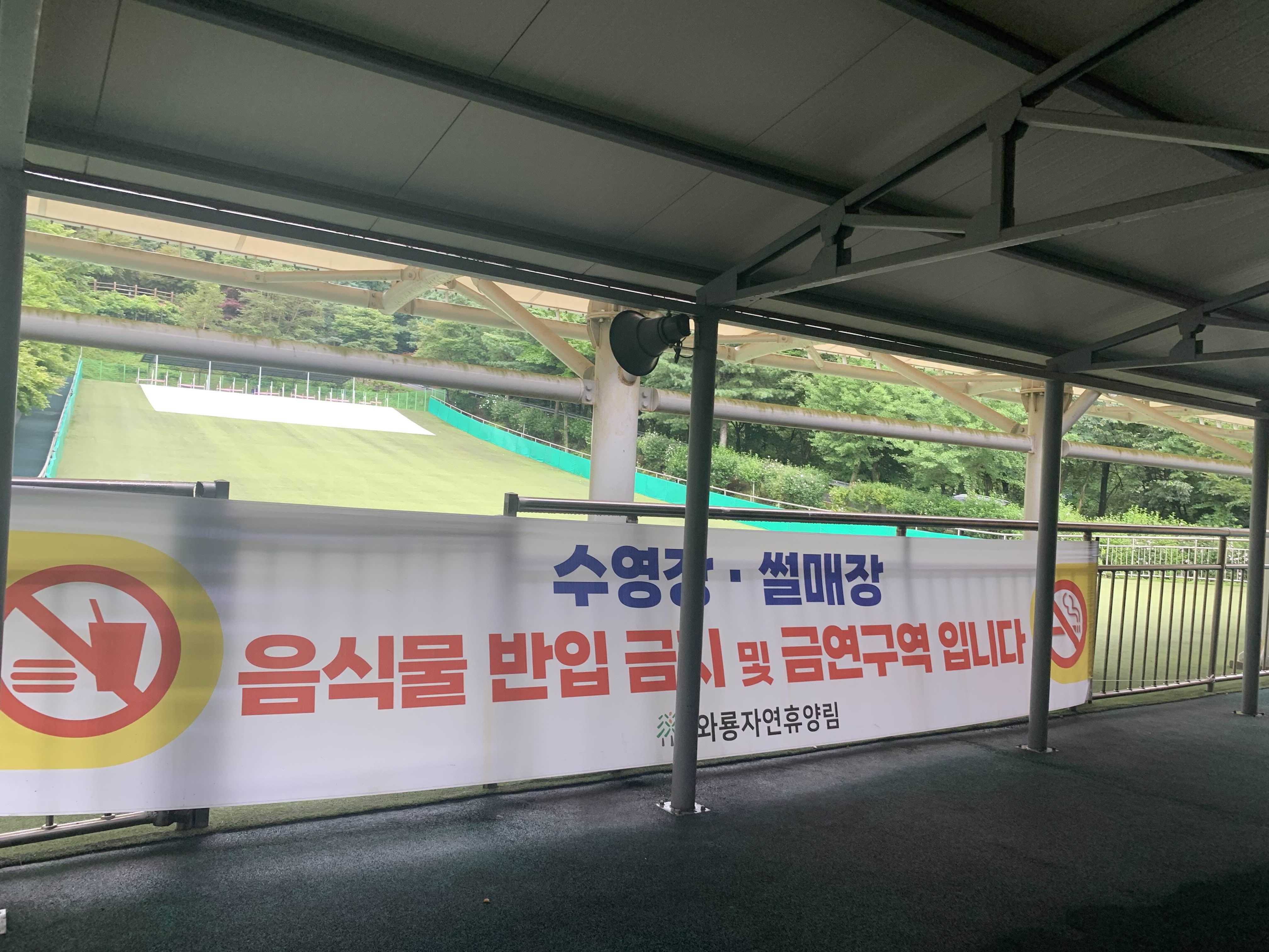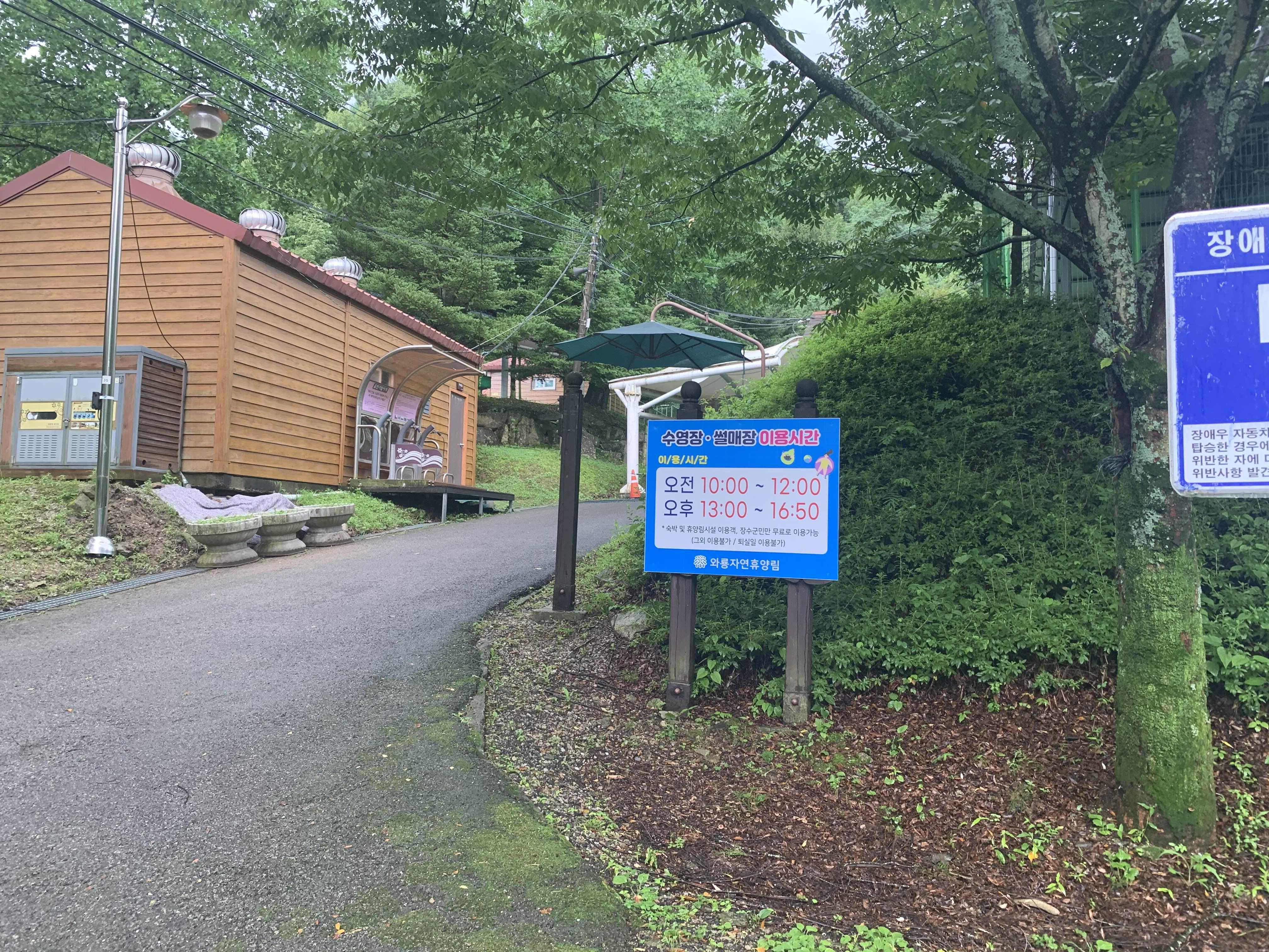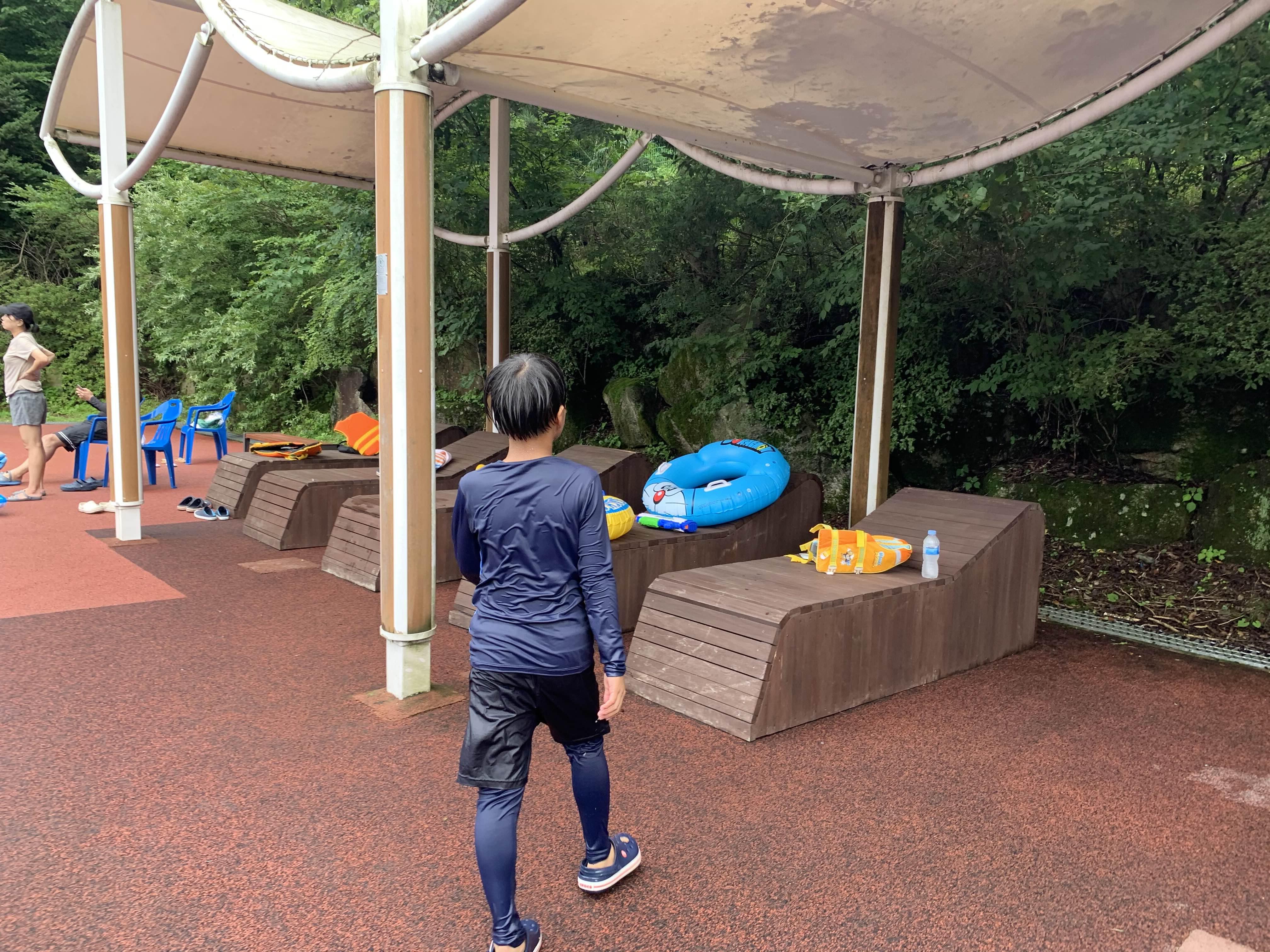 장수 와룡 자연휴양림의 수영장을 이용하기 위해서는 휴양림의 시설(숙박, 캠핑 태그, 평상 등) 이용해야 합니다. 이런 시설을 이용하지 않은 나로서는.... 평상대여를 안내소에서 이야기해주시더군요. 평상 있는 곳에 자리를 잡으면, 안내원이 결재를 해주신다고. 평상의 여유가 있는지 물어보니.... 많이 있다고 하더군요. 비가 이렇게 오니.ㅋㅋㅋ 사람들이 왔을 리가 없겠죠?ㅎㅎ