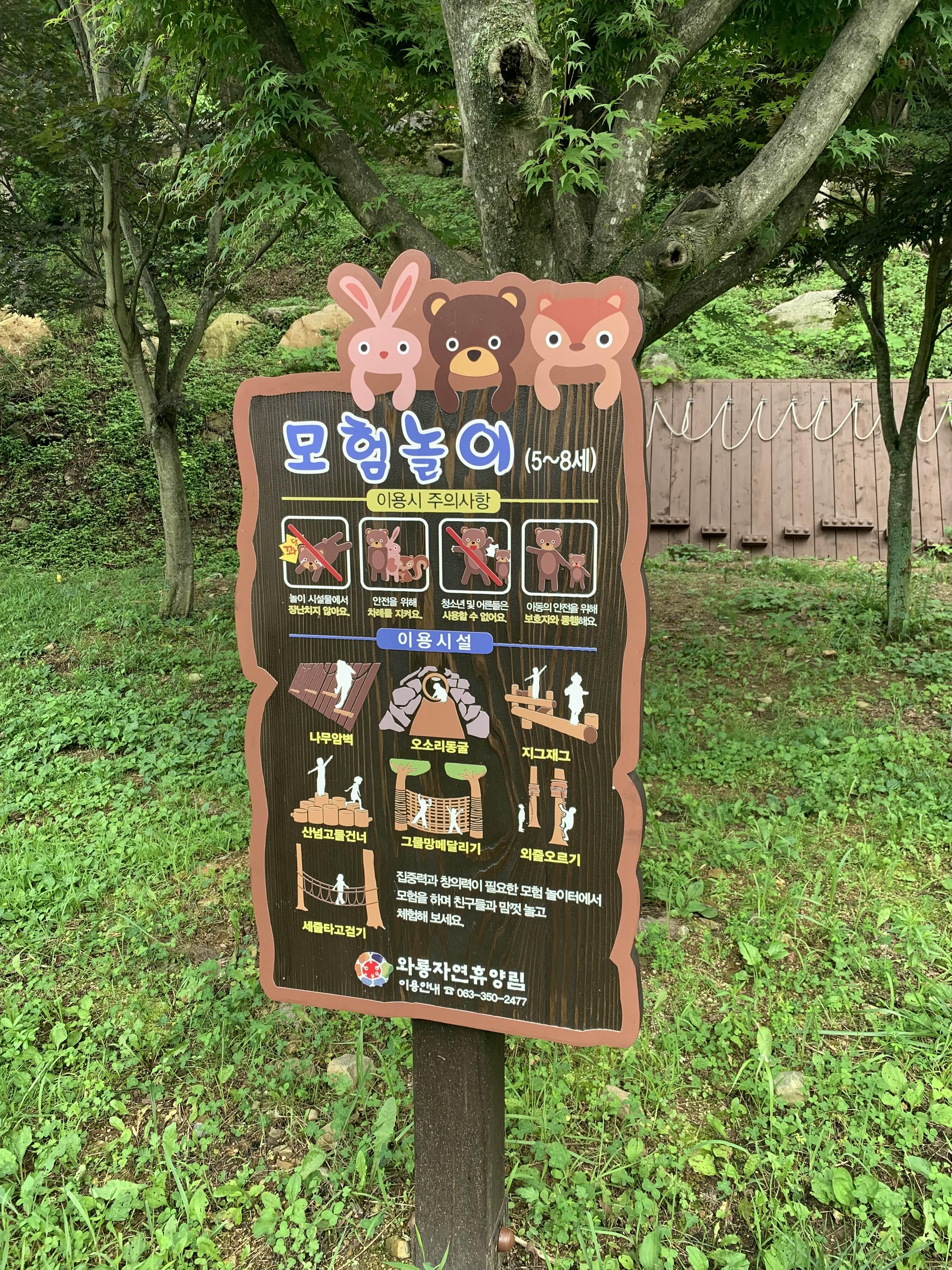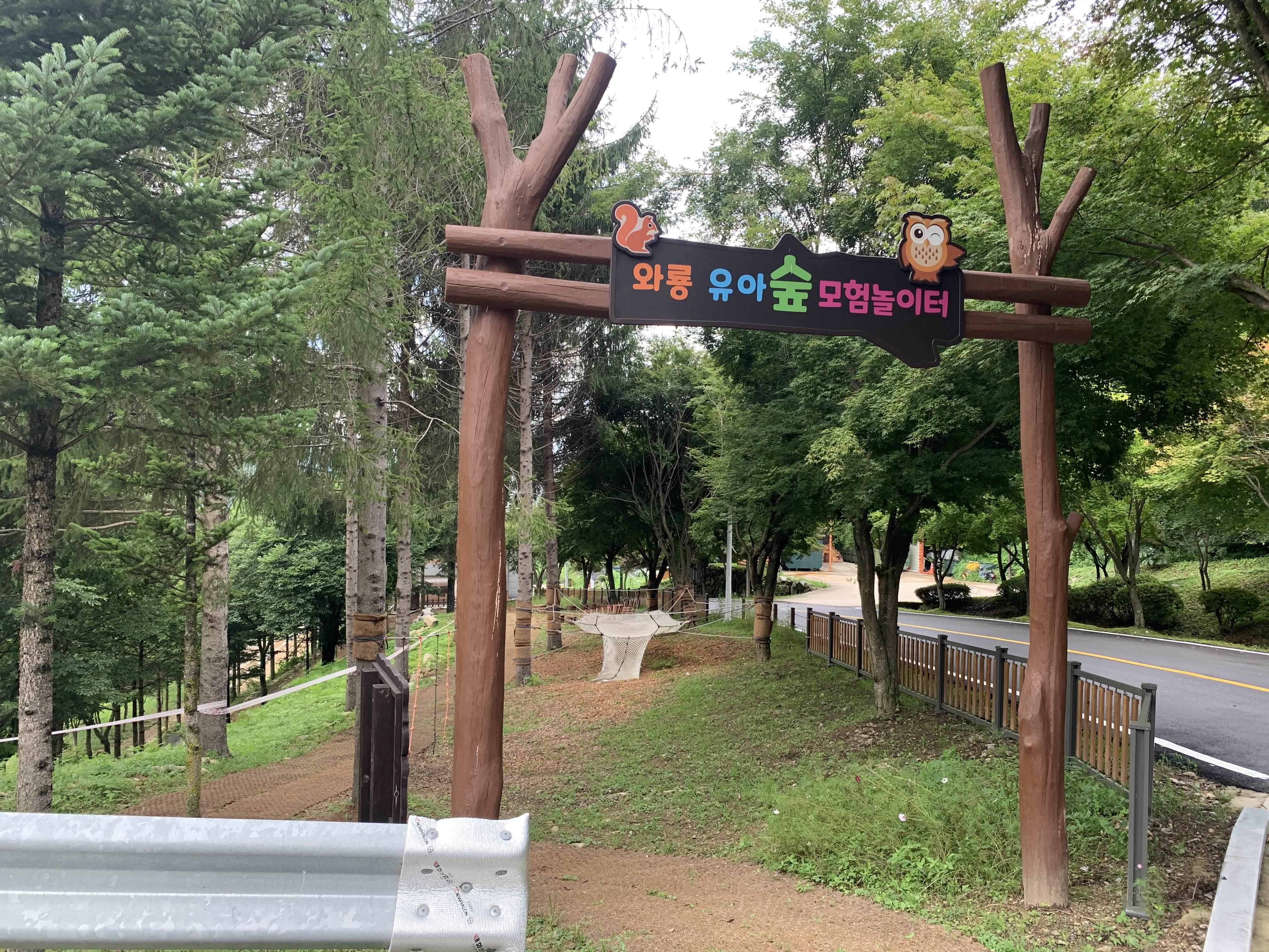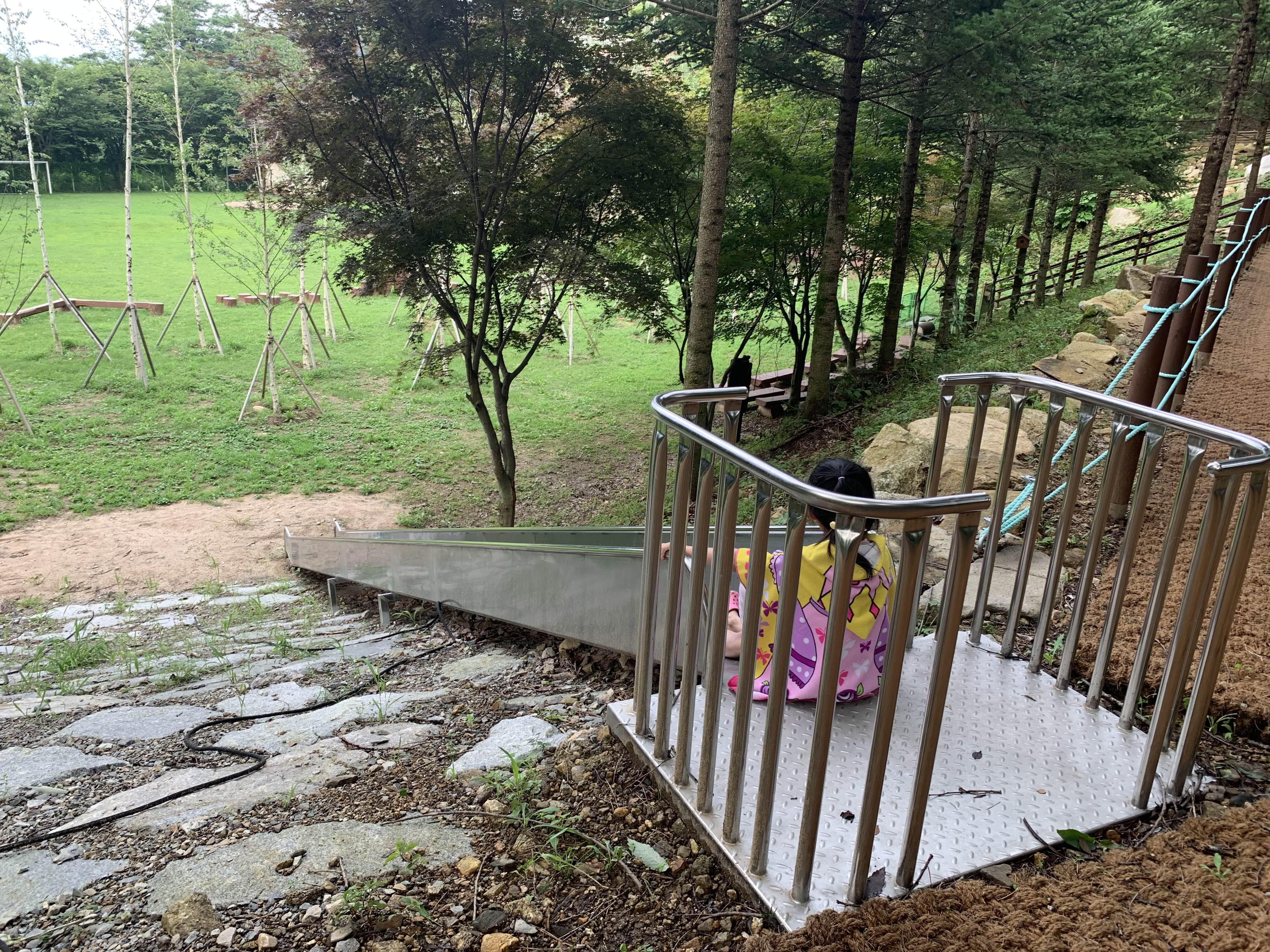 다시 수영장을 이용~~ 날씨가 너무 추워서 중간에 집으로 복귀하려 했지만.... 밥 먹는 사이 무더워진 날씨에, 오후 마감시간까지 물놀이를 즐기고 퇴장했습니다. 집으로 복귀하던 길!!! 자연휴양림 집 구 쪽에 모험놀이터가 준비되어 있더군요.