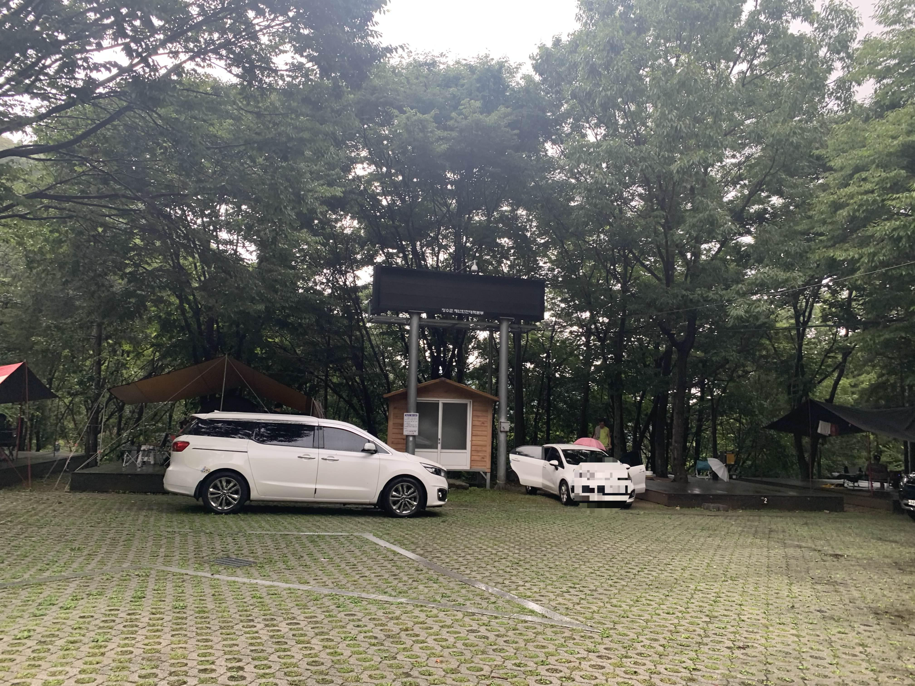 오후 수영장 오픈 시간이 좀 있어서 휴양림 이곳저곳을 탐방해 보기로 했습니다. 휴양림 위쪽으로 올라가니... 캠핑장소가 잘 꾸며져 있더군요. 취사장도 잘 준비되어 있어서... 캠핑하기 좋아 보이더군요. 그런데 비가 많이 오니.... 눅눅한 캠핑은 그리 하고 싶지는 않더군요.ㅎㅎ
