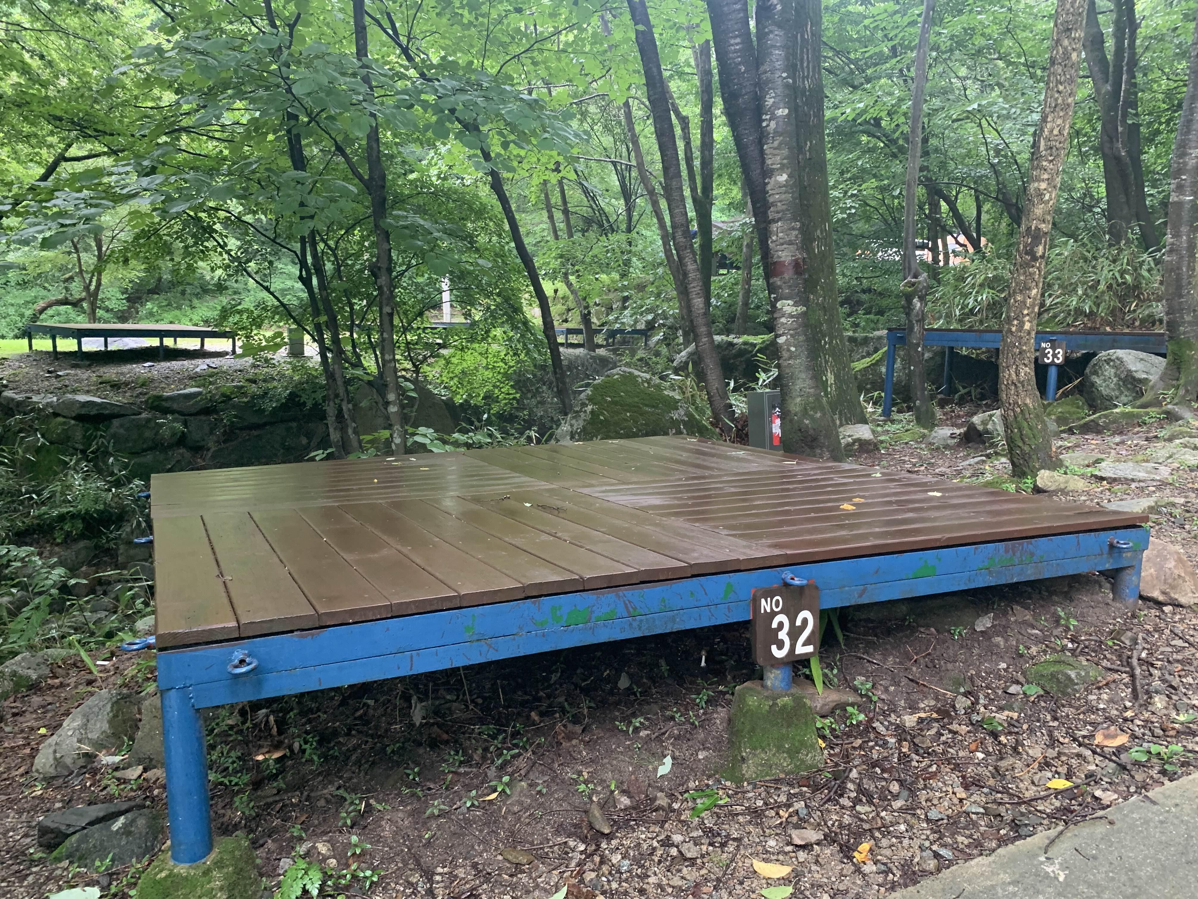 캠핑하고 개울가에서 물놀이 장소로는 그리 좋아 보이지 않더군요. 개울이 넓고 얇은 장소가 있어야 아이들이 물놀이하기 좋은데... 그런 장소는 없어 보이더군요. 그래서 수영장을 만들어 이용하는가 봅니다. 드디어 찾은 평상!!! 좋은 날씨에는 평상 이용도 좋겠지만.... 비가 떨어지는 날씨에는 평상은.....