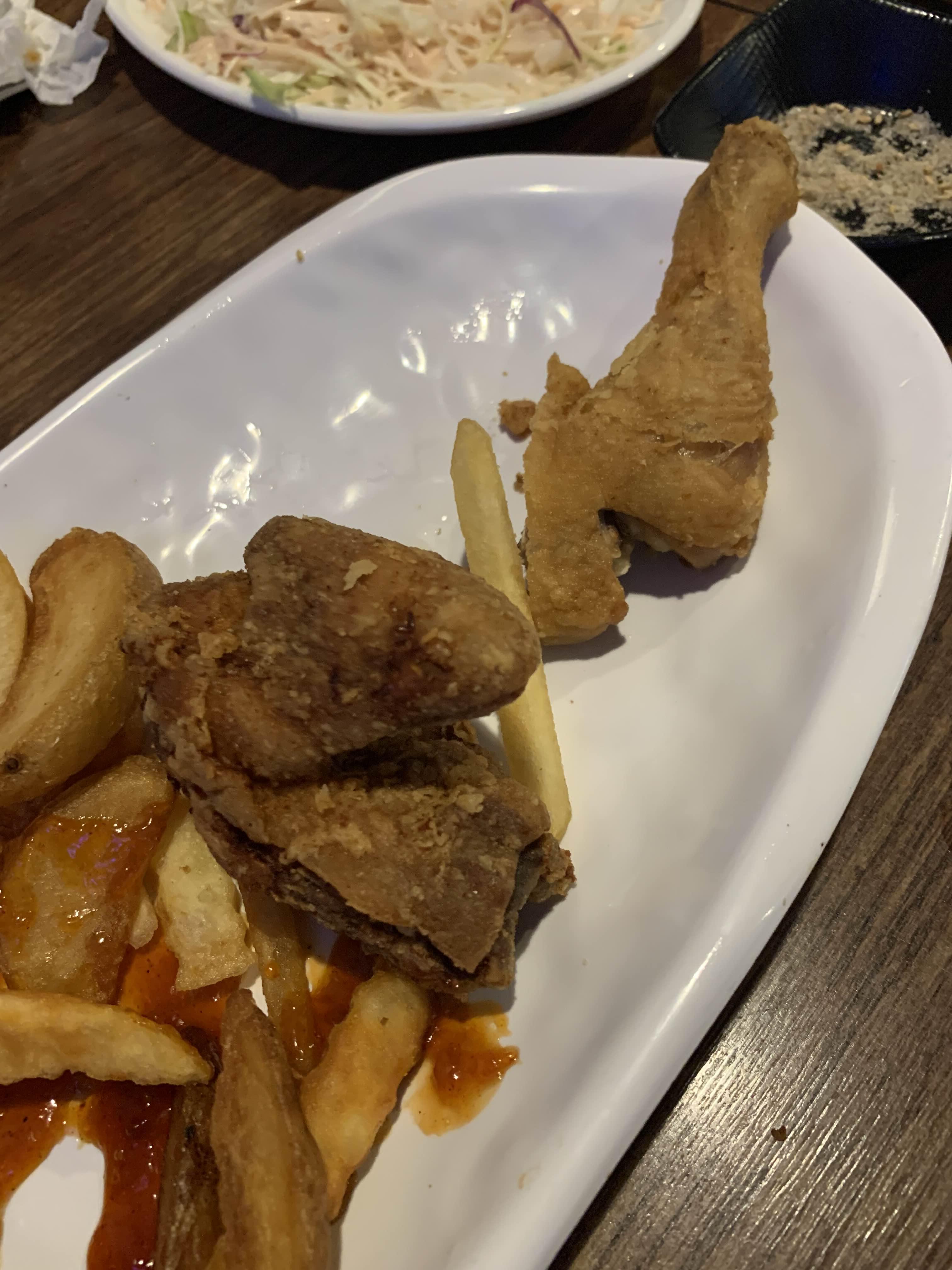 가격이나 맛이나 무난한 치킨집입니다. 치킨 다리와 날개 부분의 색상이 달라... 좀 의아해했던 치킨집이네요.ㅎㅎ