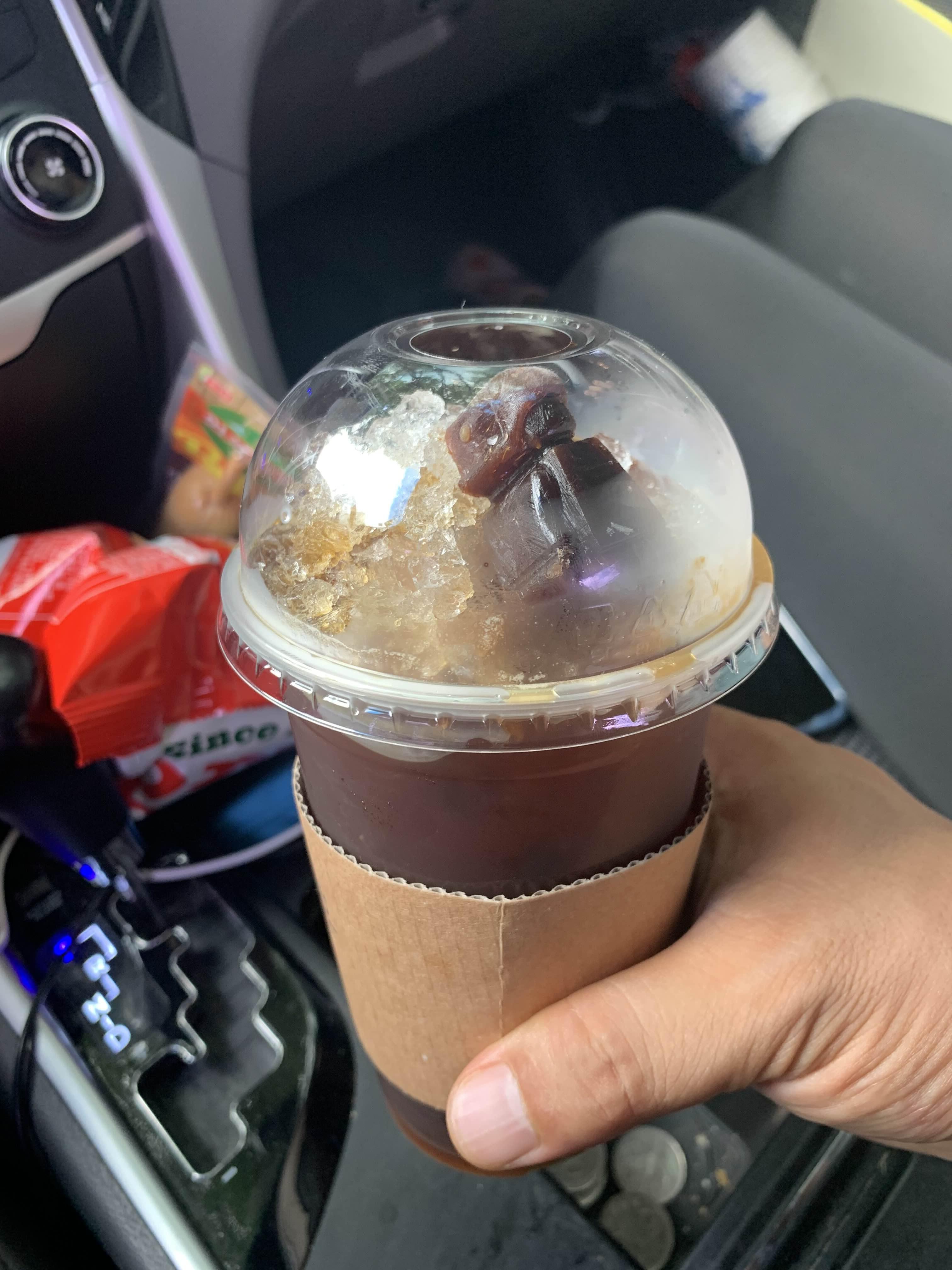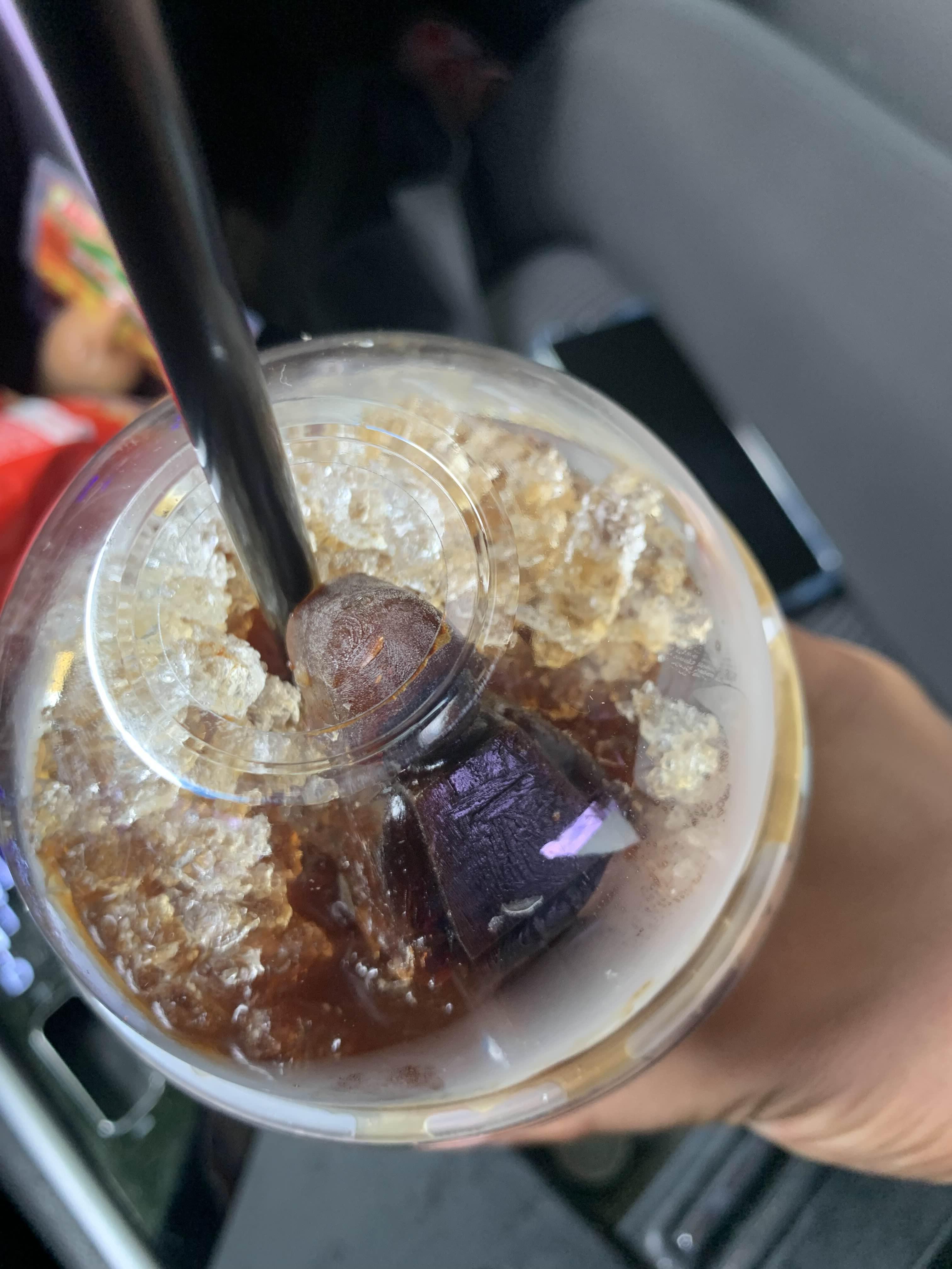 드디어 나온 아이스 아메리카노!!! 음료 안 초콜릿과 유사한 검정 얼음이 들어있더군요? 이게 뭐지 뭐지 하며 뒤 쳐 기는데.... 초콜릿이 아닌, 레고 모양의 커피 진액이 들어 있더군요.ㅎㅎ 시원한 얼음이 들어있는 아메리카노를 한 모금 마셔줍니다. 맛은..... 진합니다.
