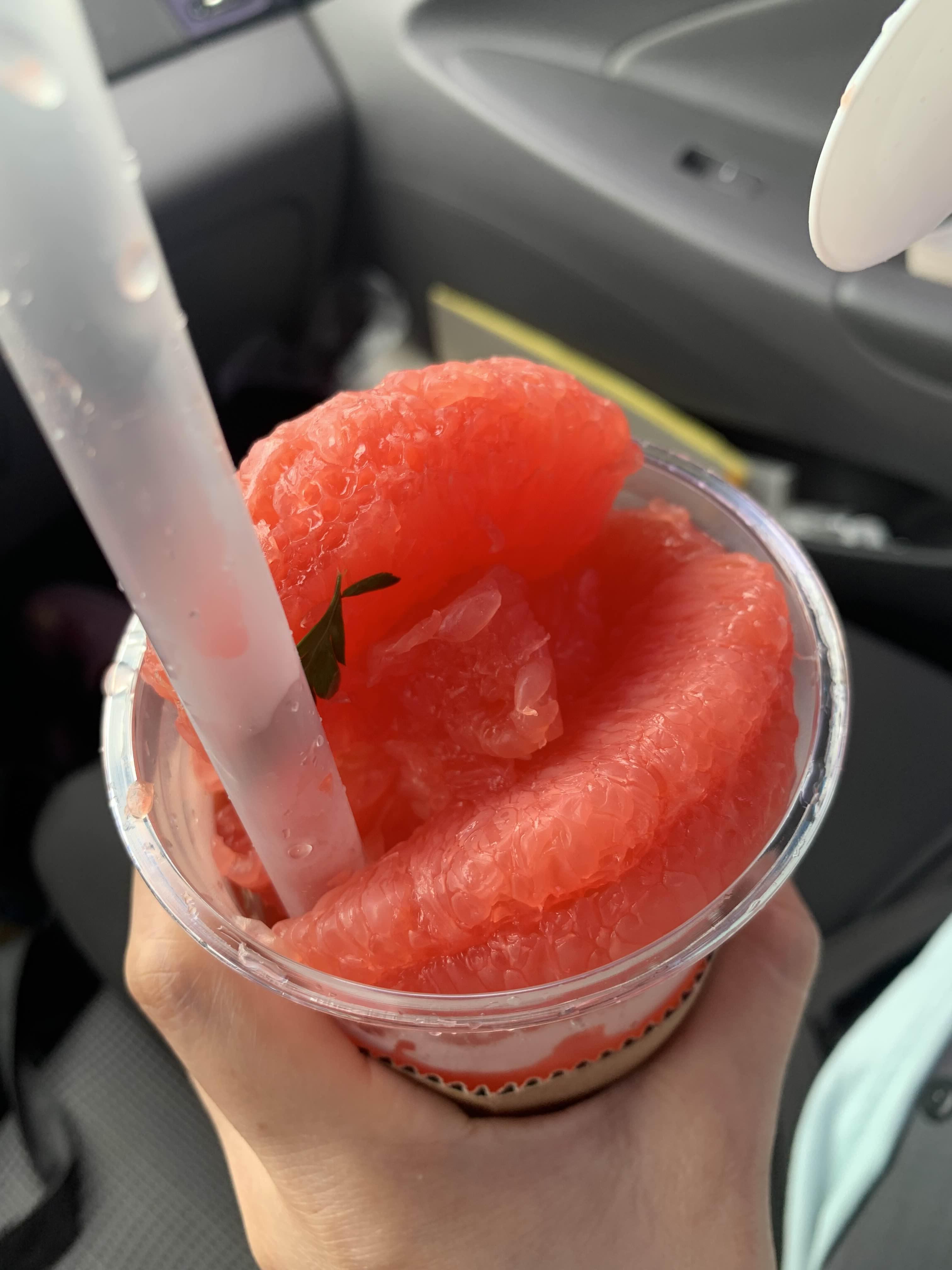 평소 자몽을 그리 좋아하지는 않는데... 이 상금 한 매력은 뭐지? 앞으로 자몽에 빠질 것 같은 느낌이 들더군요. 음료수 한 모금을 마시고.... 탱글탱글한 자몽 한 덩어리를 맛보는데, 자몽이 정말 싱싱하더군요. 자몽이 원래 이렇게 맛있는 과일이었던가? 평소 오랜지만 먹어본 나로서는 신세계를 만난 느낌이었습니다.