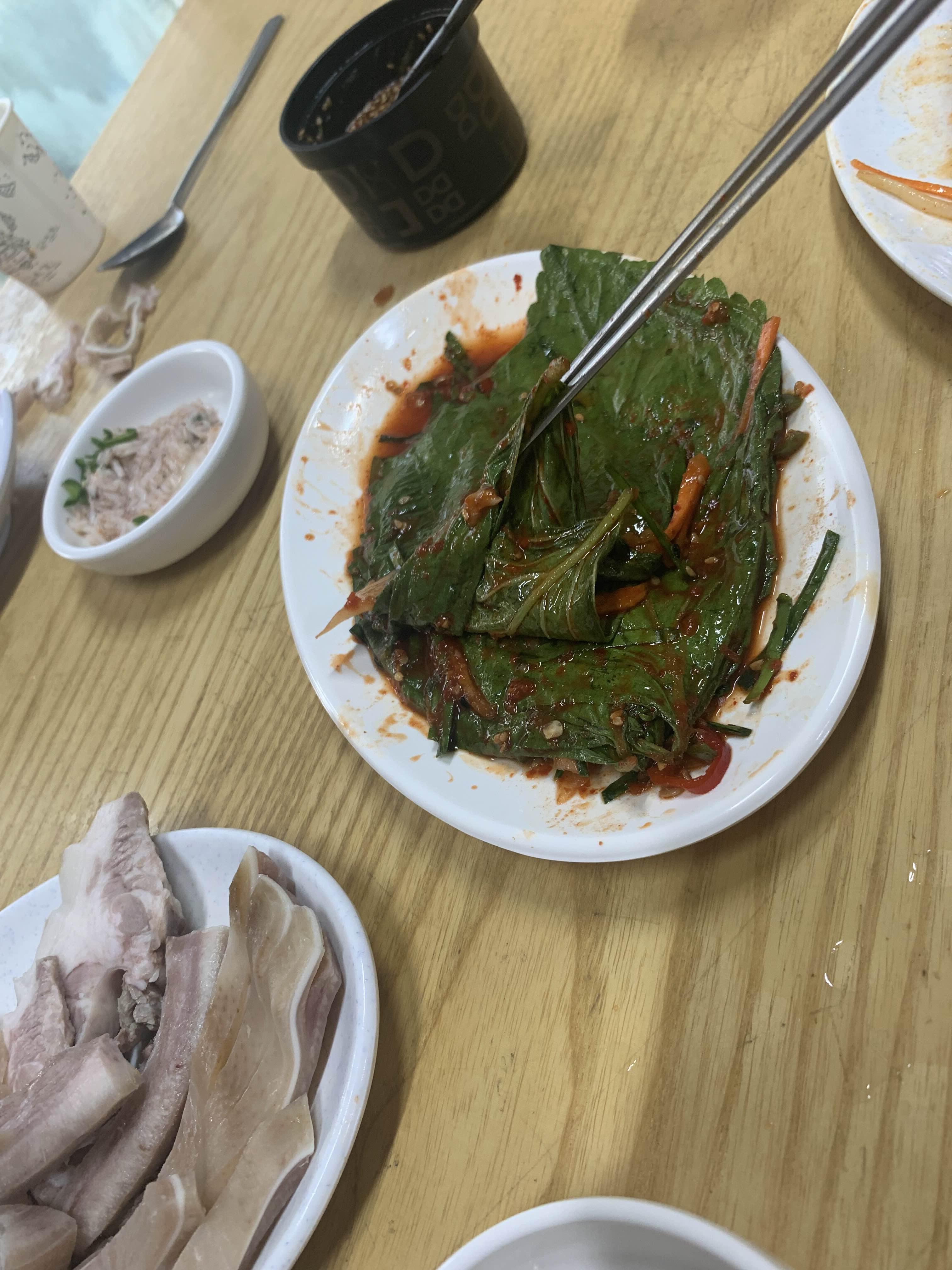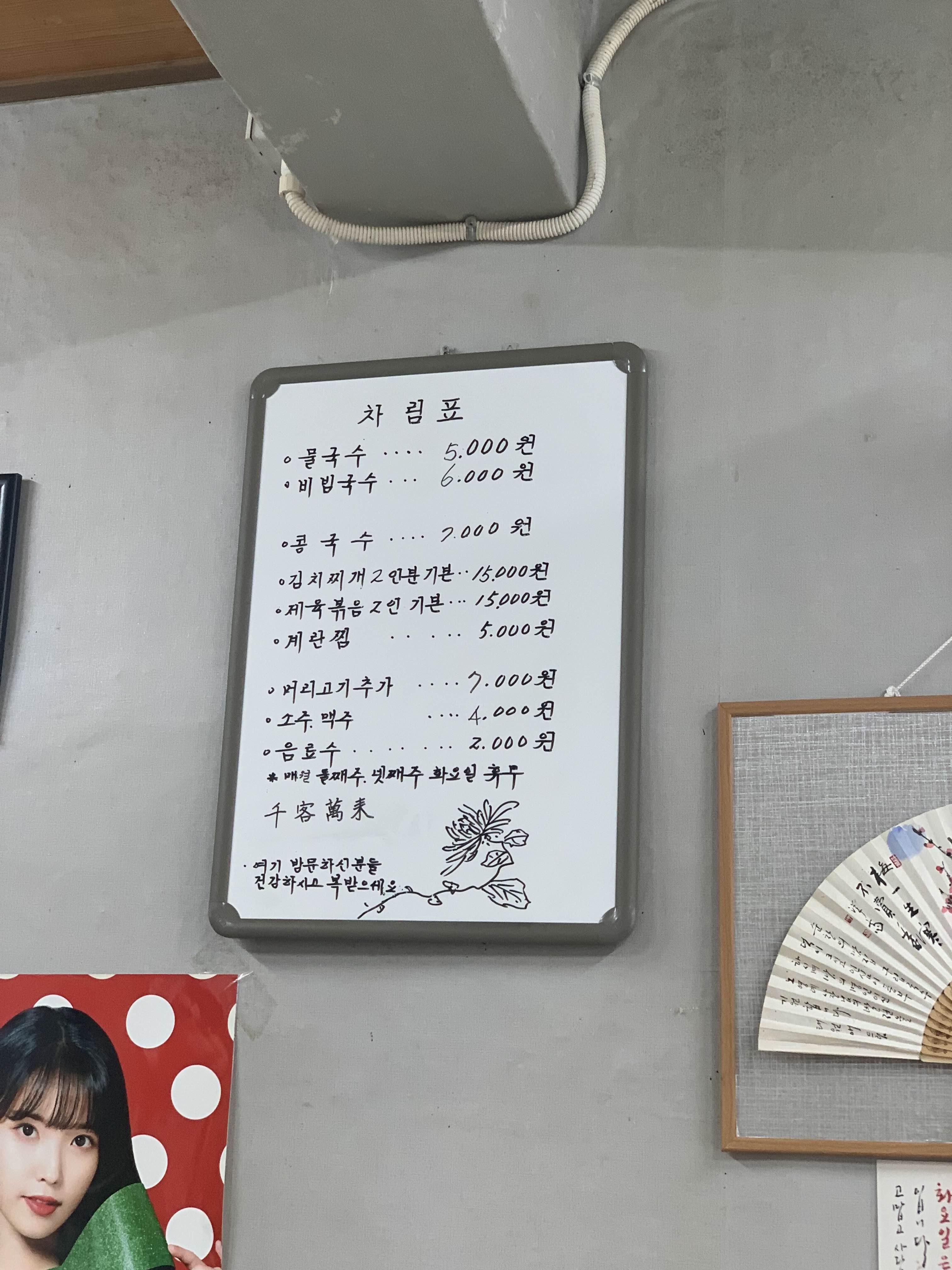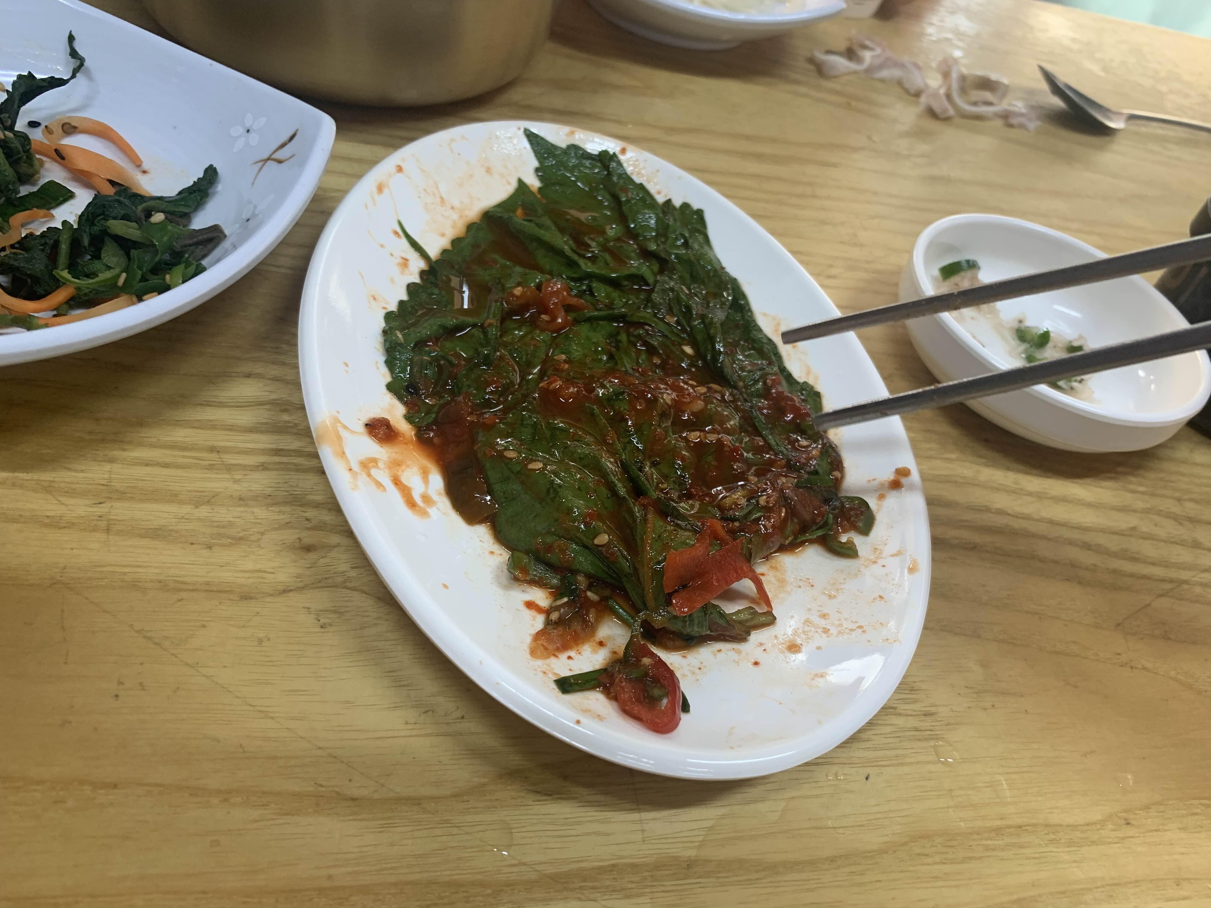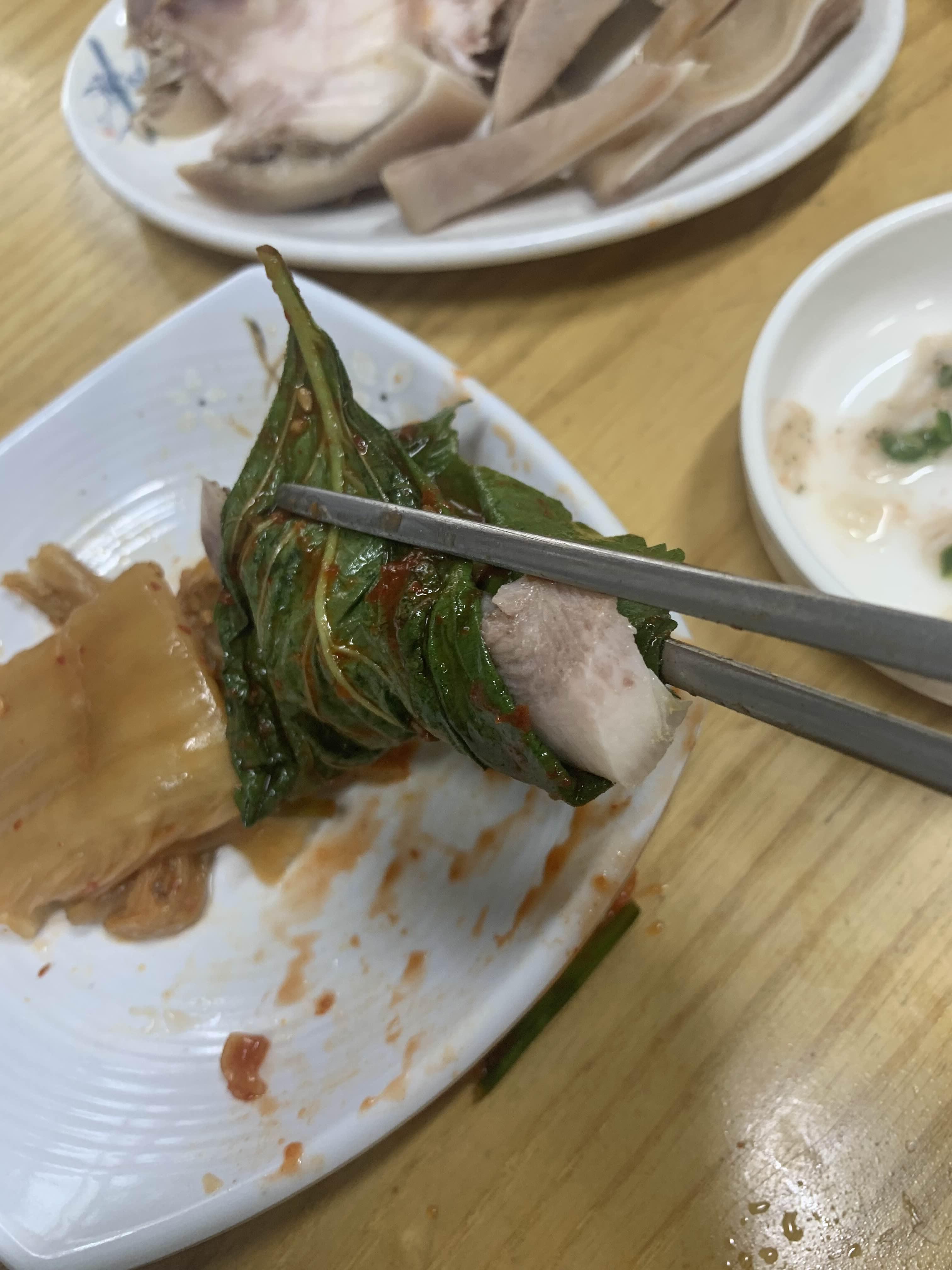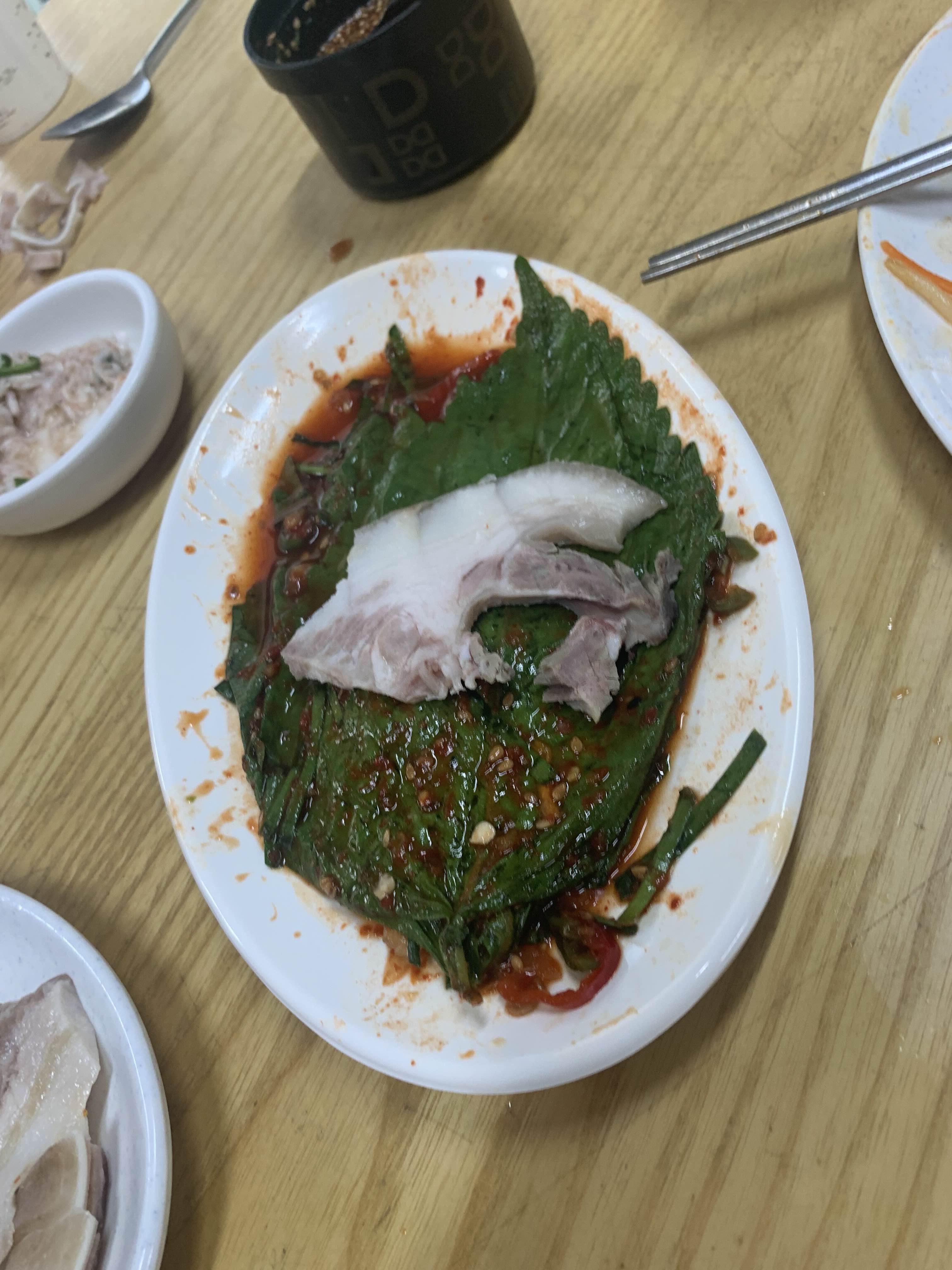 간단한 국수 한 그릇 맛보려다... 술 한잔 마시고 싶어지는 식당입니다. 서비스로 나온 돼지머리고기는 정말 젤리 식감의 쫄깃! 깻잎 김치와 배추김치는 시골에나 맛볼 수 있는 음식이었습니다. 이 길을 지날 때마다 들릴 것 같은 식당입니다.