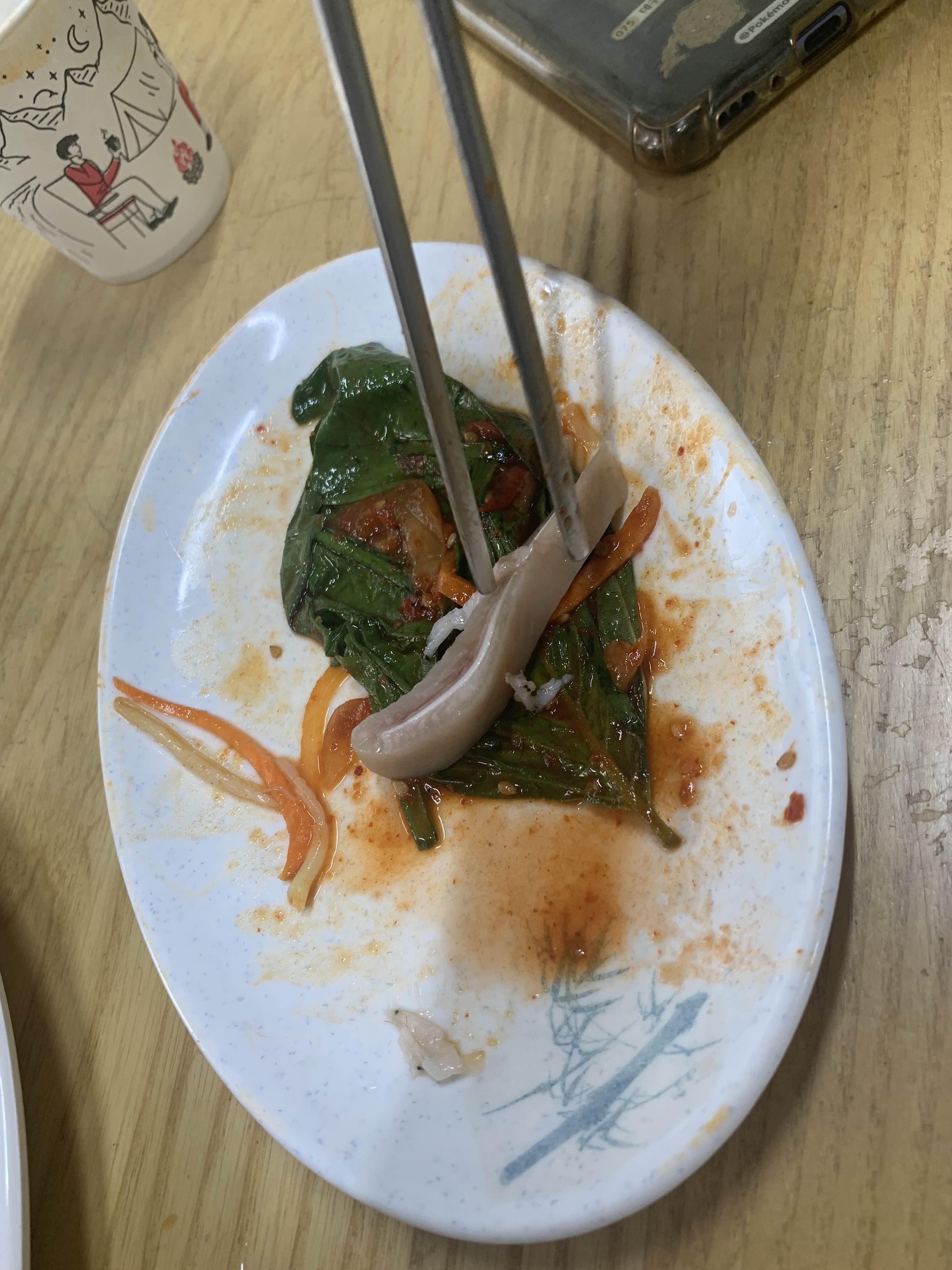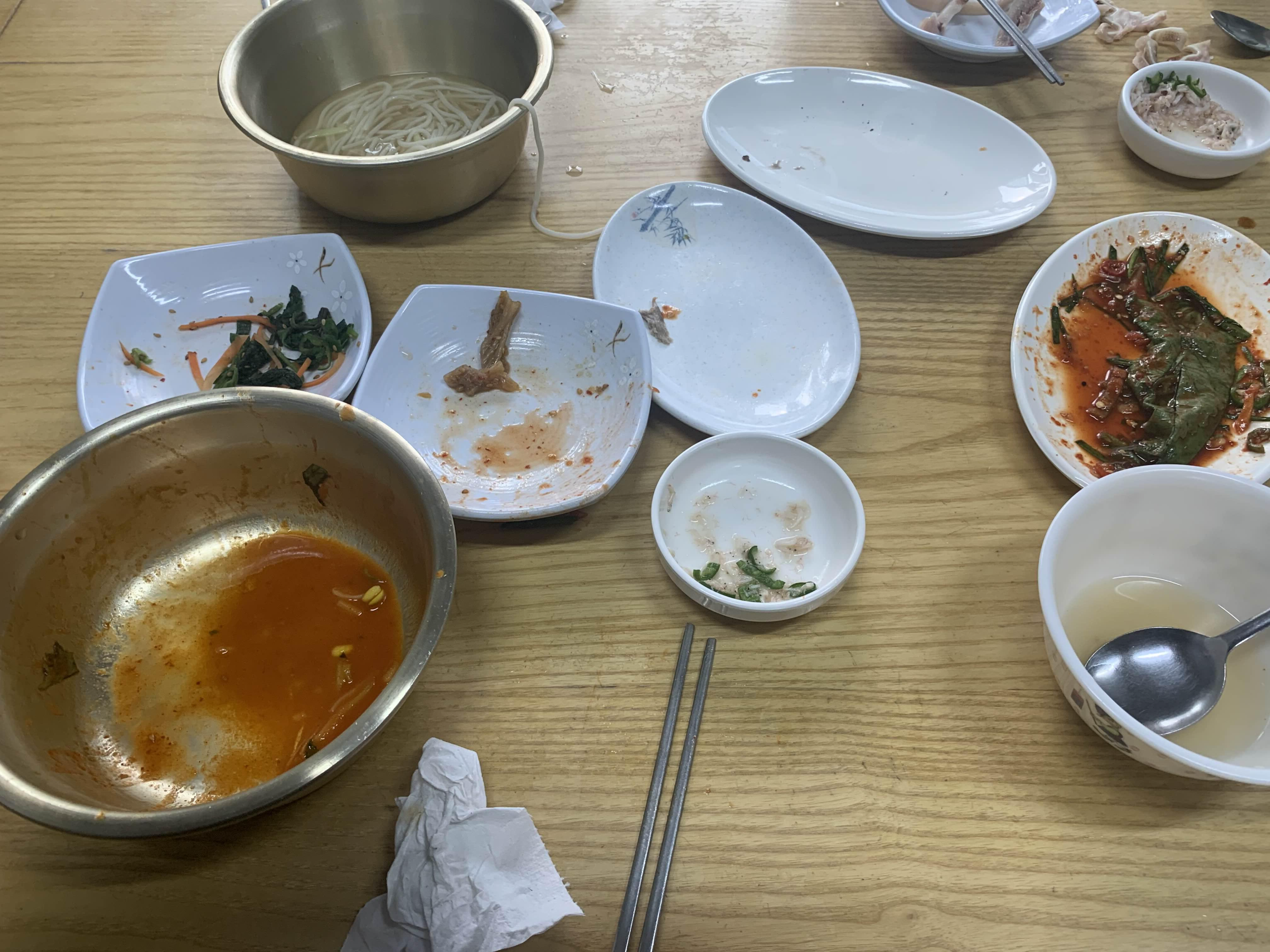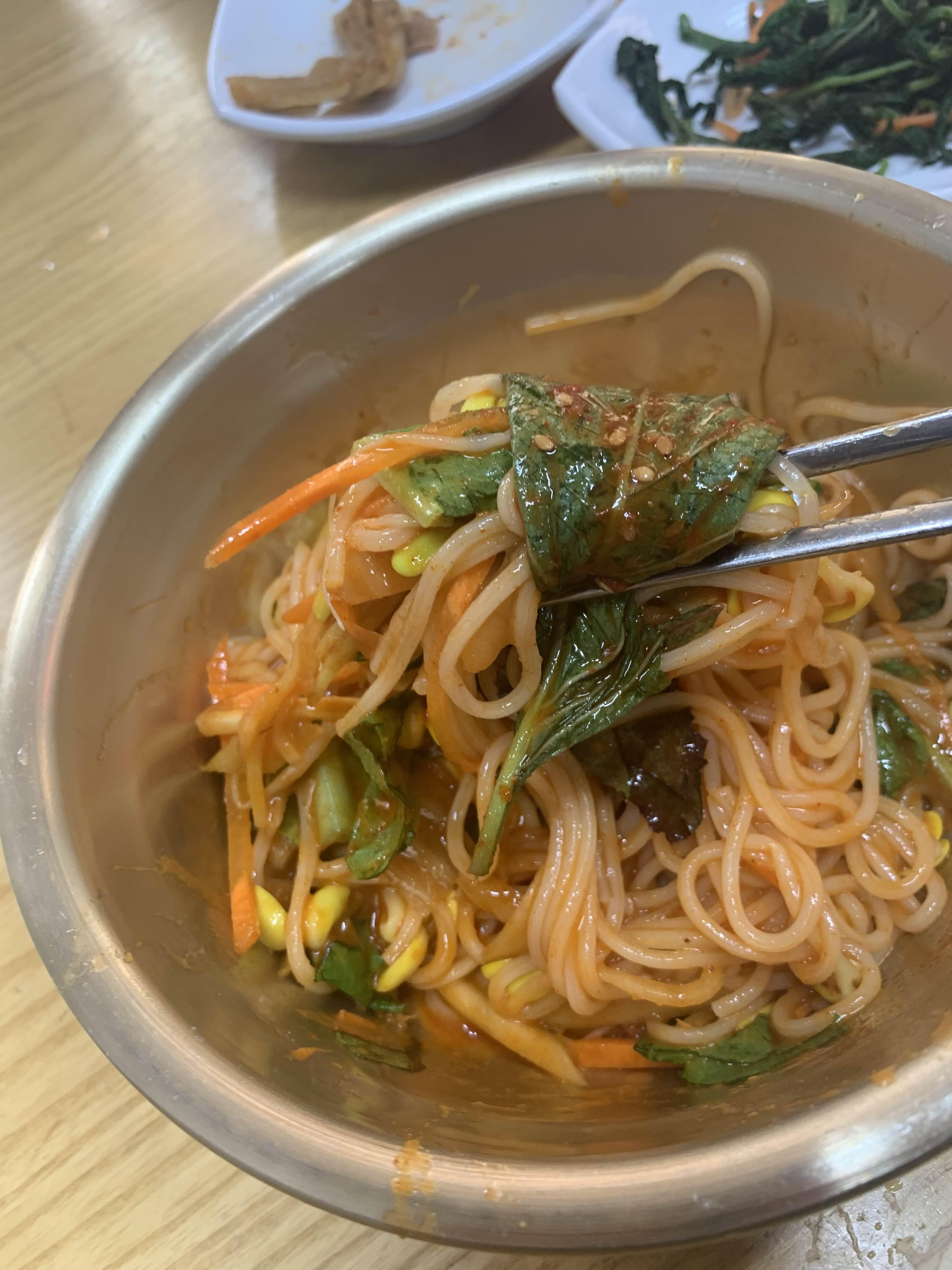 어느새 비빔국수 어느새 바닥을 드러내더군요. 비빔국수와 물국수는 맛이나 양은 보통 이상으로 딱히 최고다라고 할 수는 없지만!!! 밑반찬으로 나온 배추김치/깻잎김치 특히 머리고기! 최고~~~
