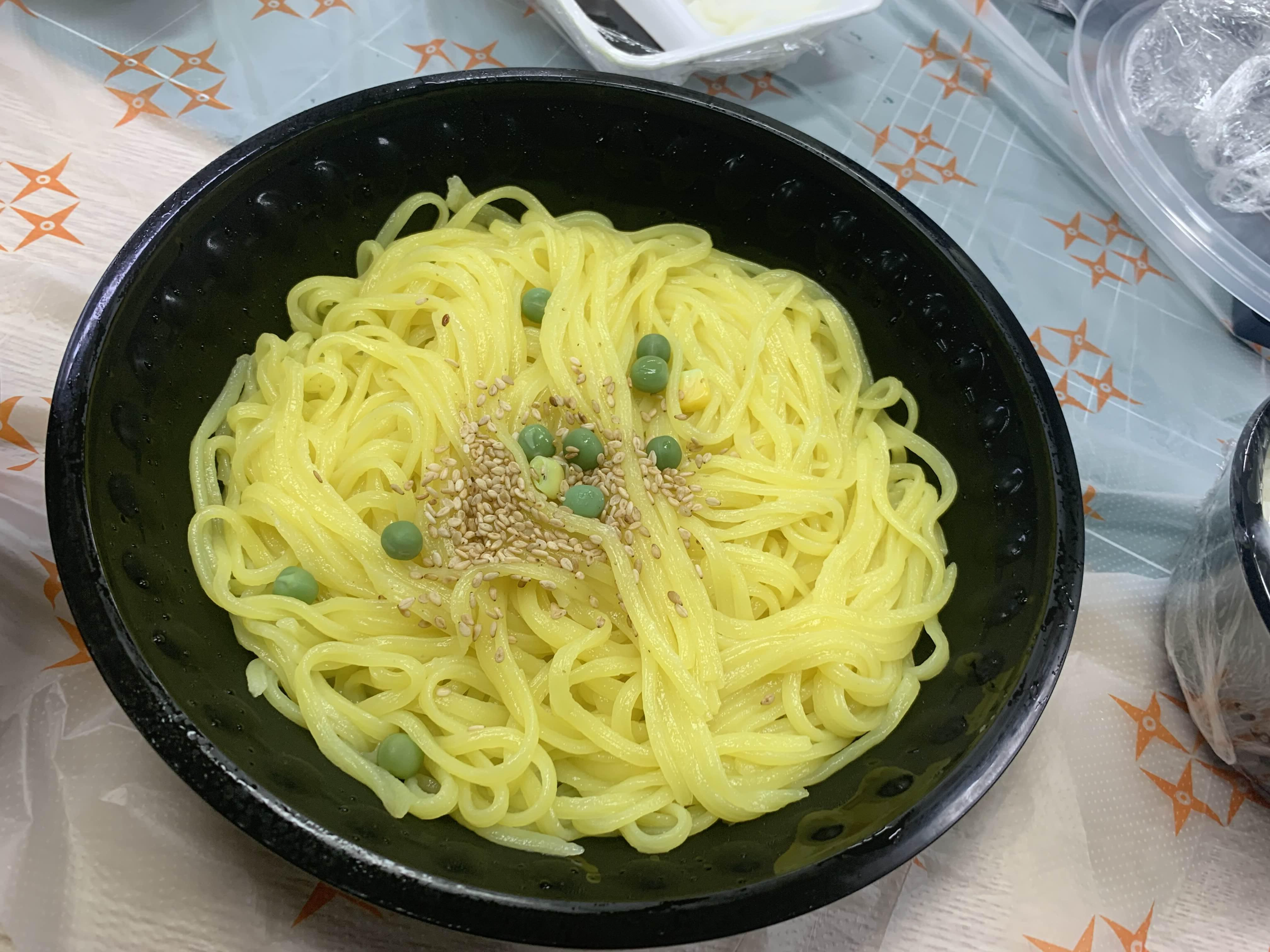 중식면 위에는 완두콩과 참깨가 뿌려져 있더군요. 짜장에는 오이가 잘 어울리는데.ㅋㅋㅋ 일단 오이는 없으니 패스해주고~ 간짜장 소스를 바로 부어서 슥슥 비벼줍니다.