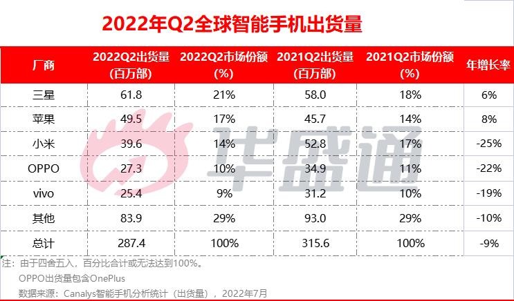 Orient Securities Research Report는 2분기 세계 휴대폰 시장이 약세를 보였다고 밝혔습니다. 부분적으로는 러시아와 우크라이나 간의 갈등이 세계 경제에 계속 영향을 미치고 중부 및 동부 유럽의 수요가 감소했기 때문입니다. 반면 중국발은 코로나19 봉쇄령 영향으로 출하량이 줄었다.