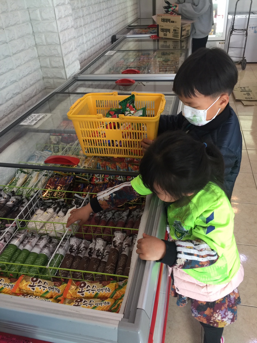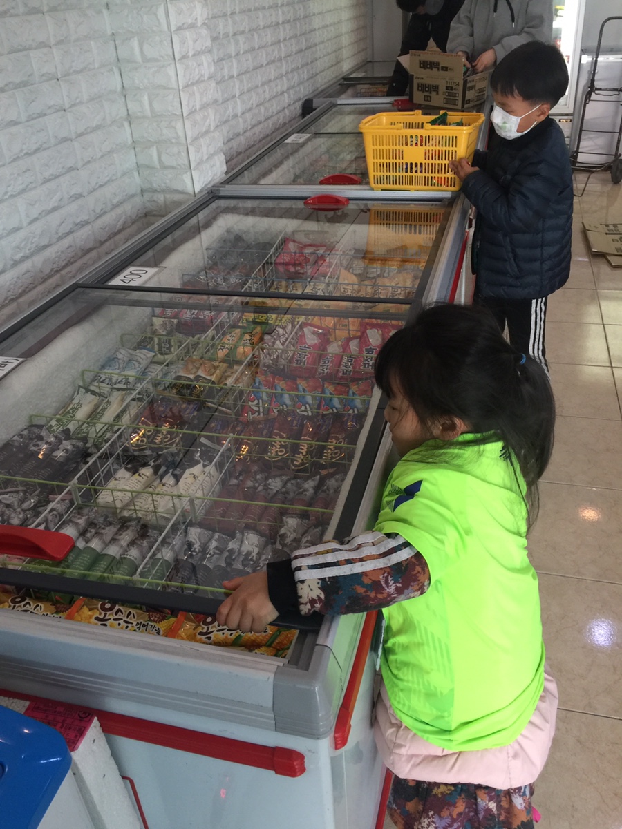 아이스크림 고르는데 정신없는 소율이와 선우^^ 대형마트에서 할인하는 가격과 비슷? 한데... 여기는 아이스크림이 가지런히 정리가 되어 있어서 자주 방문하는 마켓이네요.