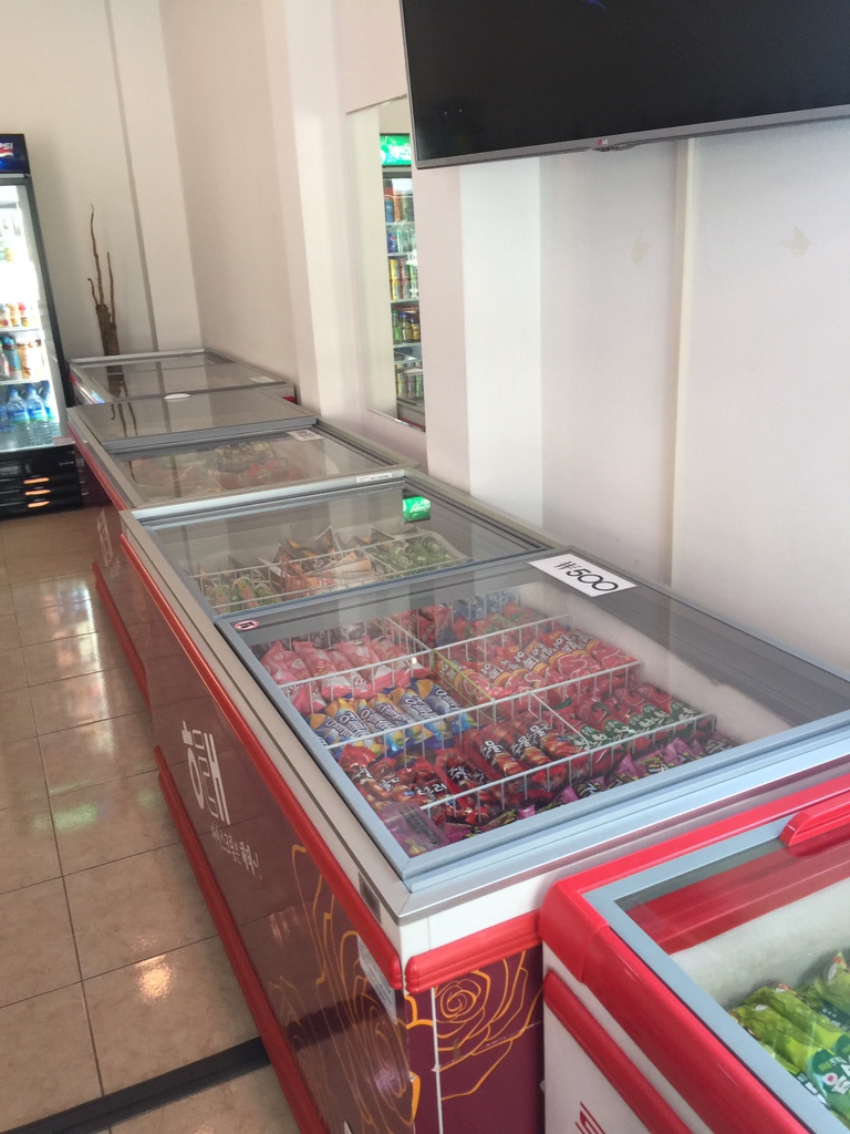 여기는 마켓 옆에 아이스크림 물류센터? 대형 냉동창고가 있습니다. 도소매를 전문으로 하시는 곳 같은데.... 조그마한 마켓을 함께 운영하는 곳이네요. 막대 아이스크림이 400원, 쭈쭈바 500원, 콘 종류가 800원..... 그리고 아이들이 하나씩 고르는 구슬 아이스크림은 1,800원입니다. 한번 올 때마다 만 원 정도 사 가는 곳이네요.