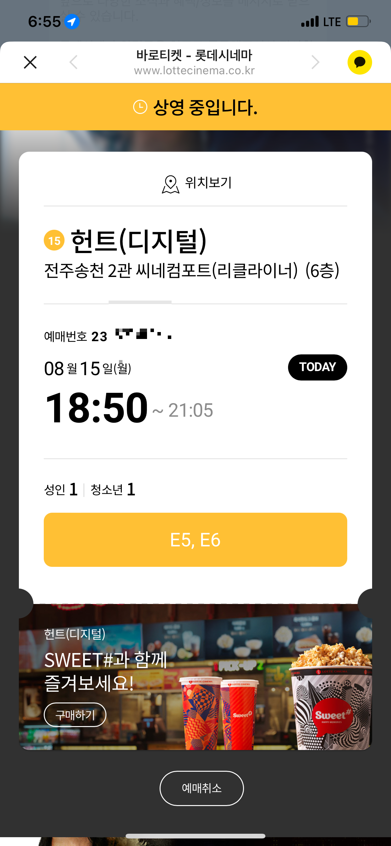 최근에 오픈한 전주 송천 파인트리 몰에 위치한 롯데시네마!!! 영화관 좌석은 상당히 편하더군요. 나름 만족도가 좋더군요. 영화티켓이 좀 비싸다는 게 흠!!! 최근에 오픈한 한산, 헌트..... 영화가 그리 재미있지 않아서...