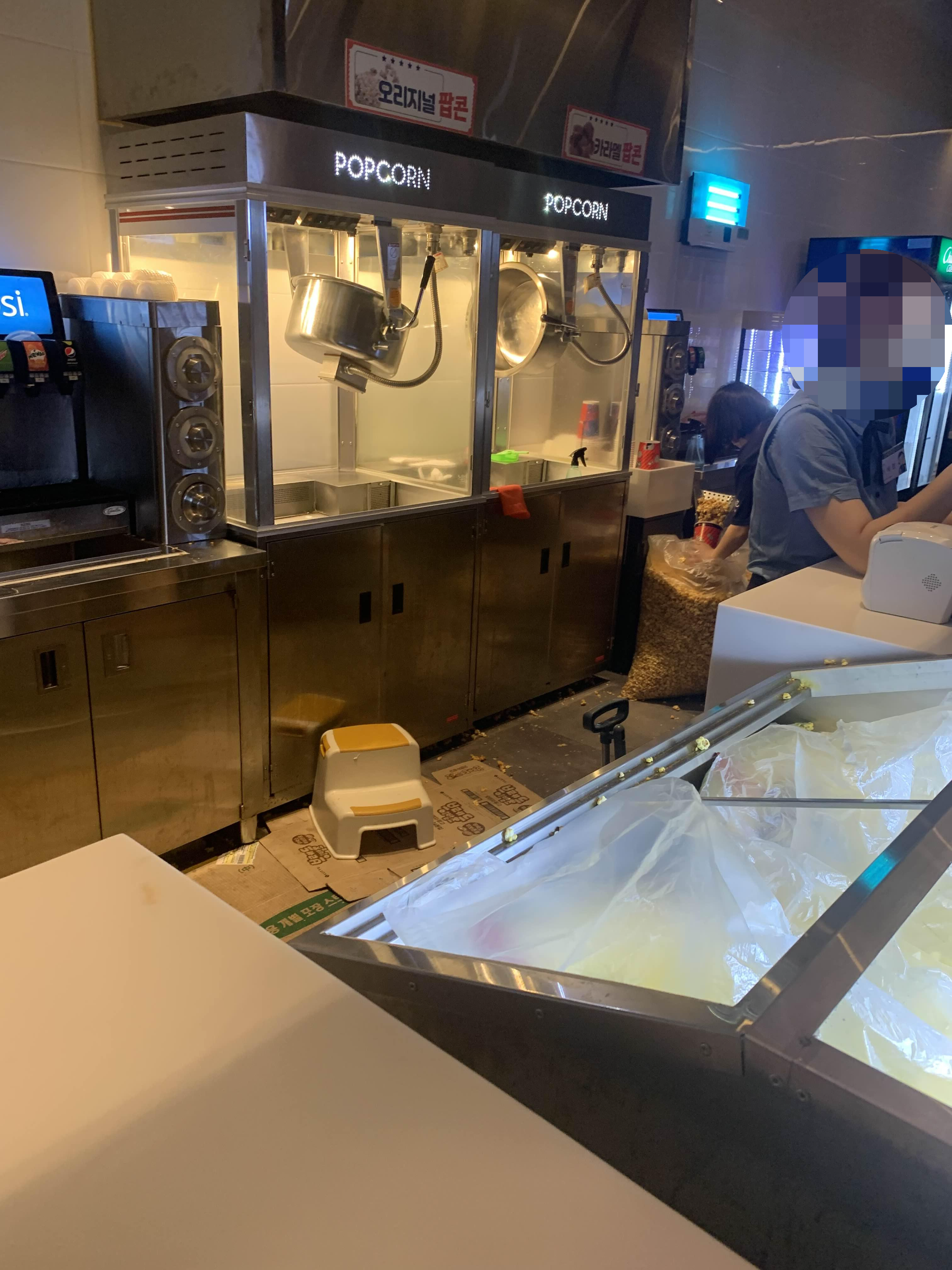차량 등록하고... 아이는 영화를 다 보고서, 영화관 팝콘을 맛보고 싶다 하여... 팝콘을 사달라 하더군요. 그래서 팝콘 주문을 큰 컵으로 주문했으나.. 큰 컵이 없어 작은 컵으로!! 팝콘을 덜어주시는데... 바닥이 너무 더러워서;;;; 좀 청소 좀 해주셨으면.... 더러운 모습이 눈에 안 들어왔으면 좋겠는데... 우웩!!!