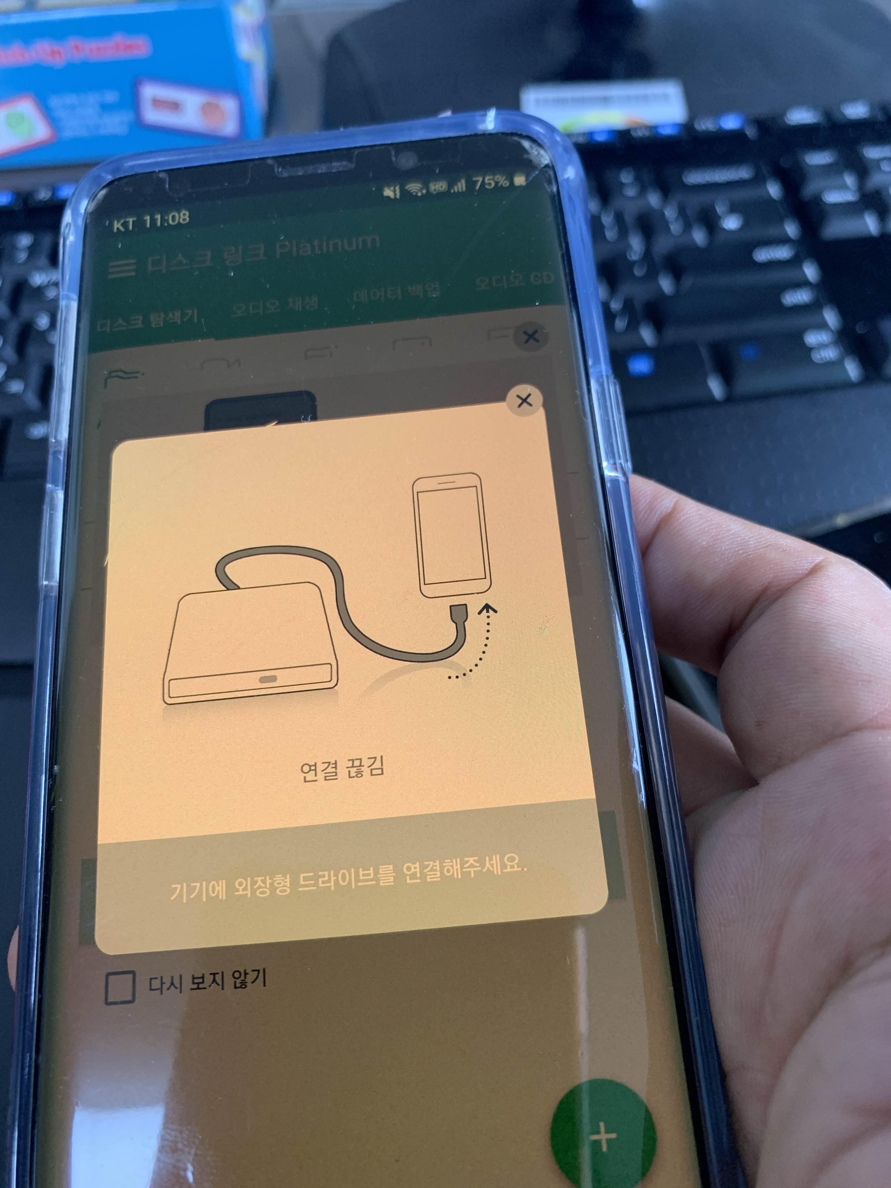 컴퓨터에 연결하여 인식을 해보았으니.... USB-C타입이라는 외장 CD롬을 휴대폰으로 1대 1 연결해 보았다. 연결을 위해서는 디스크 링크라는 어플이 필요하다. 다운로드하여주고 연결해 준다.