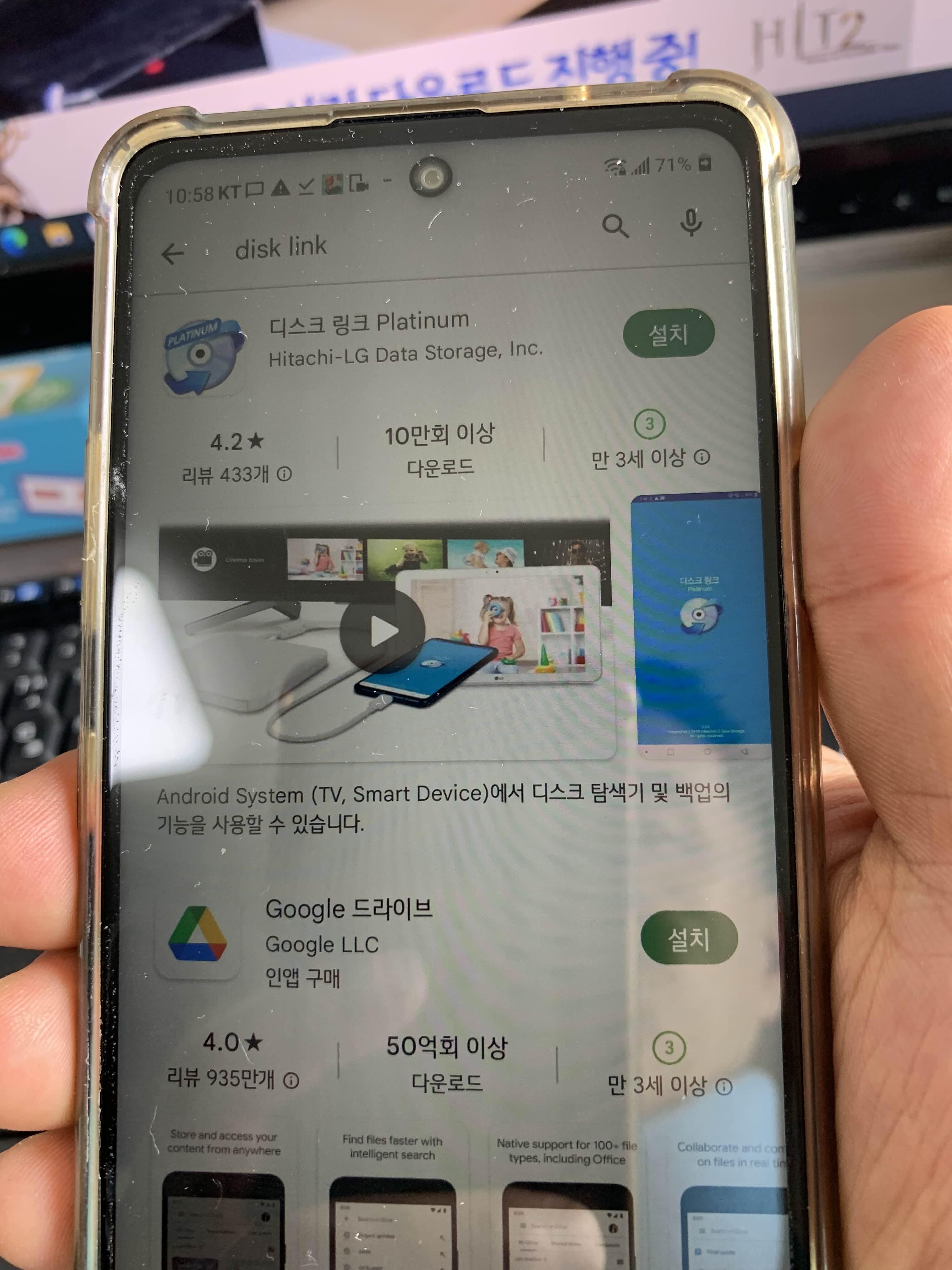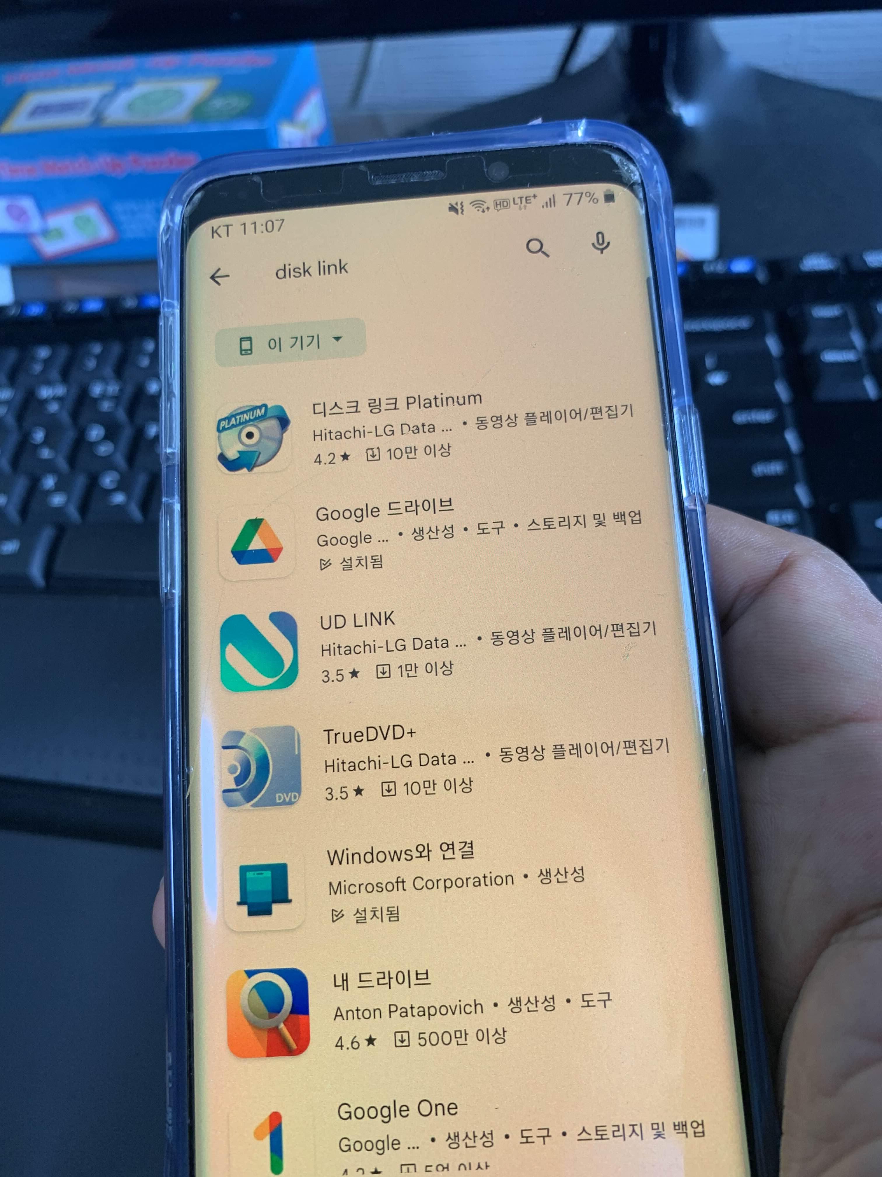컴퓨터에 연결하여 인식을 해보았으니.... USB-C타입이라는 외장 CD롬을 휴대폰으로 1대 1 연결해 보았다. 연결을 위해서는 디스크 링크라는 어플이 필요하다. 다운로드하여주고 연결해 준다.