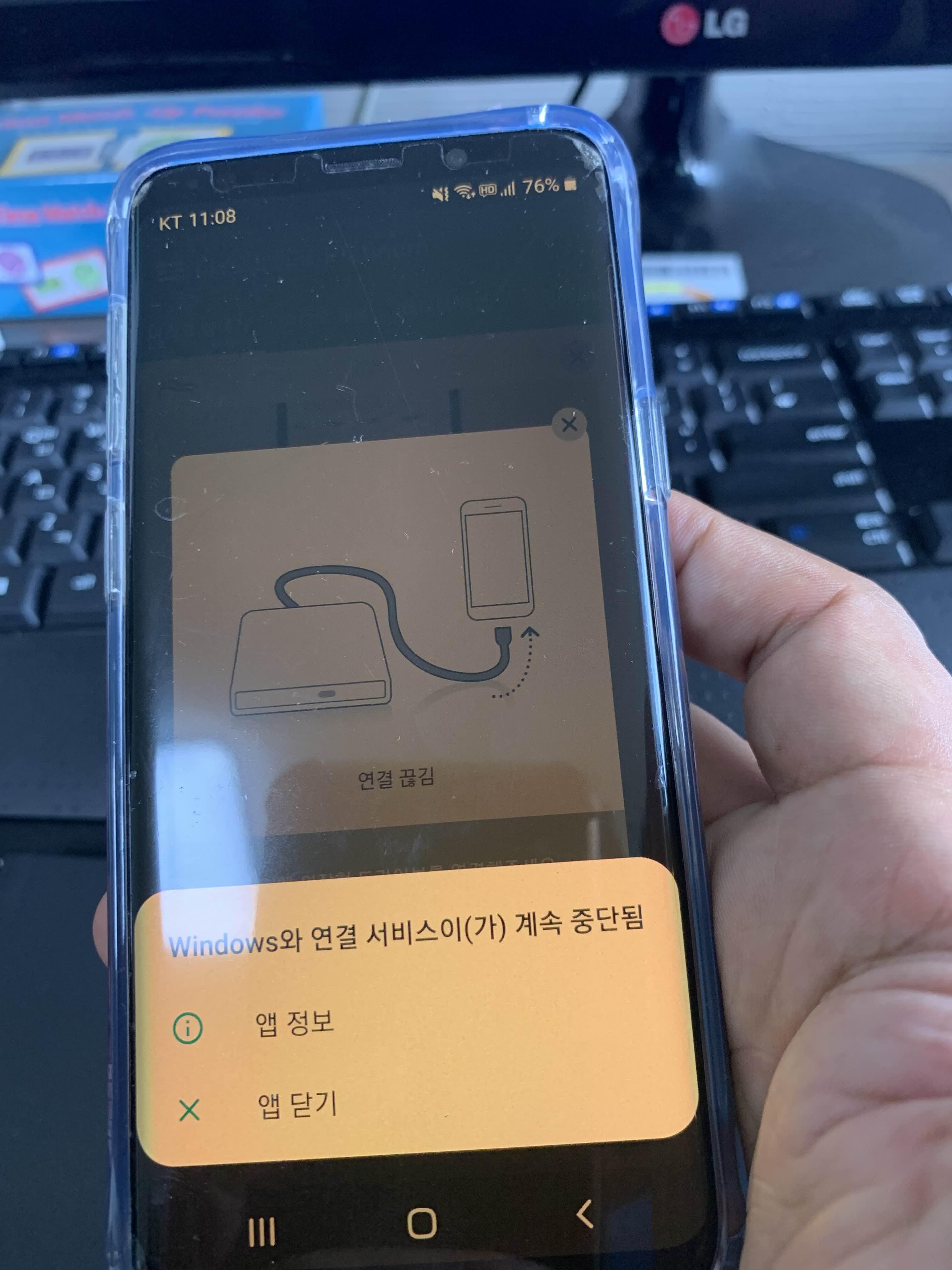 연결이 안 된다... 왜 안될까? 전원 공급이 부족해서 그런 거 같다. 별도의 전원 공급 USB를 연결해야 될 것 같아... LG 핸드폰이라 그런지 인식이 안 되는 걸까?