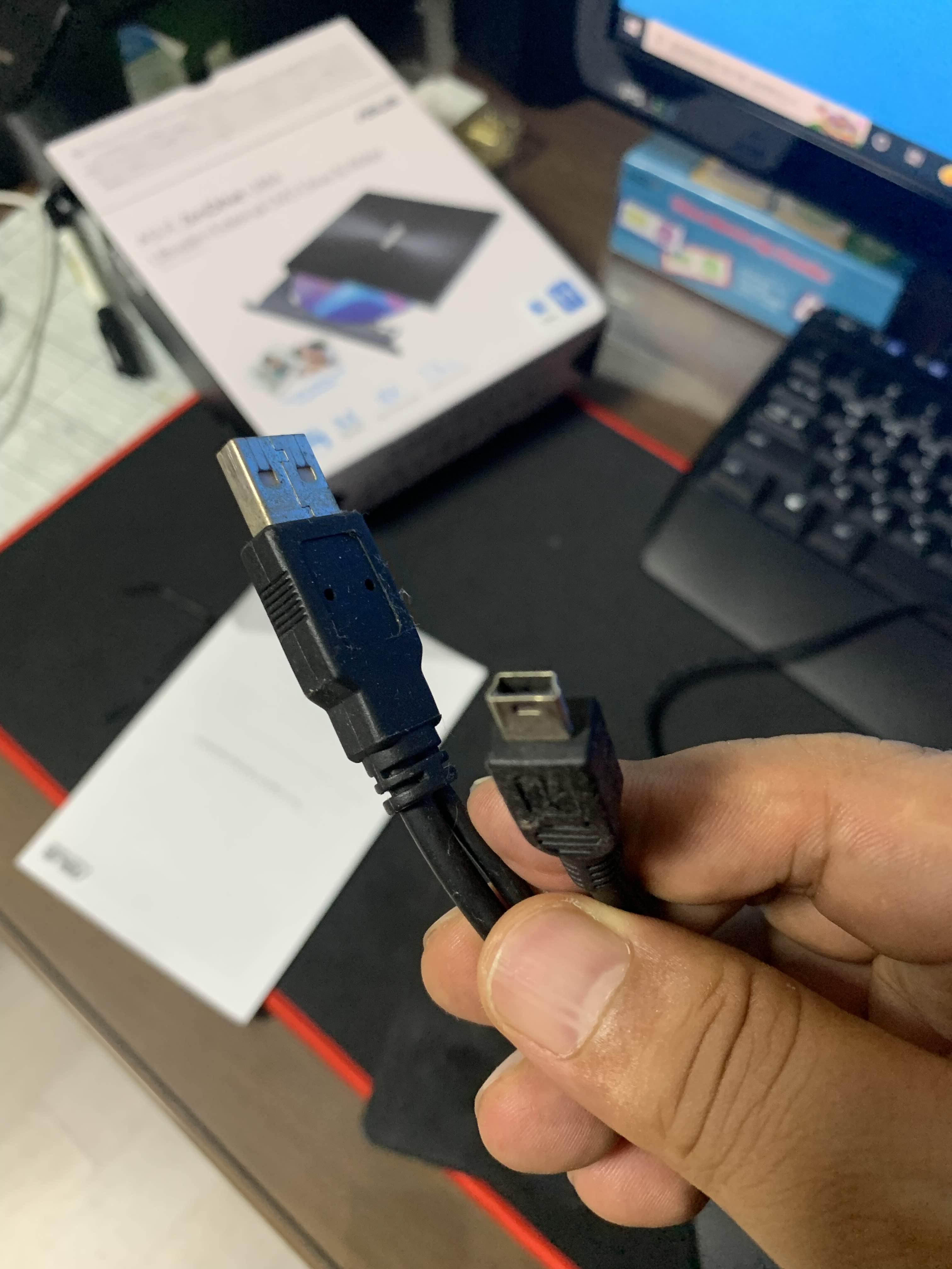 반대편이 USB-C타입이라... 컴퓨터에 바로 꼽을 수 있는 케이블이 필요하다. 대략 난간 한 상황에서 예전에 사용했던 USB 외장 HDD 케이블이 있어서 찾아보니 타입이 맞는 타입이다. 외장 CD롬 사용 빈도는 극히 적다!! 아이들용 학습 CD를 MP3로 변화하는 정도.... 1년에 3~4번 정도 사용하는 용도라...