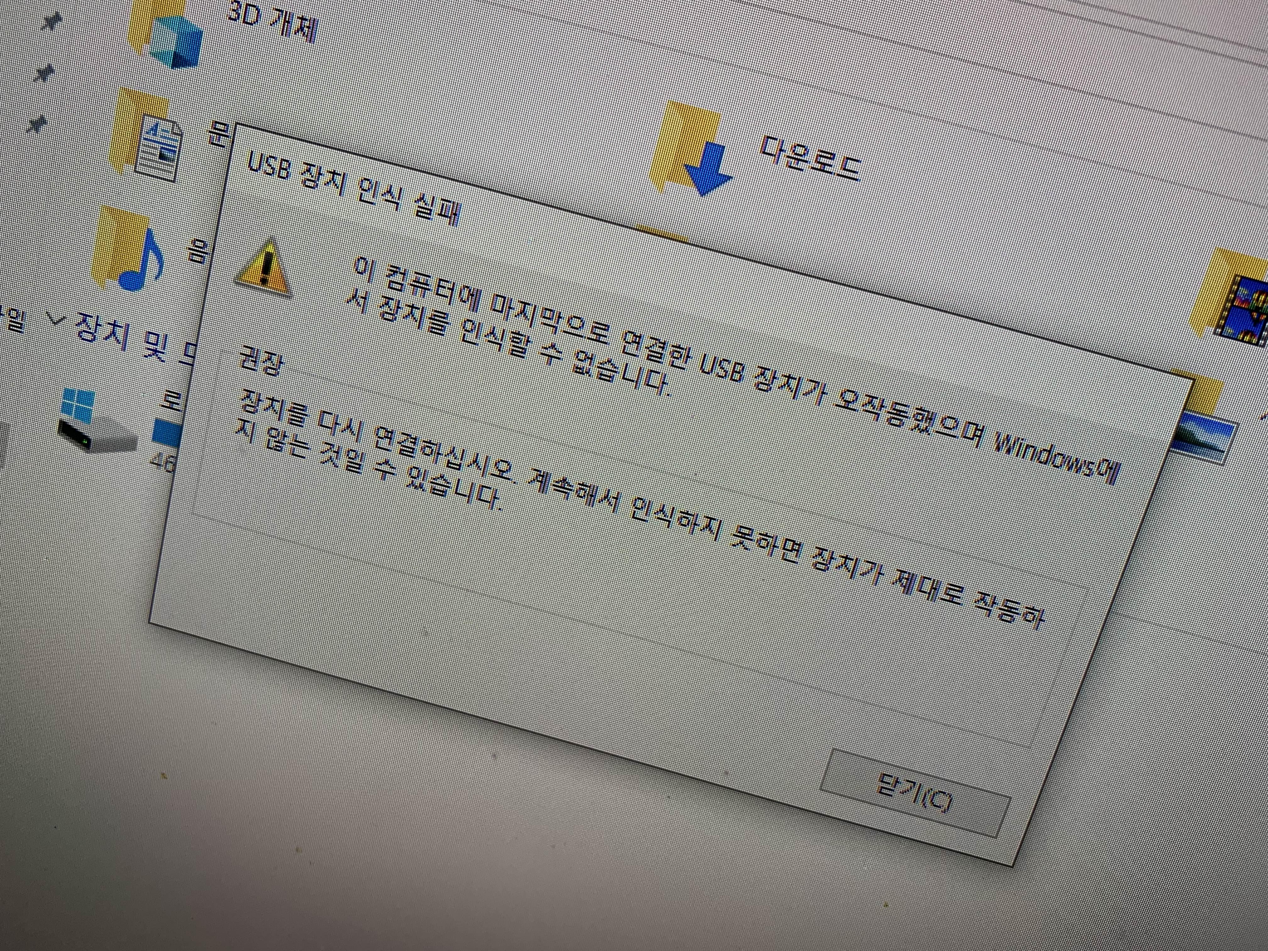 다른 방법으로도 여러 번 시도해보아도 인식이 안된다.