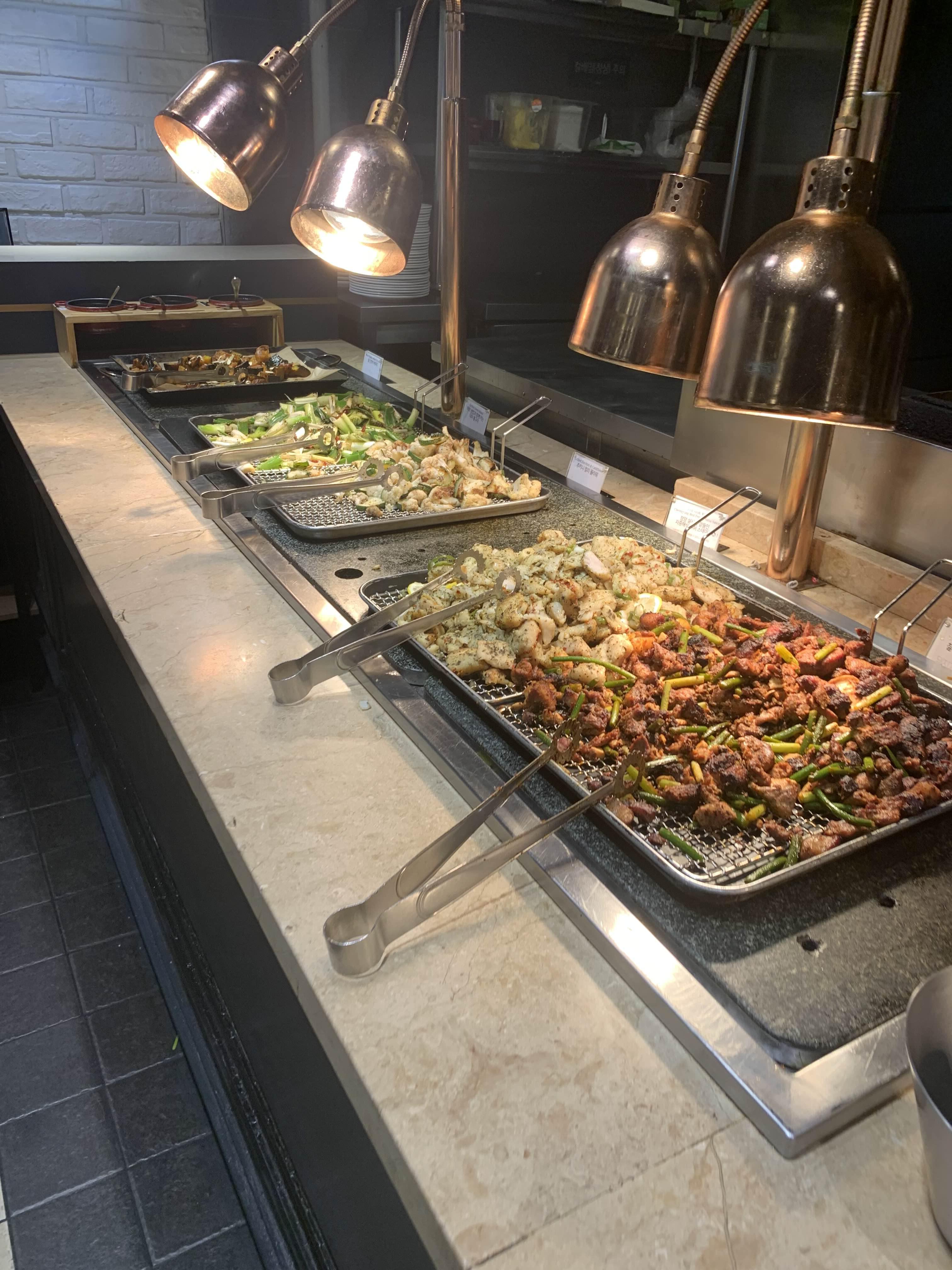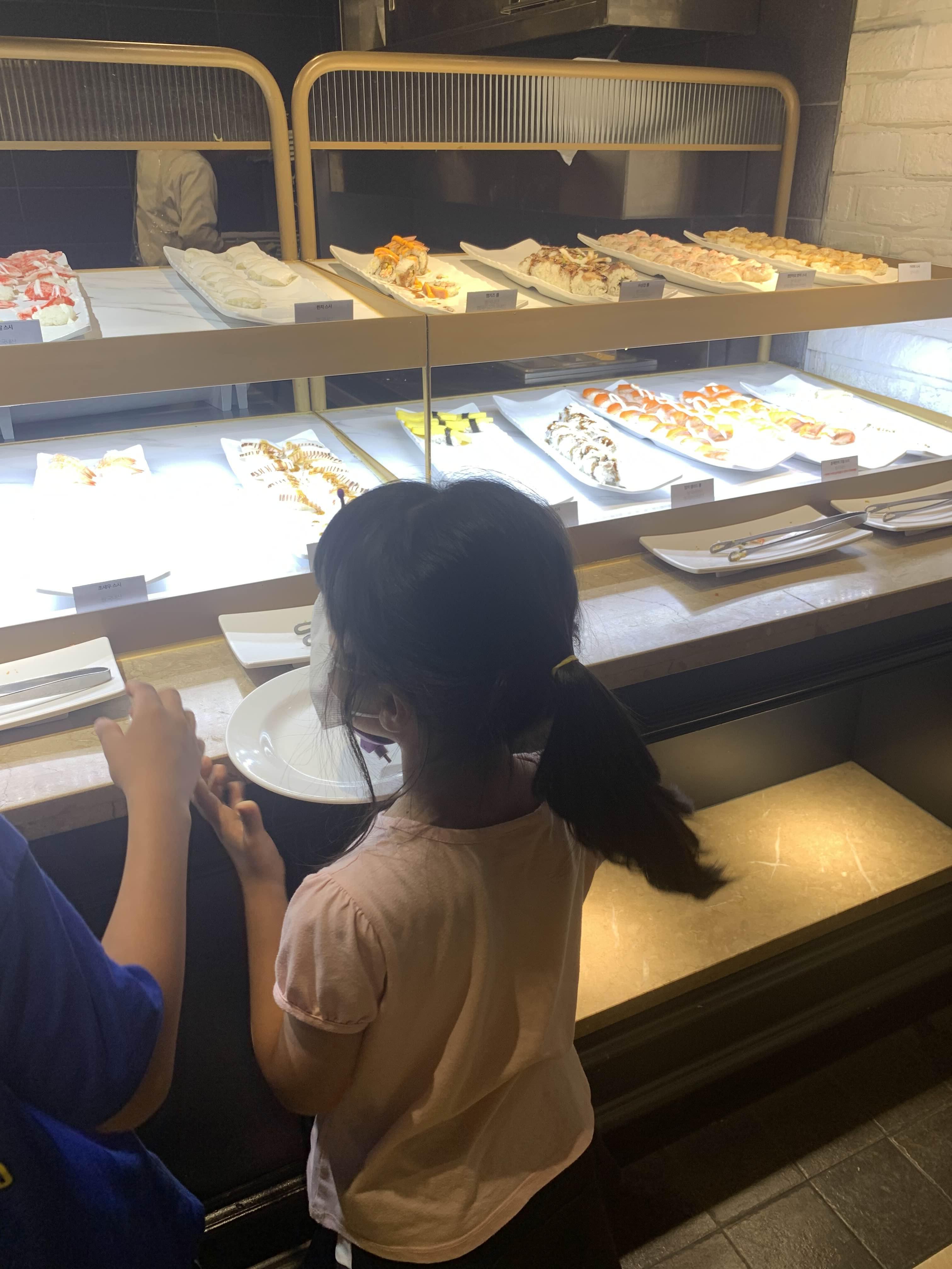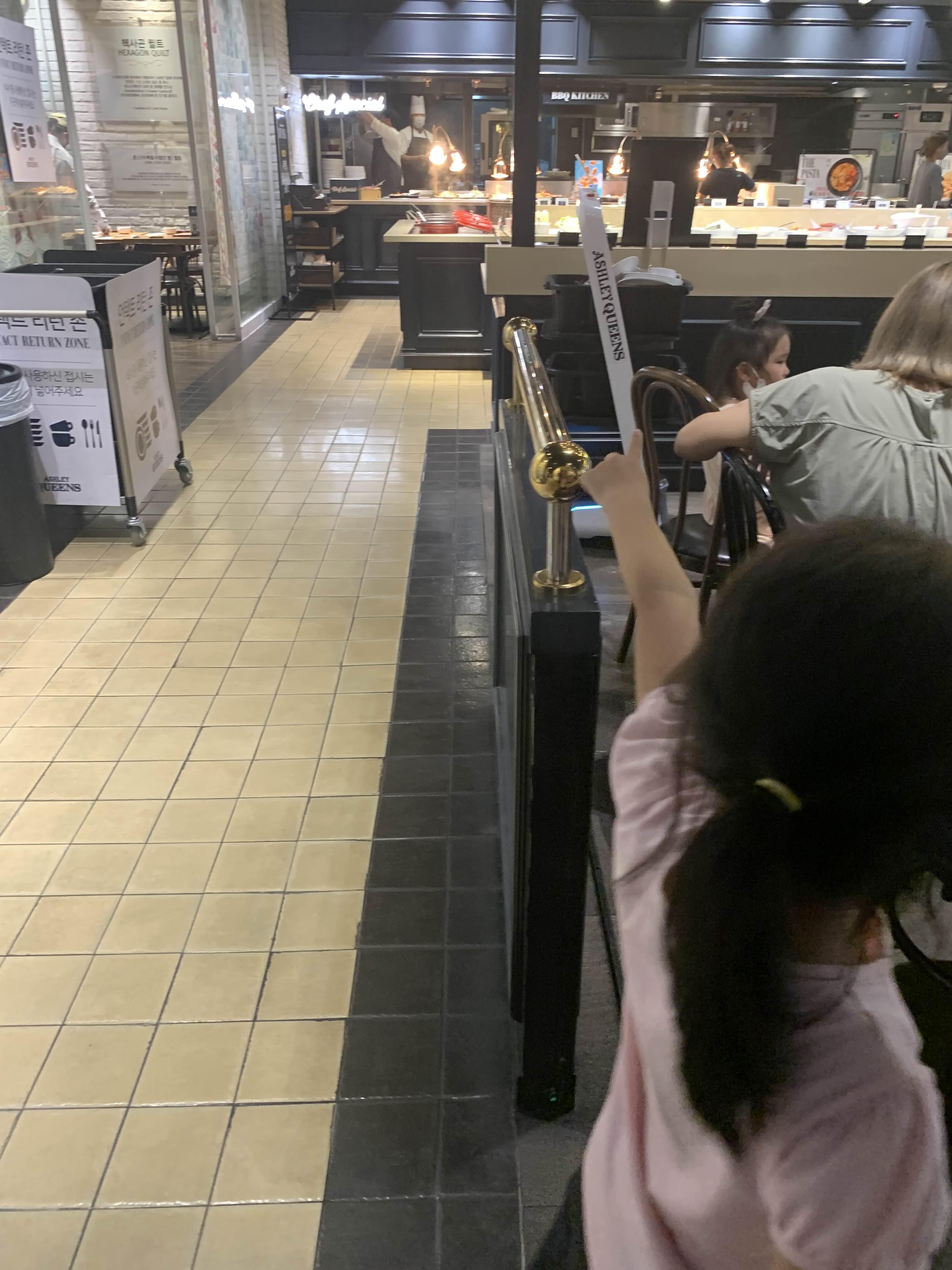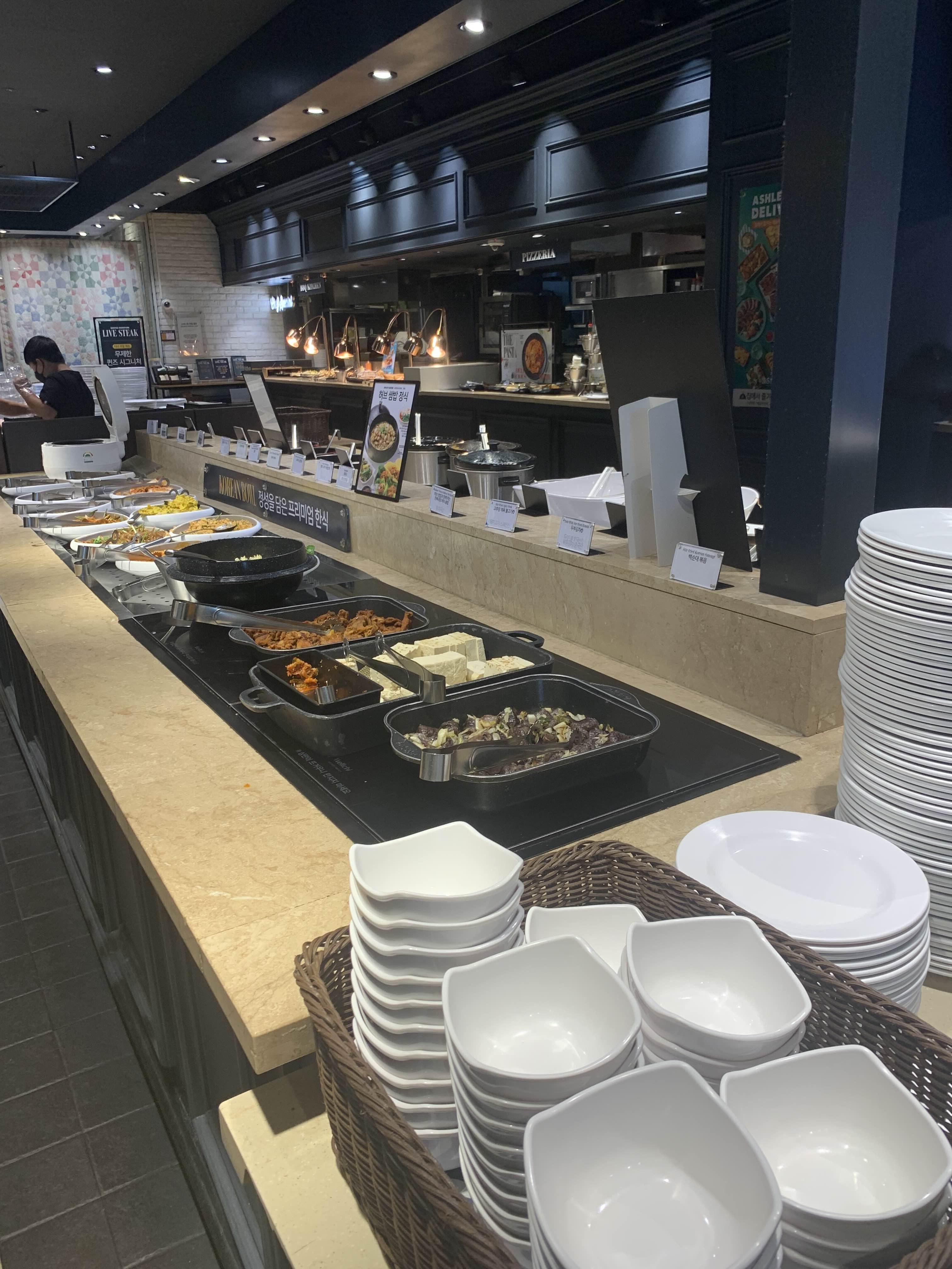 초등학생이 음식을 담기에는 그릇이 좀 높게 설치되어 있었다. 아이들에게는 배식하기 좀 부담스러운 높이이다. 음식도 아이들 구성이라기보다는 성인 20~30대 위주로 구성되었다는 느낌이 강하다. 손님들도 20~30대 손님들이 많이 보인다. 아이들에게는 애슐리보다는 쿠우 쿠우가 더 손이 가는 음식들이 있는 거 같다. 나에게는 애슐리나 쿠우쿠우나.. 비슷비슷하다.