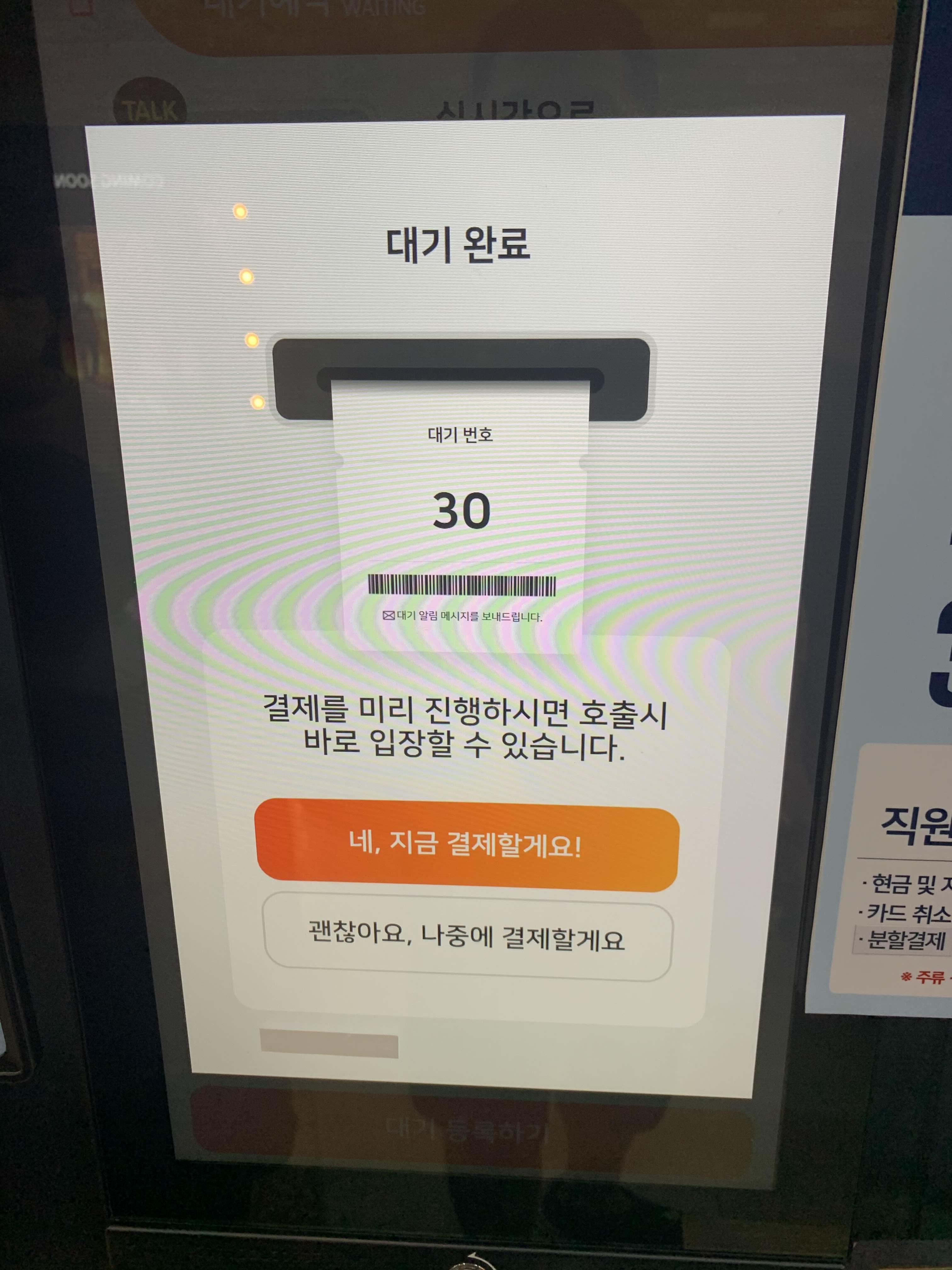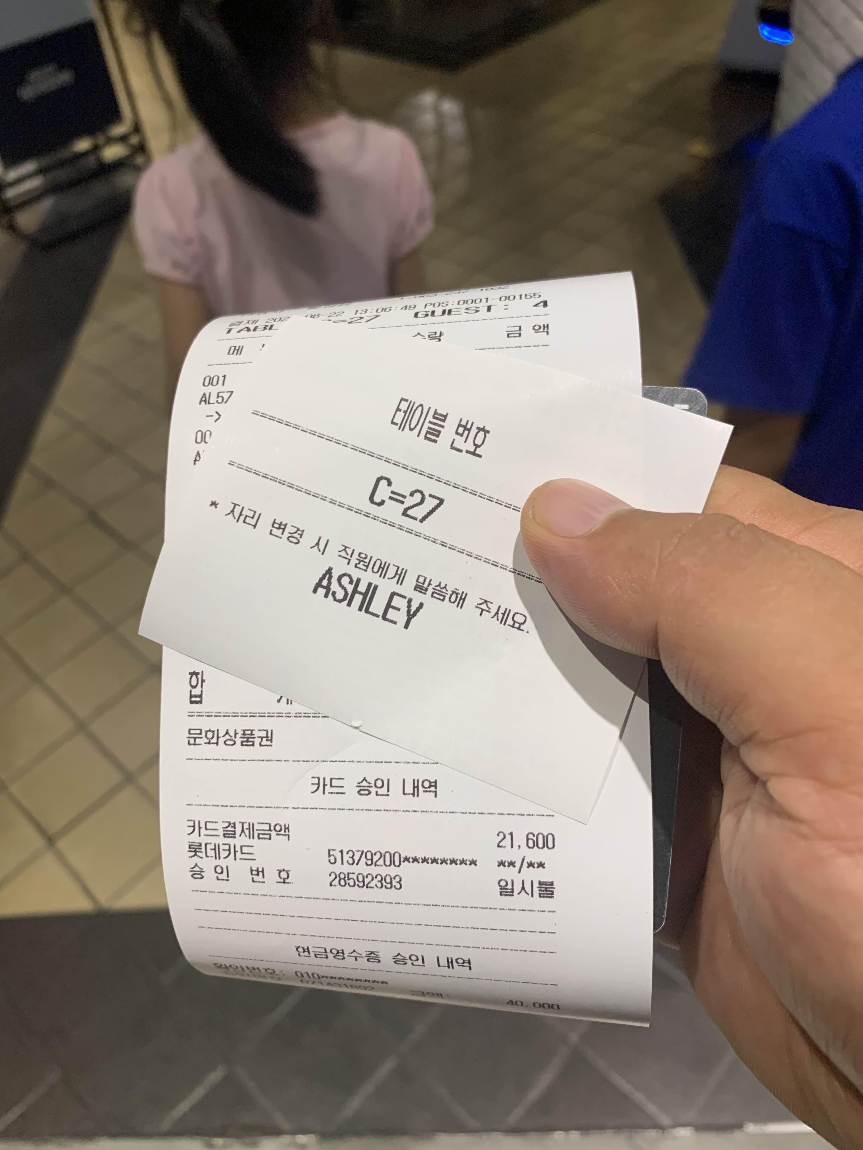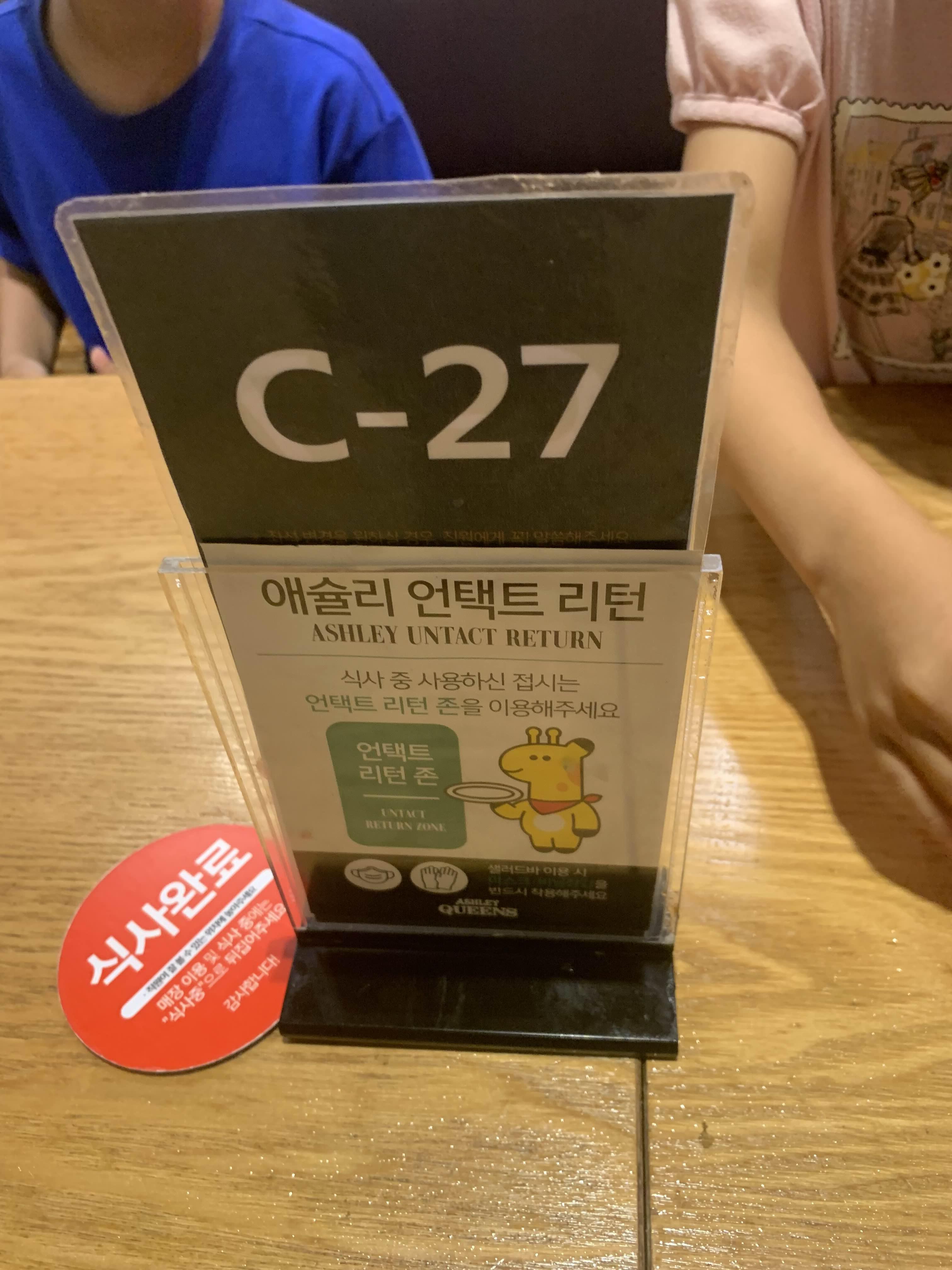 오후 12시 10분 정도 방문하여 예약을 걸었는데... 내 앞 웨이팅이 20팀이 있다는 문자가..... 식당 앞 대기 손님들이 모두 내 앞에서 기다리는 대기 손님들이었습니다. 왜 이리 기다리는 손님들이 많은지... 기다릴까? 말까? 고민하다가... 오랜만에 방문한 애슐리 라 기다리기로 하고 대기~~~