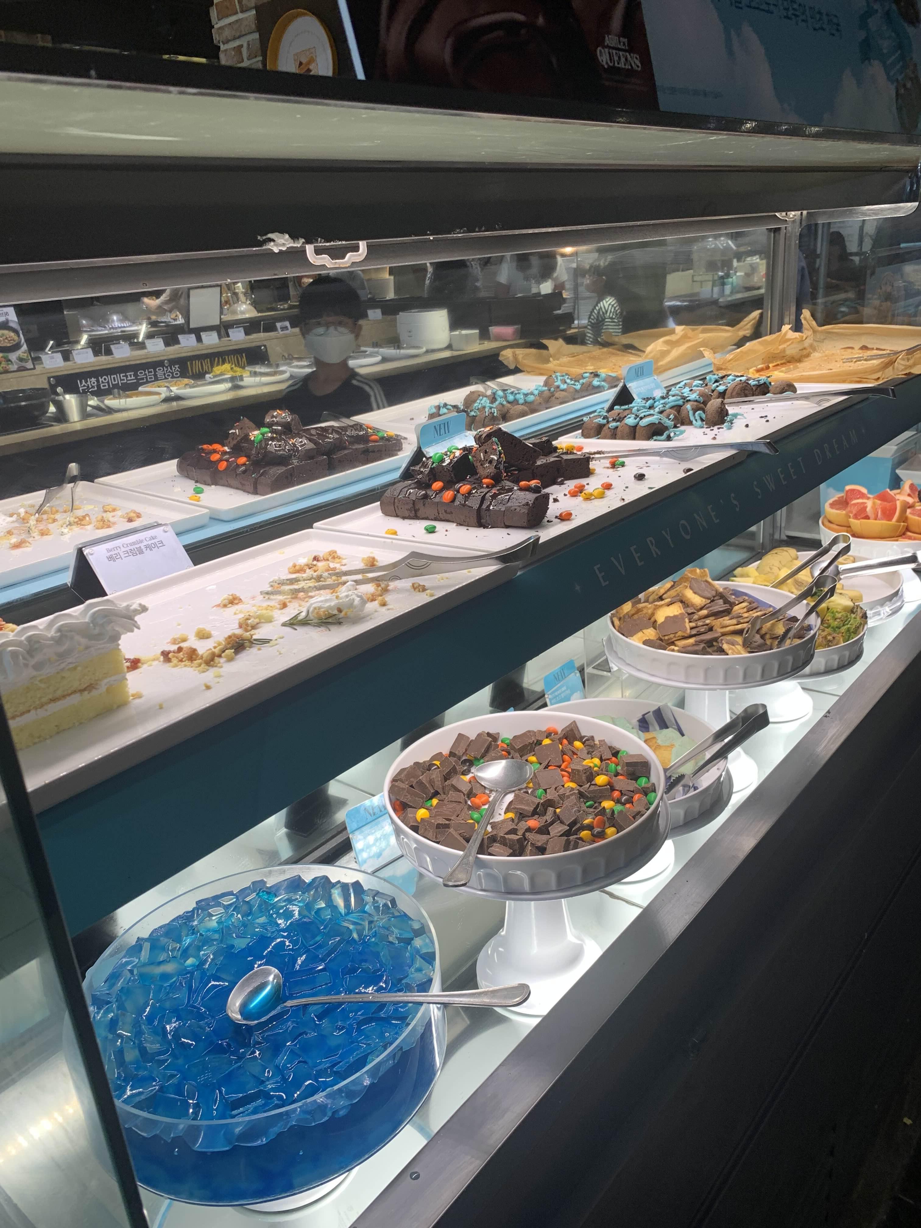 후식으로 아이스크림~ 아이들이 좋아하는 아이스크림! 쿠우쿠우에서는 슬러시! 아이들이 좋아할 만한 세팅! 여기는 성인이 좋아할 만한 세팅~