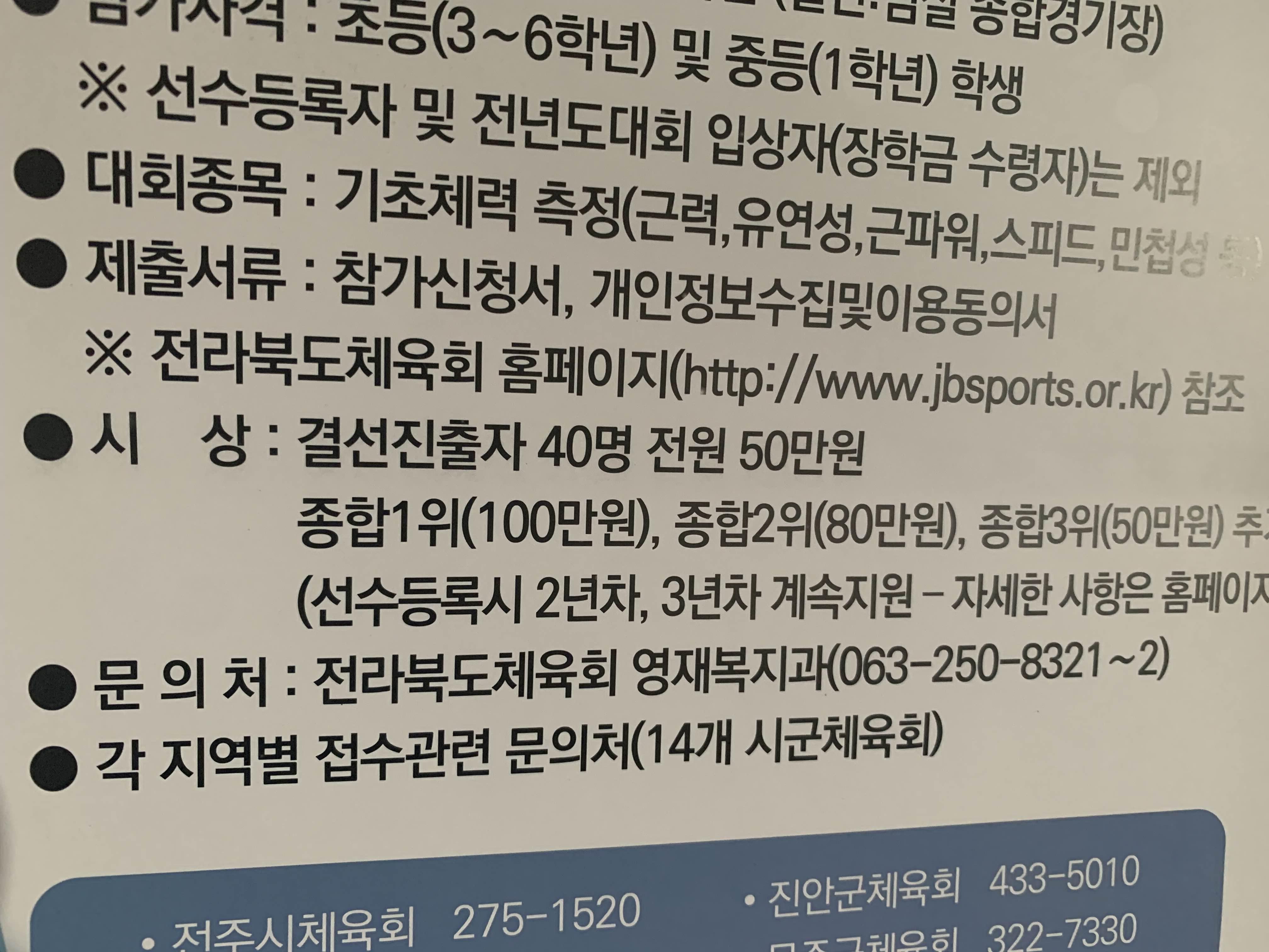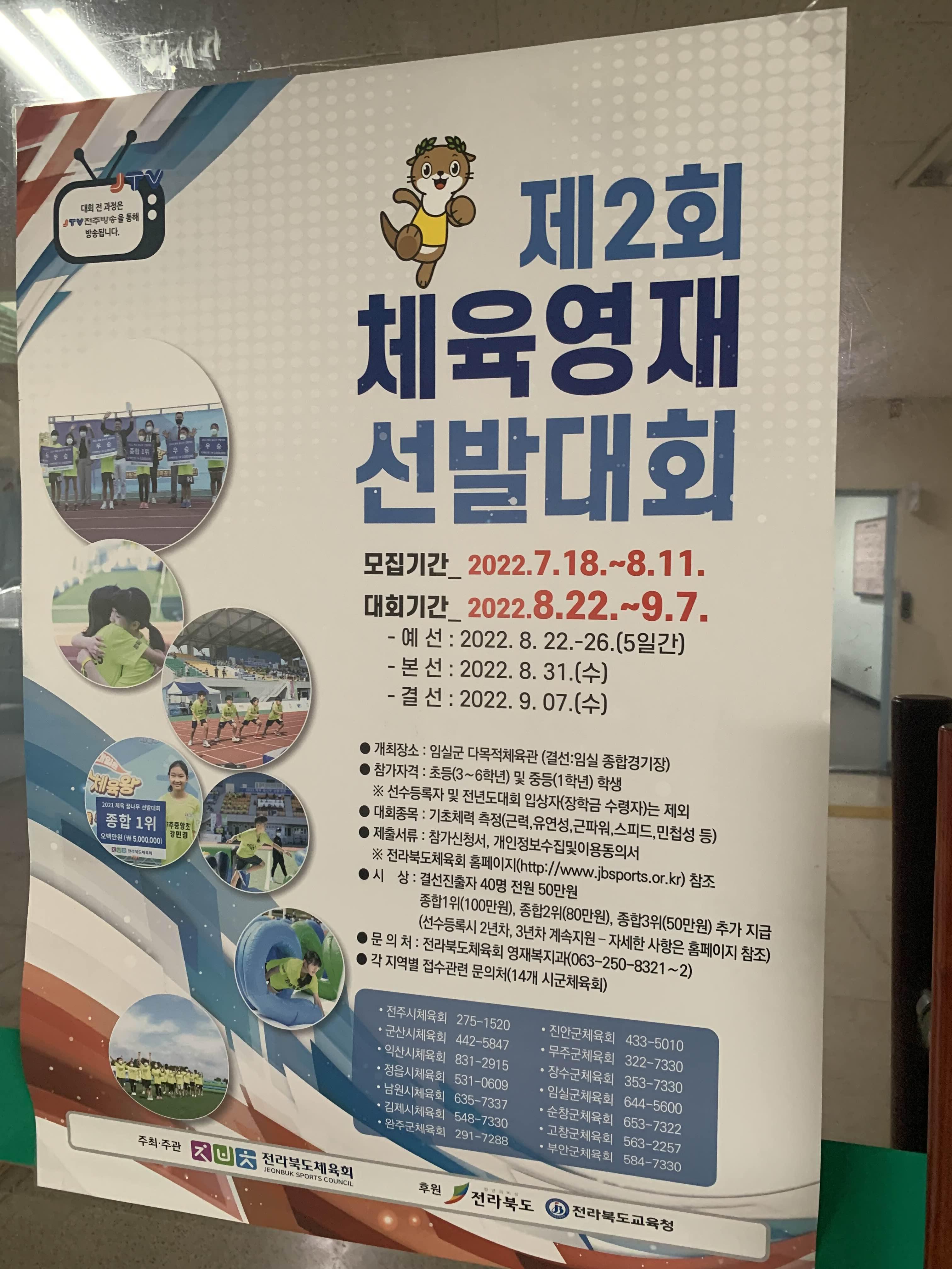 전라북도체육회에서 주최하는 제2회 체육영재 선발대회!!! 자녀와 이야기하며.... 본선 진출자 40명에게 지급하는 50만 원 상금에 대하여 이야기하며.... 신청하게 된 선발대회 후기입니다.