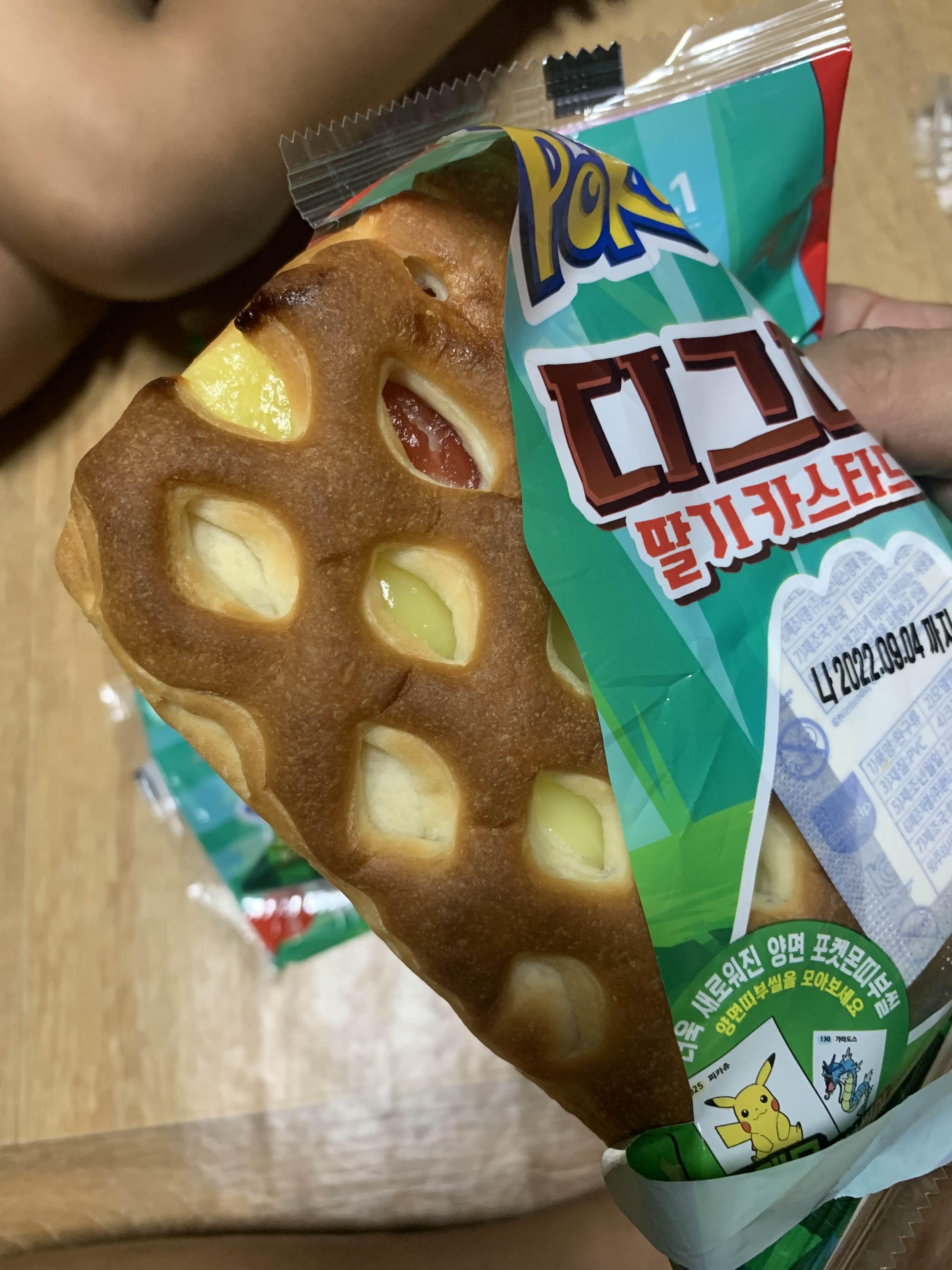 포켓몬빵 중 냉동보관 후 맛보기 괜찮은 빵이다. 빵 봉지 뒤편의 제품명이 포켓몬 캐릭터 이름이 안 들어간 유일한 빵이다. 빵 맛은 포켓몬빵 중 중간중간 정도 하는.... 무난한 게 먹기 좋은 빵!