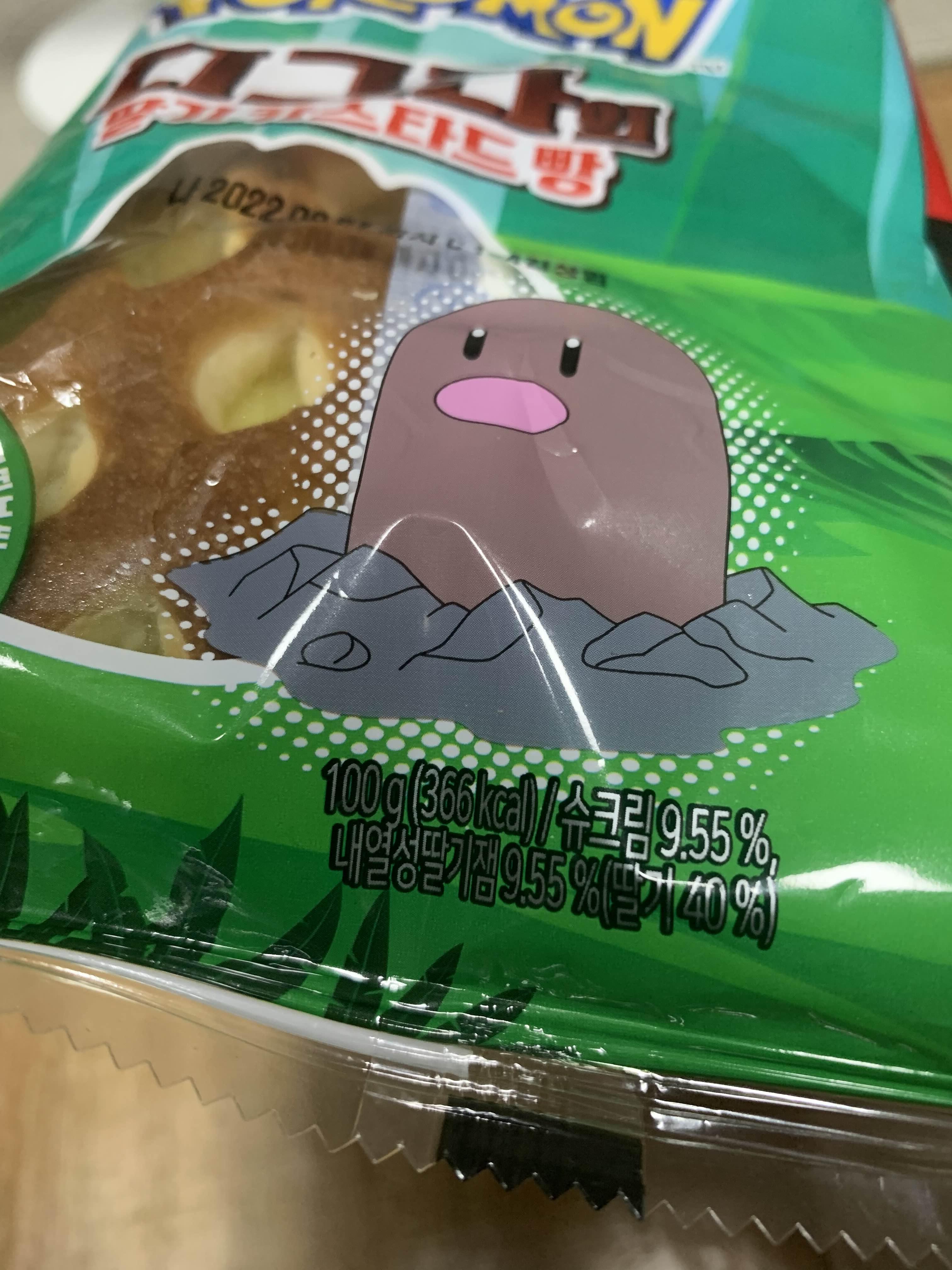 포켓몬빵 중 유일하게 제품명이 다르게 표기된 포켓몬빵입니다. 다른 포켓몬빵은 디그다, 로켓단, 꼬북이, 발챙이 등등 포켓몬의 명칭이 들어가는데... 유일하게 "디그다" 명칭이 빠진 빵이네요.ㅎㅎ