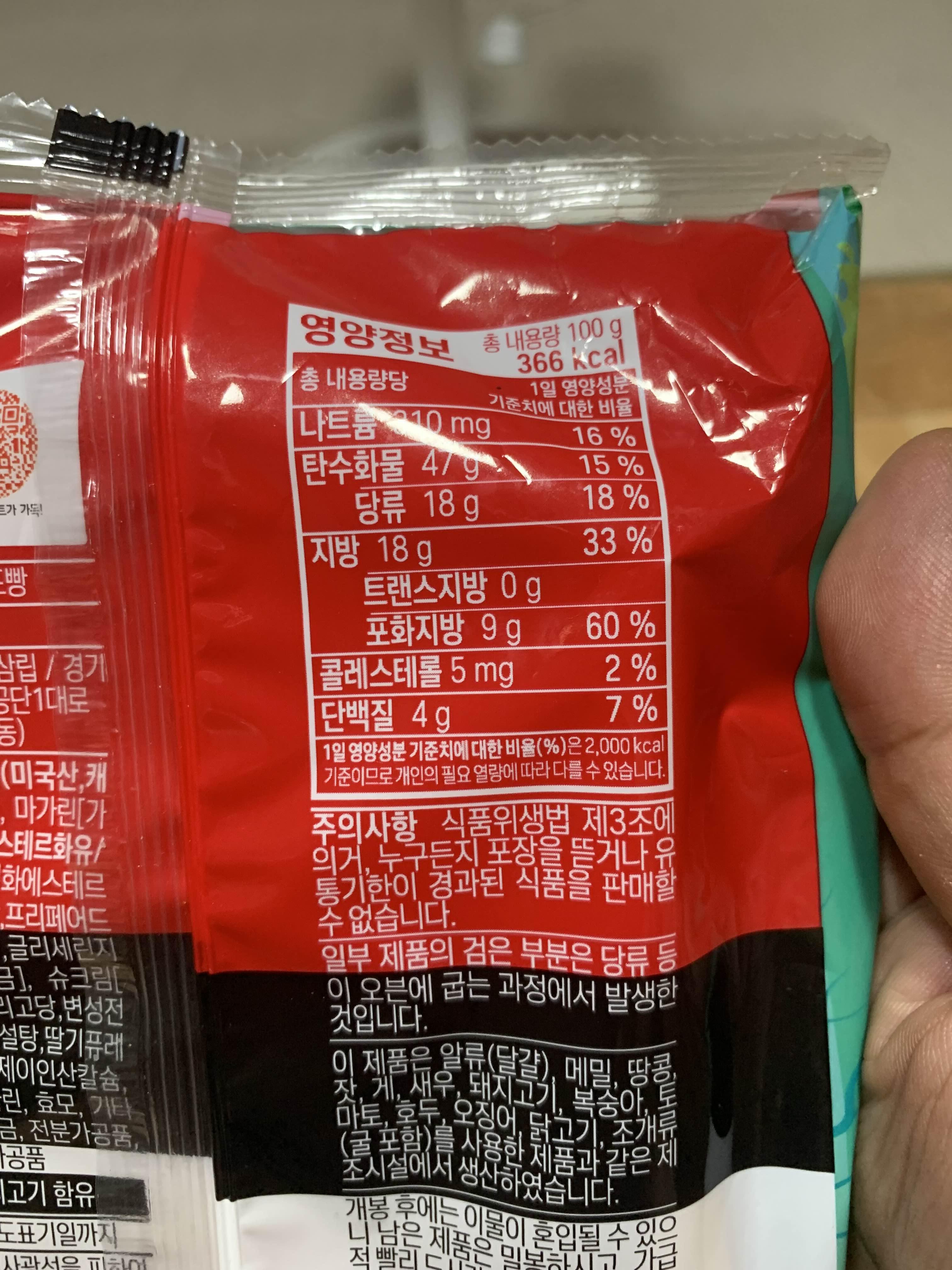 빵의 용량이 100g으로 다른 빵에 비해서 용량이 많고, 열량도 366칼로리로 열량이 낮은 편은 아닙니다. 아무래도 딸기잼과 슈크림이 들어있는 빵이다 보니..... 칼로리가 높게 나오는 빵이네요.ㅎㅎ