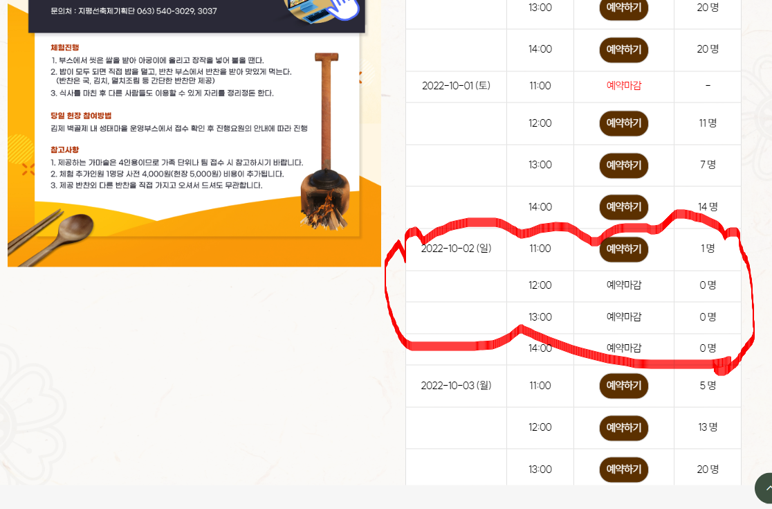그래도, 다시 예약하면 되니... 큰 문제가 아닐 거라 생각하고, 예약사이트로 접속해 보았습니다. 내가 축제에 방문하는 날짜에 모두 예약이 마감되었습니다.