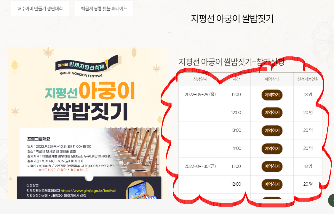 사전예약 사이트 : https://www.gimje.go.kr/festival/index.gimje