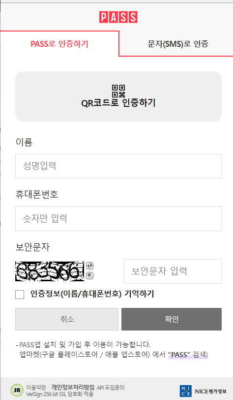 평소 패스 인증을 자주 사용하여 페스로 인증을 완료하였습니다.