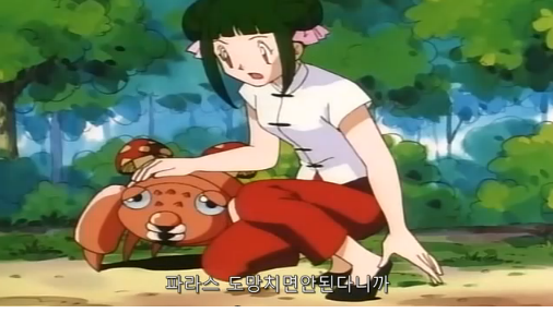 애니메이션은 파라스의 눈동자의 색상은 흰색으로 표현되어 있습니다.