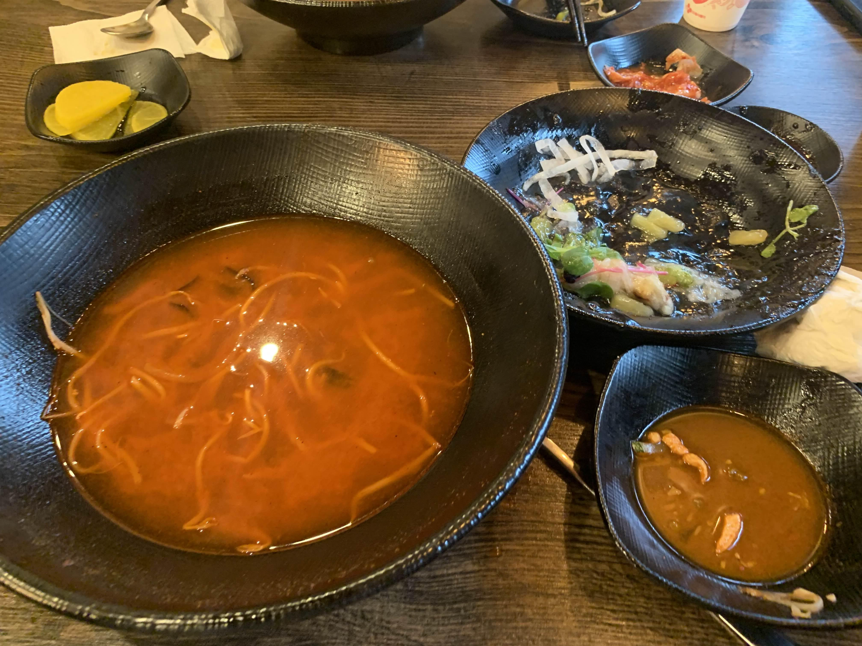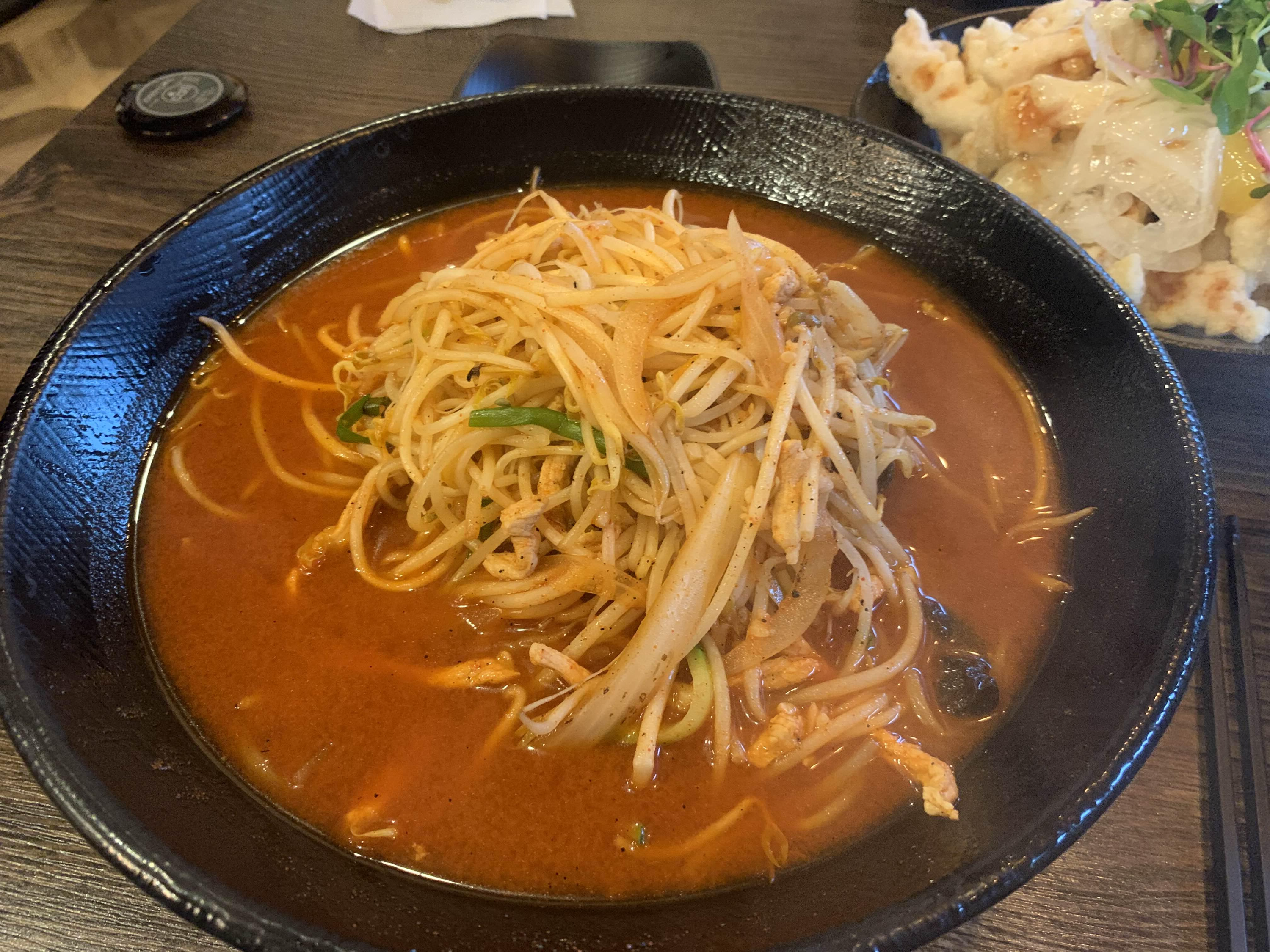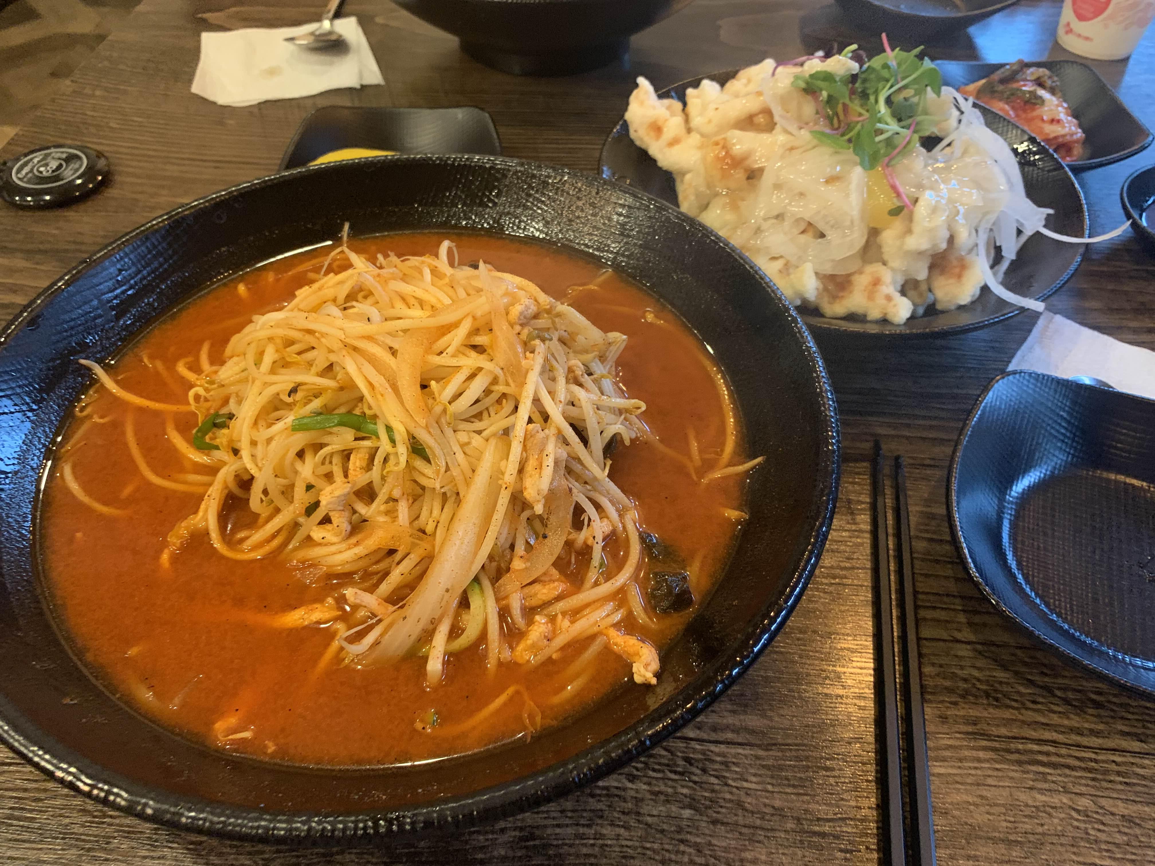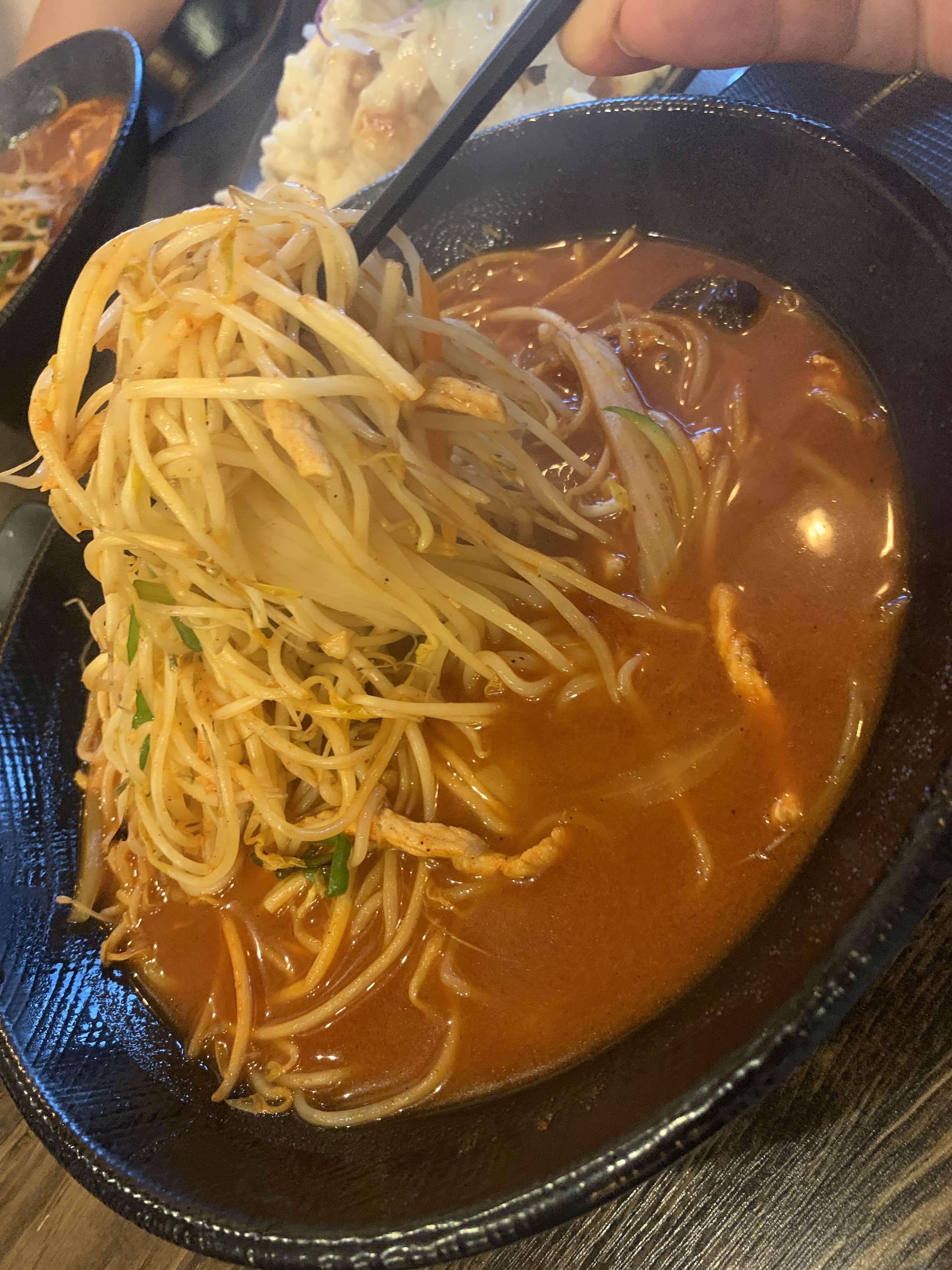탕수육을 맛보는 사이 오늘은 메인 요리?! 고기 짬뽕이 나왔습니다. 고기 짬뽕의 양은 상당한 양!!! 이걸 어떻게 다 먹지?라는 생각이 들더군요. 고기 짬뽕은... 고기는 안 보이고, 숙주가 많이 들어있더군요. 고기 짬뽕이라는 이름보다는 숙주 짬뽕이 더 어울릴듯한 짬뽕입니다. 숙수의 식감이 좋아서~ 숙주와 면발을 함께 단무지와 함께 후루룩 줍줍~