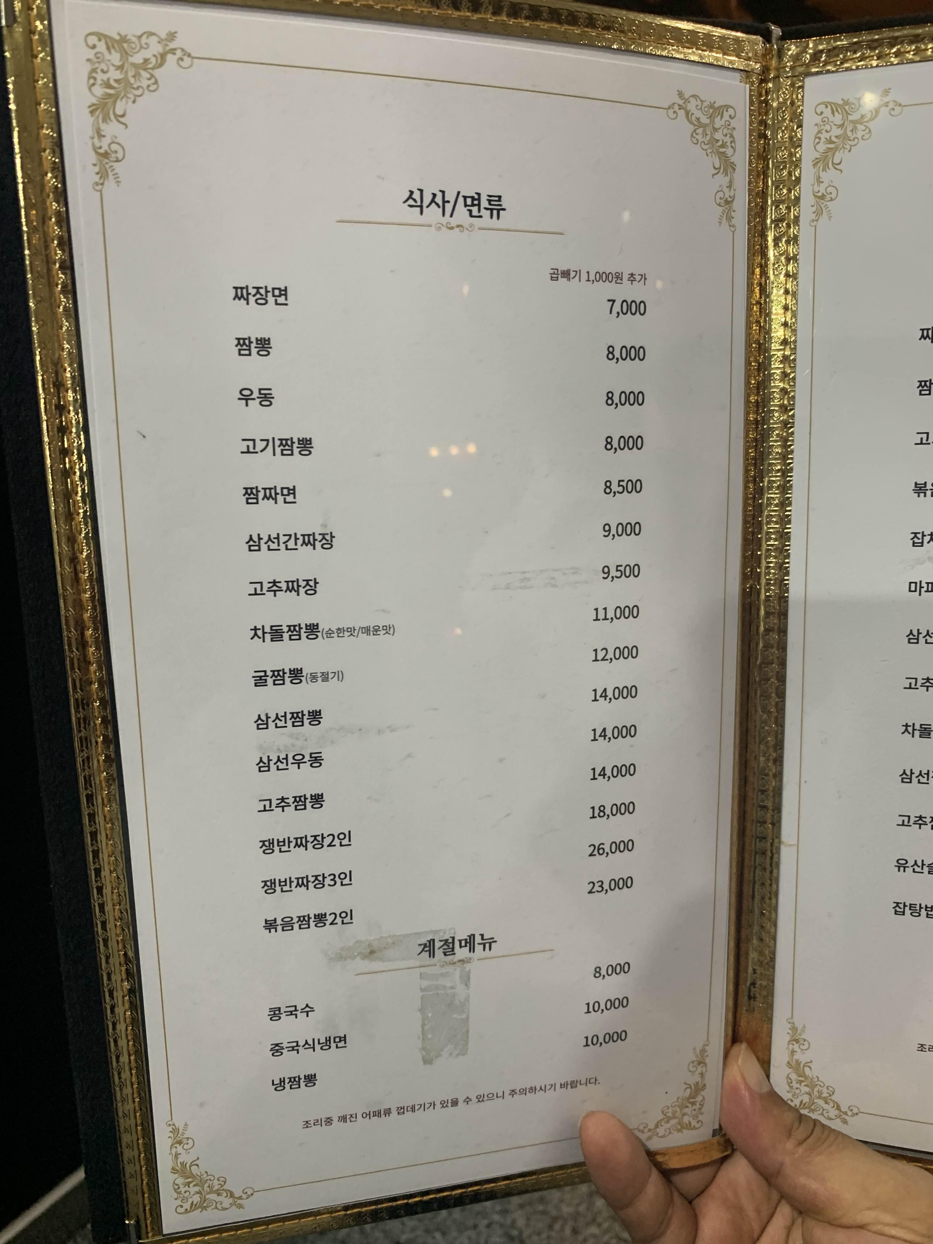 많은 비가 내리는 어느 날 짬뽕을 먹기 위해 찾아간 블랙 차이나!!! 이른 점심식사로 인하여 빠르게 주문하고 식사하려 했으니... 이른 시간인데도 많은 사람들이 있더군요. 대기순서 6번!!! 대기하며 미리 식사를 주문했습니다. 기본 짬뽕은 전에 맛보았으니... 오늘은 고기 짬뽕, 그리고 탕수육을 주문해 보았습니다. 고기 짬뽕은 8,000원, 탕수육 작은 거는 18,000원~