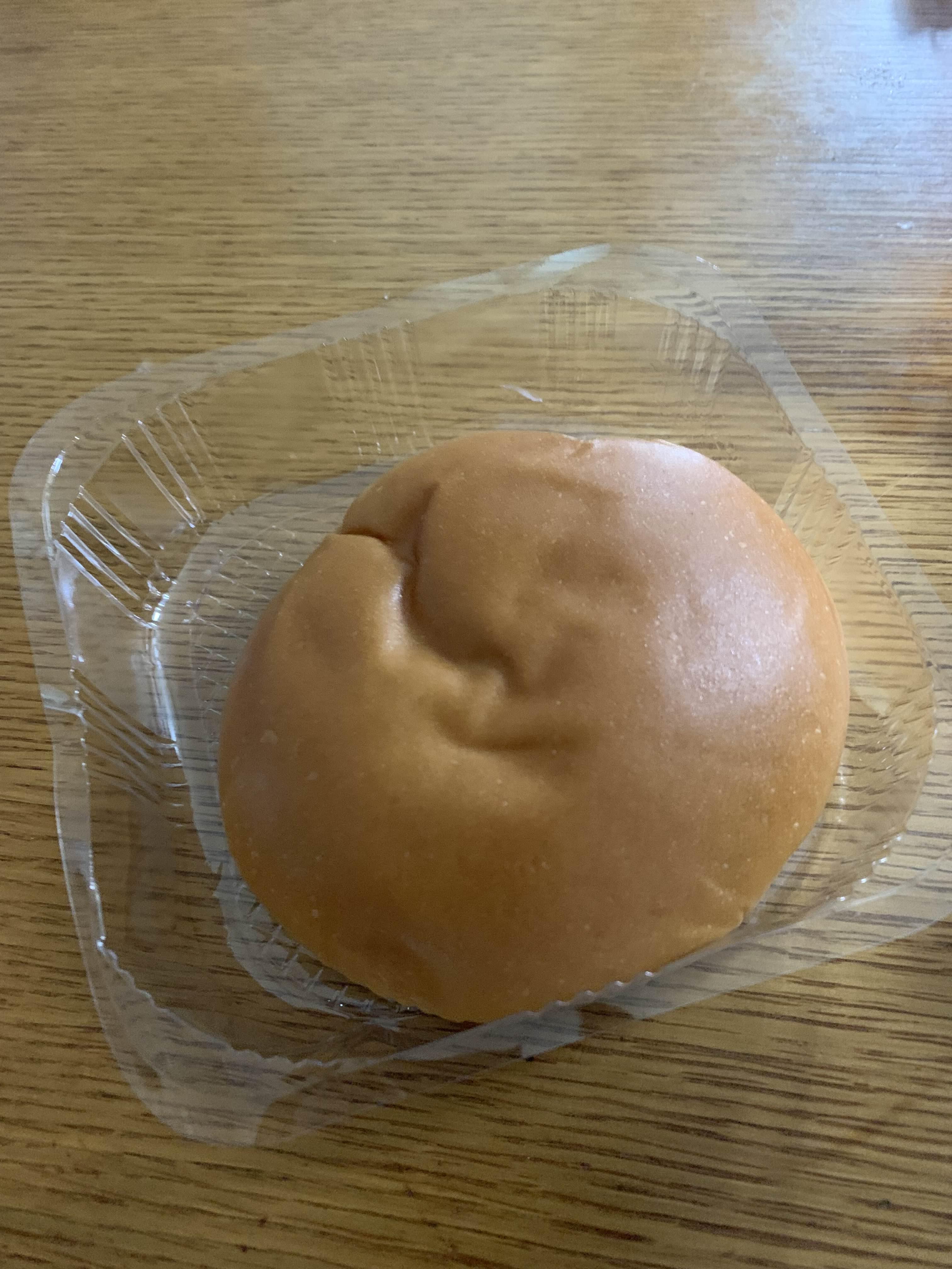 빵을 개봉하면, 플라스틱 깍대기에 방이 덩그러니 하나 있다. 빵의 비주얼은 꼭 찐빵 같은 느낌이~