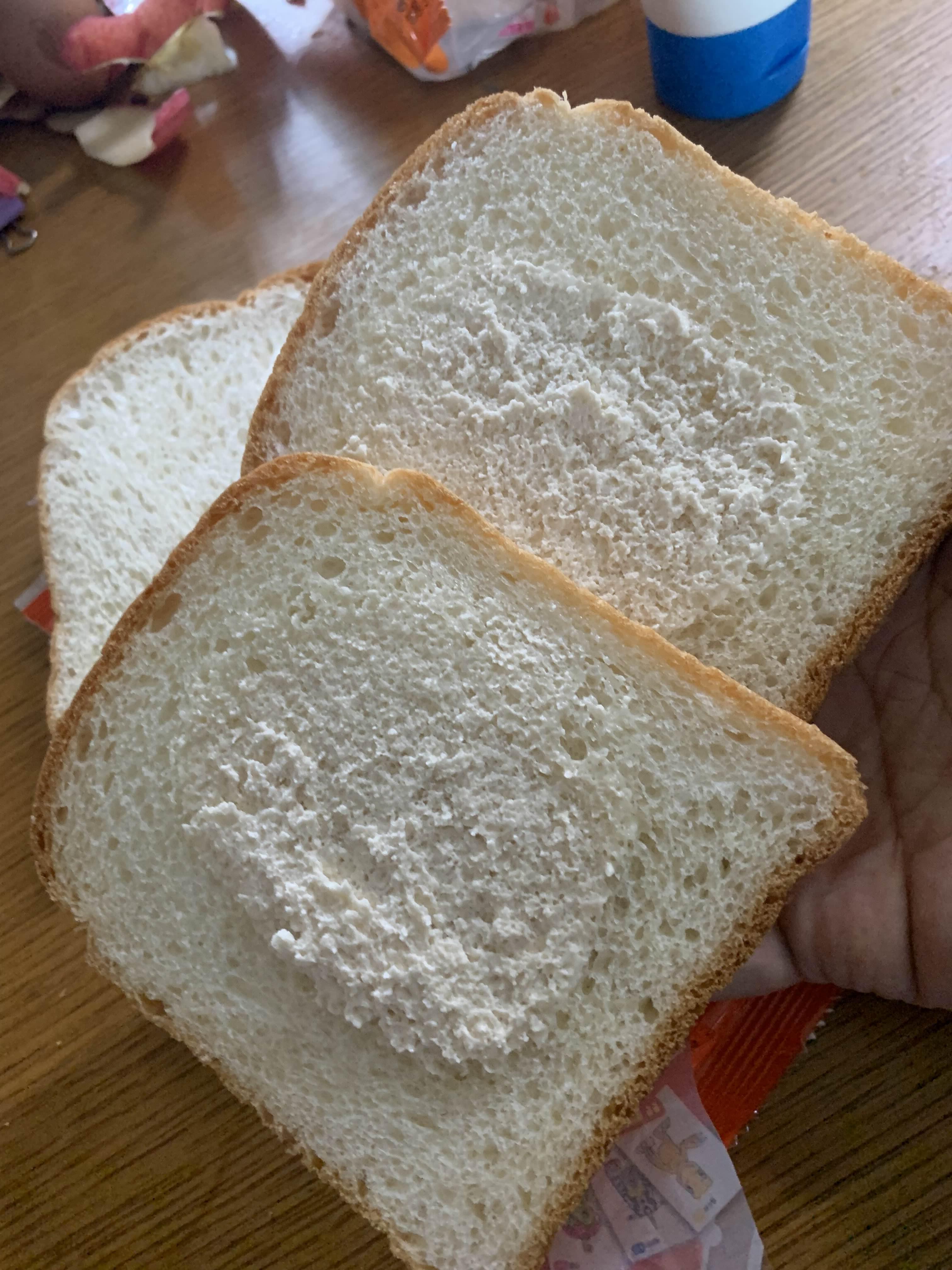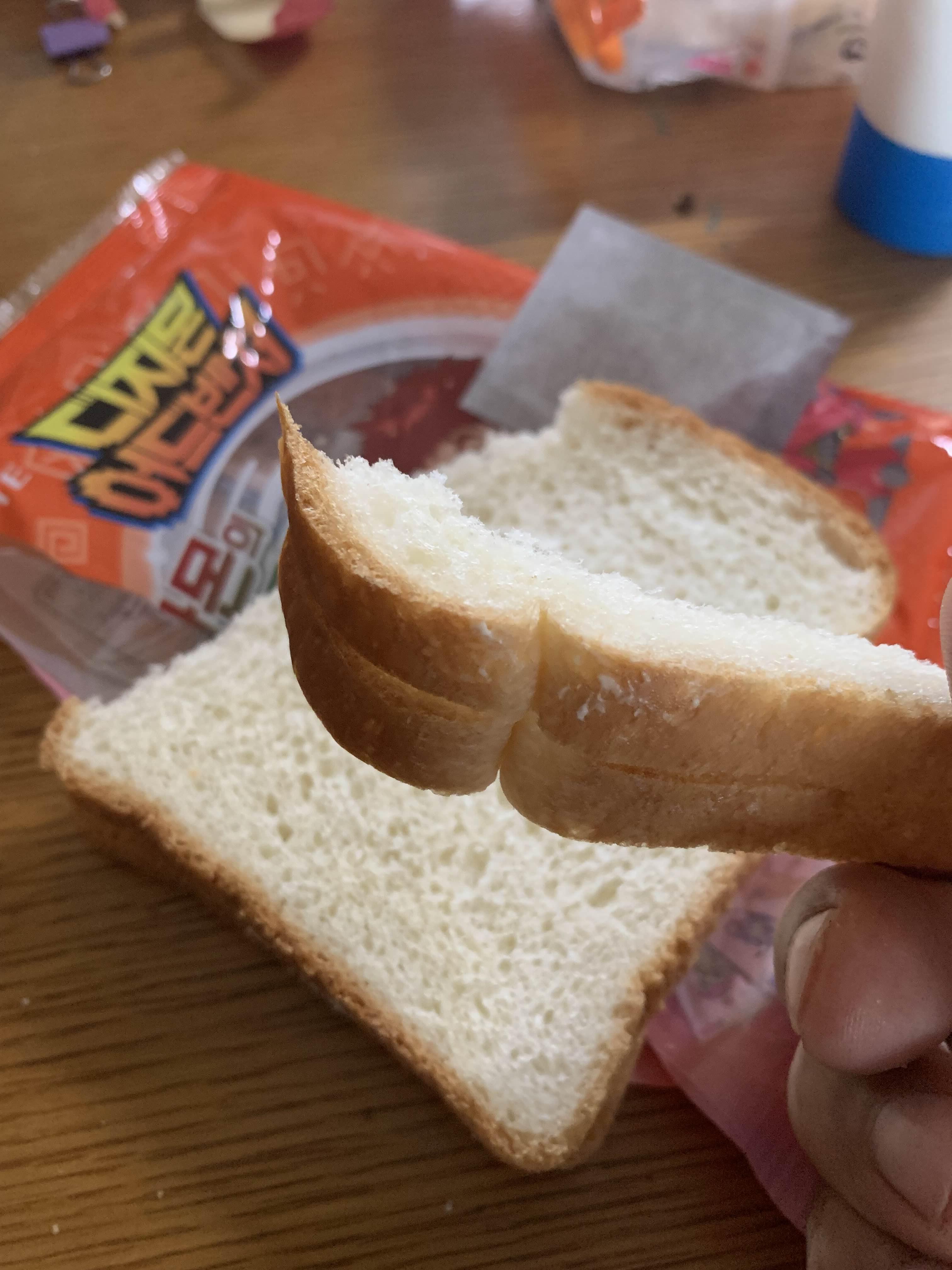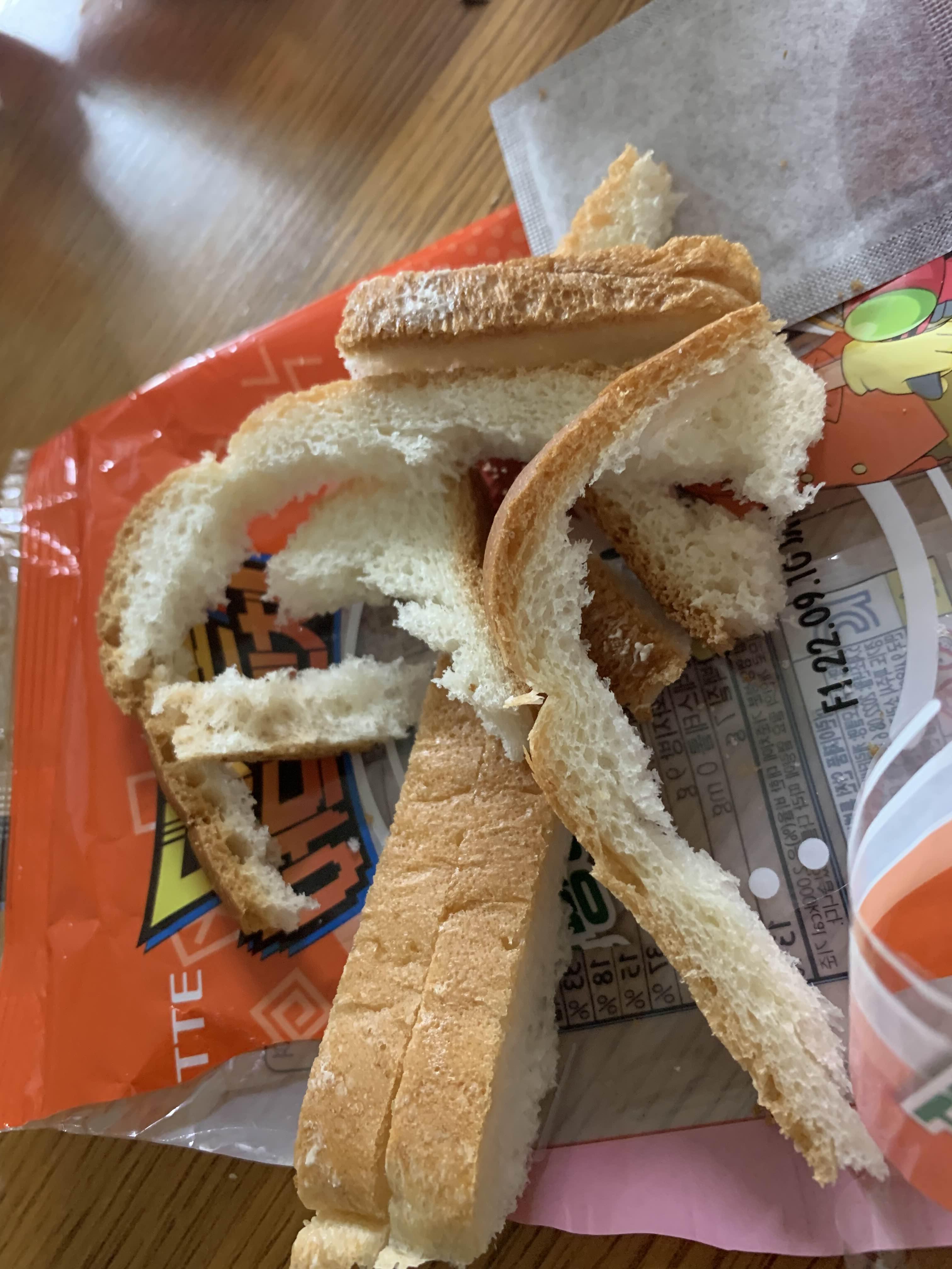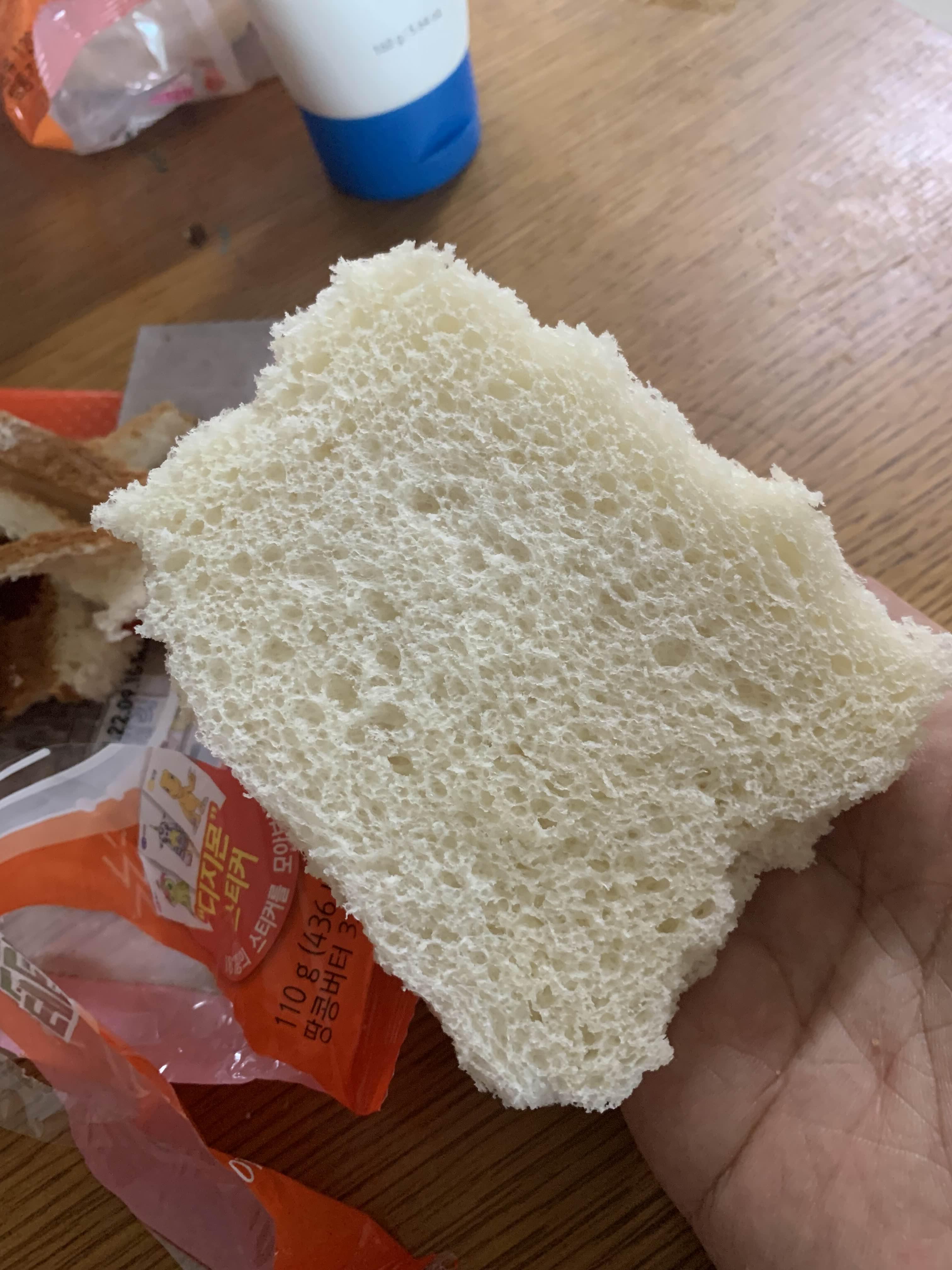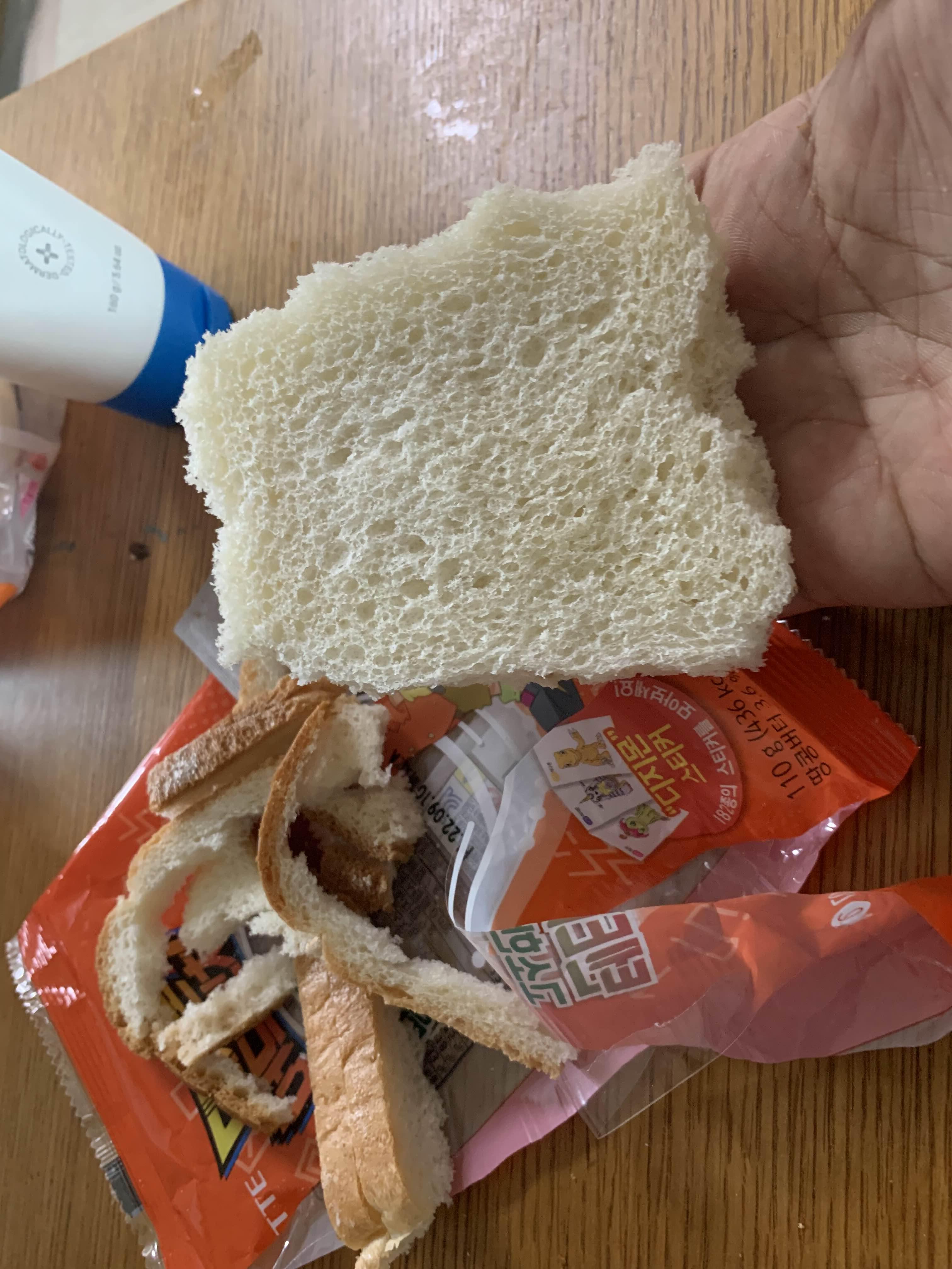역시나 식빵의 끝부분이 상당히 푸석거리더군요. 일반적으로 먹었던 식빵보다 더 푸석이 었던 끝부분!!! 끝부분을 제거하고 먹기 위해 모두 제거!!! 그리고, 맛보는데.... 아!!! 끝부분만이 아니라, 빵 자체가 푸석거렸음;;;