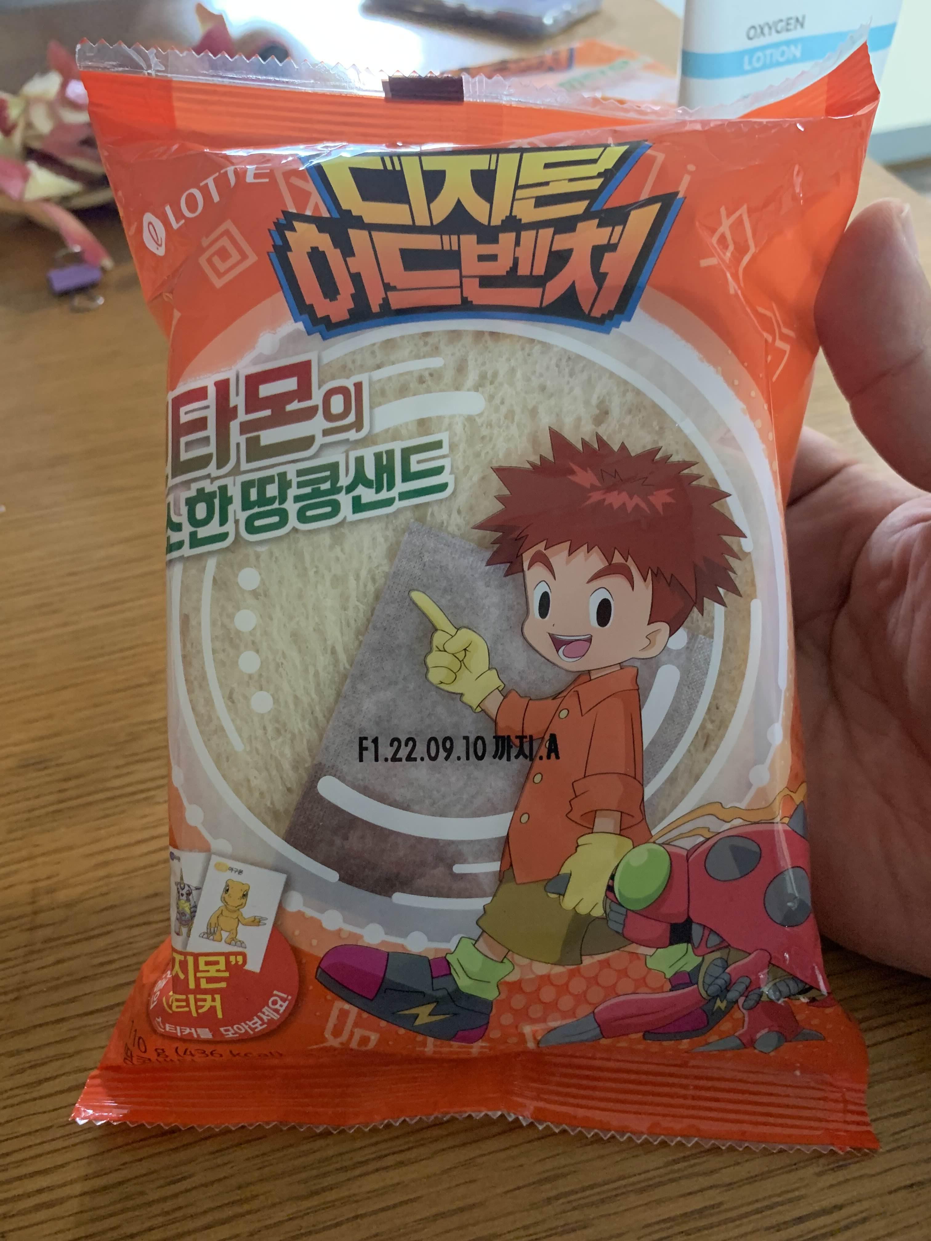 디지몬 빵의 마지막 후기 "텐타몬이 고소한 땅콩샌드"입니다. 현재 디지몬 빵은 4가지 종류의 빵이 출시되었습니다. 4개 모두 맛보았는데.... 2개는 그나마 먹을 수 있고, 나머지 2개는 먹기가 힘들었던 빵입니다. 땅콩샌드는..... 먹기 힘들었던 빵!!!ㅠㅠ
