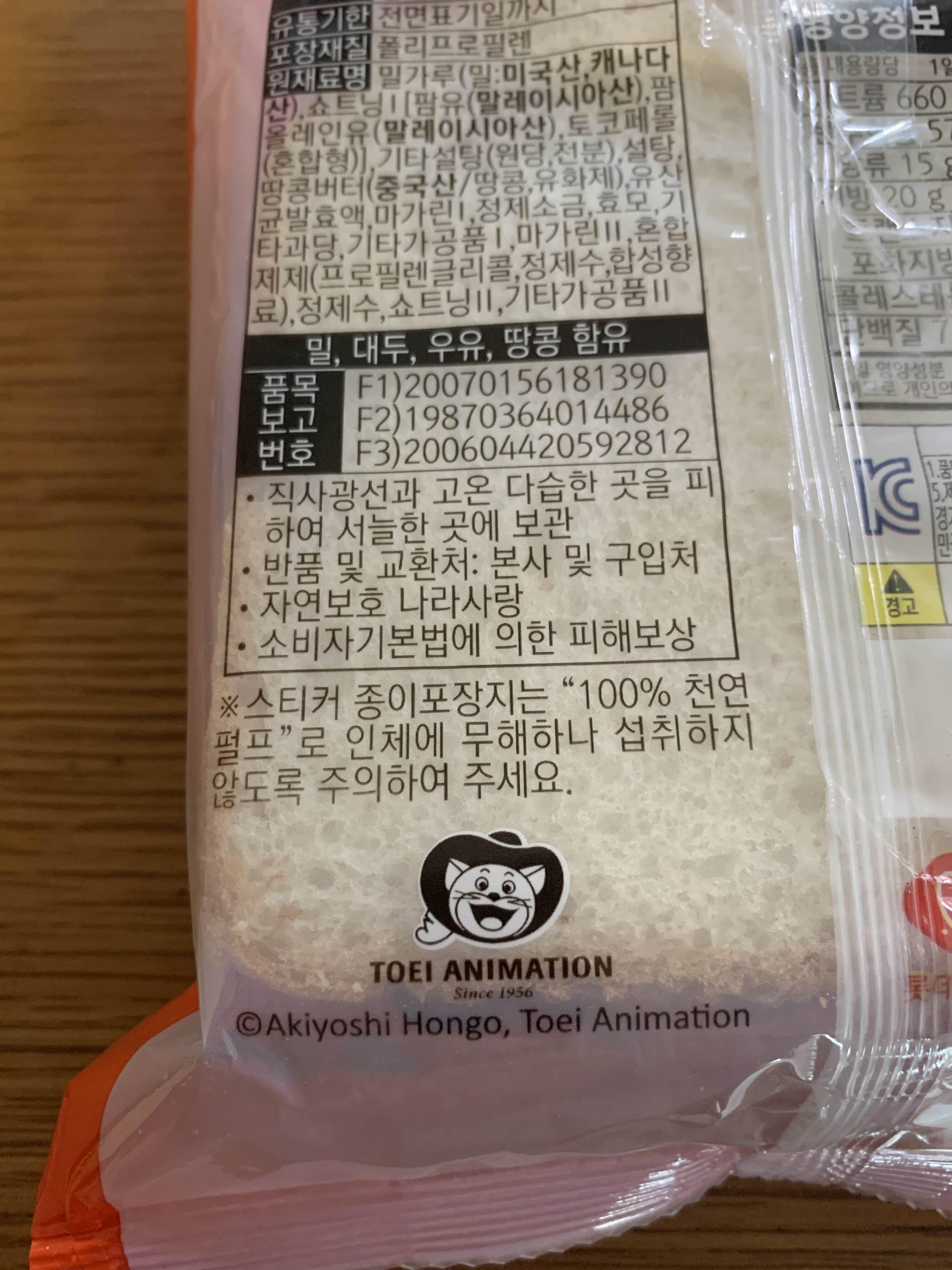 내가 먹기 싫어서 아이들에게 주었더니...... 아이들도 안 먹더군요.ㅠㅠ 그래서 아무도 안 먹음;;; 디지몬 빵 중에서 최악의 빵으로.... 다른 2개의 빵은 먹을 만은 한데.... 이 빵은 먹기 힘든 빵이었다.
