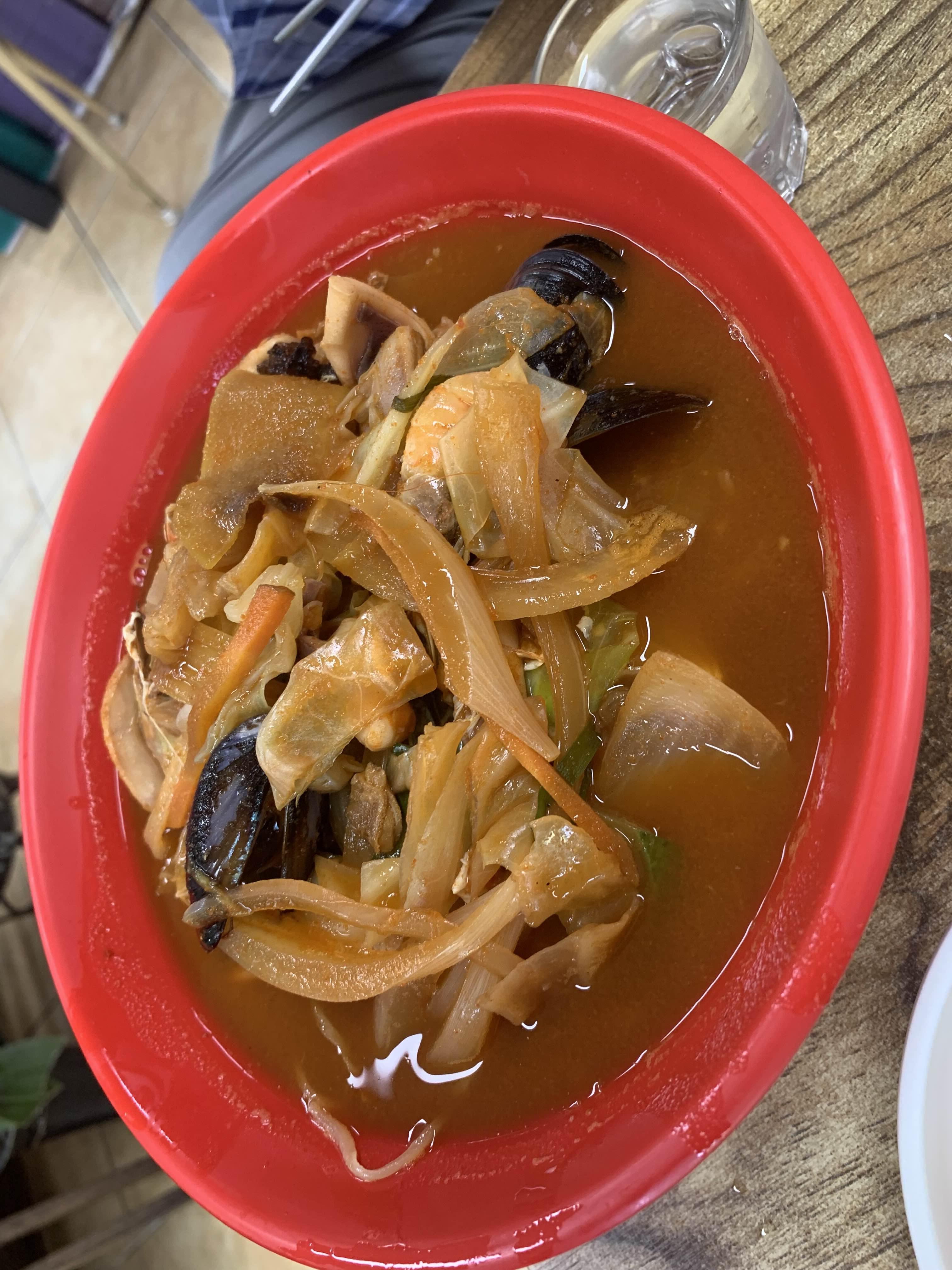 짬뽕의 면발은 상당히 얇은 면발로 나오더군요. 얼큰한 짬뽕 국물과 잘 어울리는 면발로~~~ 짬뽕에 들어있는 다양한 해산물과 소주 한잔 마시기 딱 좋은 식당이더군요. 내가 방문하고 잠시 후.... 단골 느낌의 손님이 들어왔는데... 메뉴는 주문 안 하고 음식이 나왔는데... 오징어 볶음?! 왠지 중식당이 아니라, 동네 마실과 같은 식당이라는 느낌이 들더군요.ㅎㅎ
