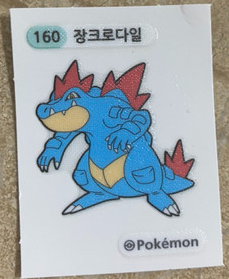 다음으로 확인하는 포켓몬빵은 메타몽!!! 2,000원 빵!!! 포켓몬빵 중 좀 비싼 빵입니다. 이렇게 비싼 빵에는 좋은 띠부씰이 들어있어냐 하는데;;;; 메타몽에는 띠부씰이 앞쪽이 아닌 뒤쪽!!! 그래서, 더 쉽게 띠부씰 확인이 가능합니다. 아래 사진처럼 살짝만 보이면... 무슨 띠부씰인지 몰랐으나, 이제는 알 것 같습니다. ㅎㅎ 자주 본 띠부씰이라 바로 "160번 장크로다일"이더군요.ㅎㅎ